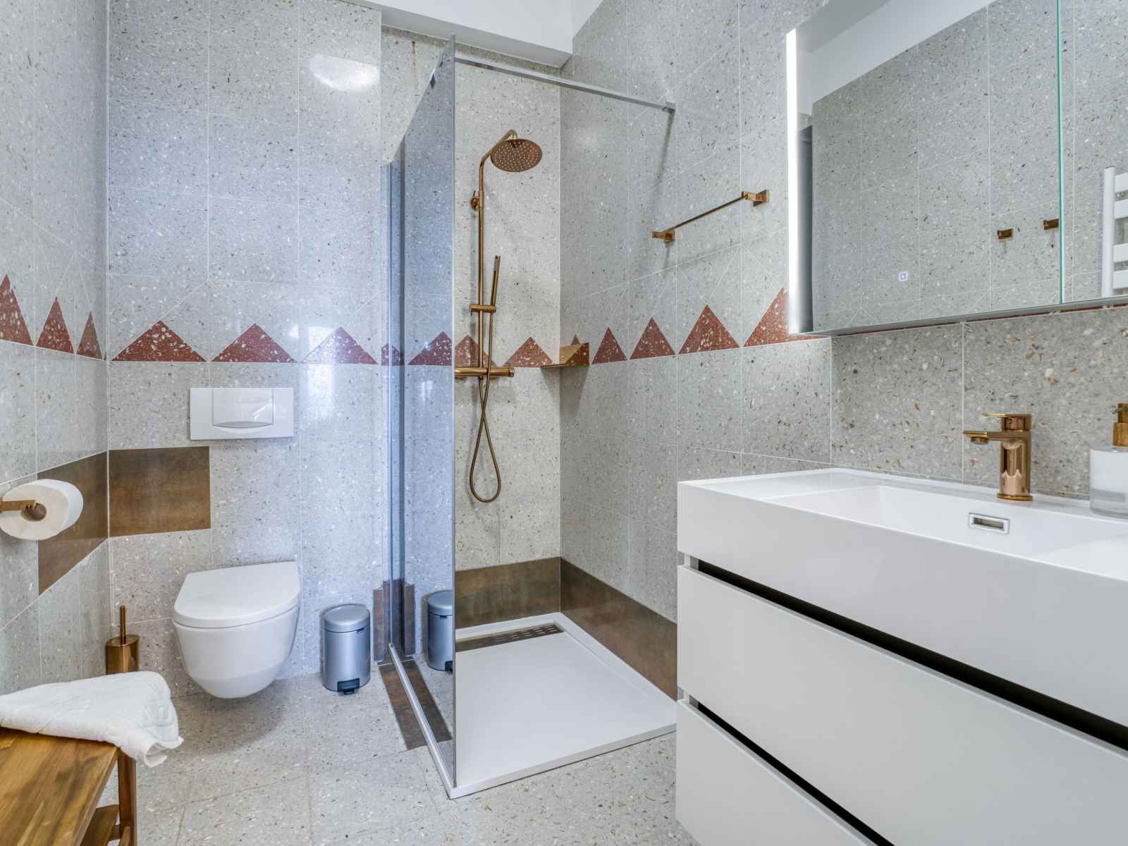 "design jamar", apt 3 pièces 54 m2, rez-de-chaussée surélevé. rénové en 2025, aménagement de bon goût et de style: séjour/salle à manger avec air-conditionné. sortie sur la terrasse. 1 chambre avec 1 lit double (2 x 90 cm, longueur 200 cm), douche/wc et tv (câblée) (écran plat), air-conditionné. sortie sur la terrasse. 1 chambre