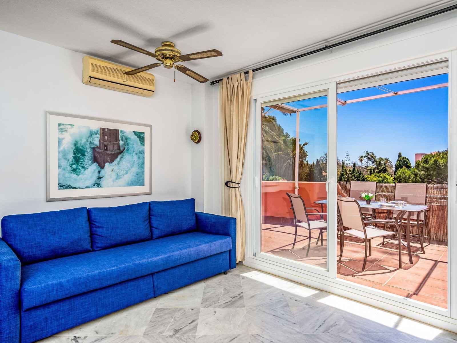 Appartement idéalement situé 10 min de puerto banus, 22 min du parc aquatique Aquamijas et 8 min de lidl Mercadona vous avez tout ce qu’il faut à coter de la résidence et appartement parfait canapé réversible Clim vaisselle tout !