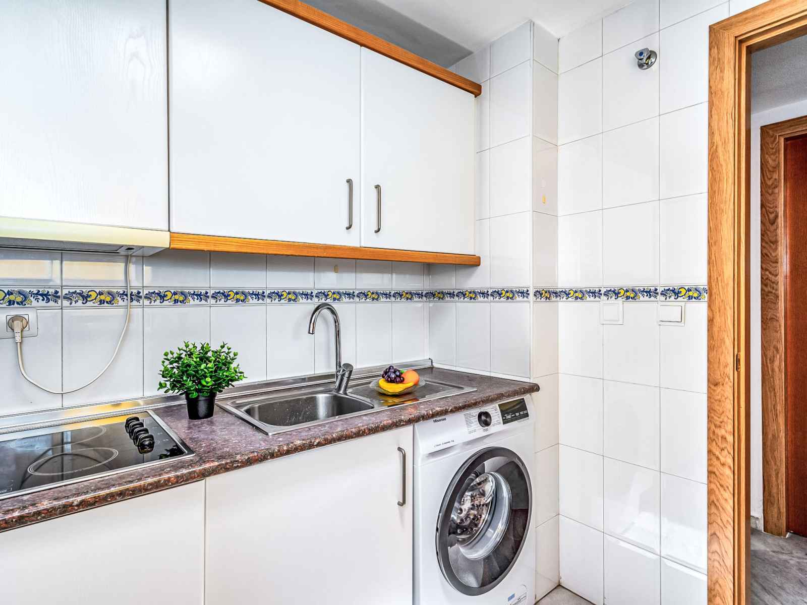 chauffage à air chaud. 1 chambre avec 1 grand-lit (150 cm, longueur 200 cm), air-conditionné et chauffage à air chaud. Petite cuisine (4 plaques de cuisson, 4 plaques vitrocéramiques, grille-pain, bouilloire électrique, micro-ondes, congélateur, cafetière électrique). Bain/bidet/WC, double vasque. Air-conditionné, chauffage à air chaud, chauffe eau (80 litres). Terrasse 20 m2 partiellement couverte, situation sud-est. Meubles de terrasse. Vue sur la mer. A disposition: lave-linge, fer à repasser, chaise haute pour enfant, lit bébé, sèche-cheveux. Garage No 44. VUT/MA/79051 // Reg. Nr.: ESFCTU0000290280000806810000000000000000VUT/MA/790517