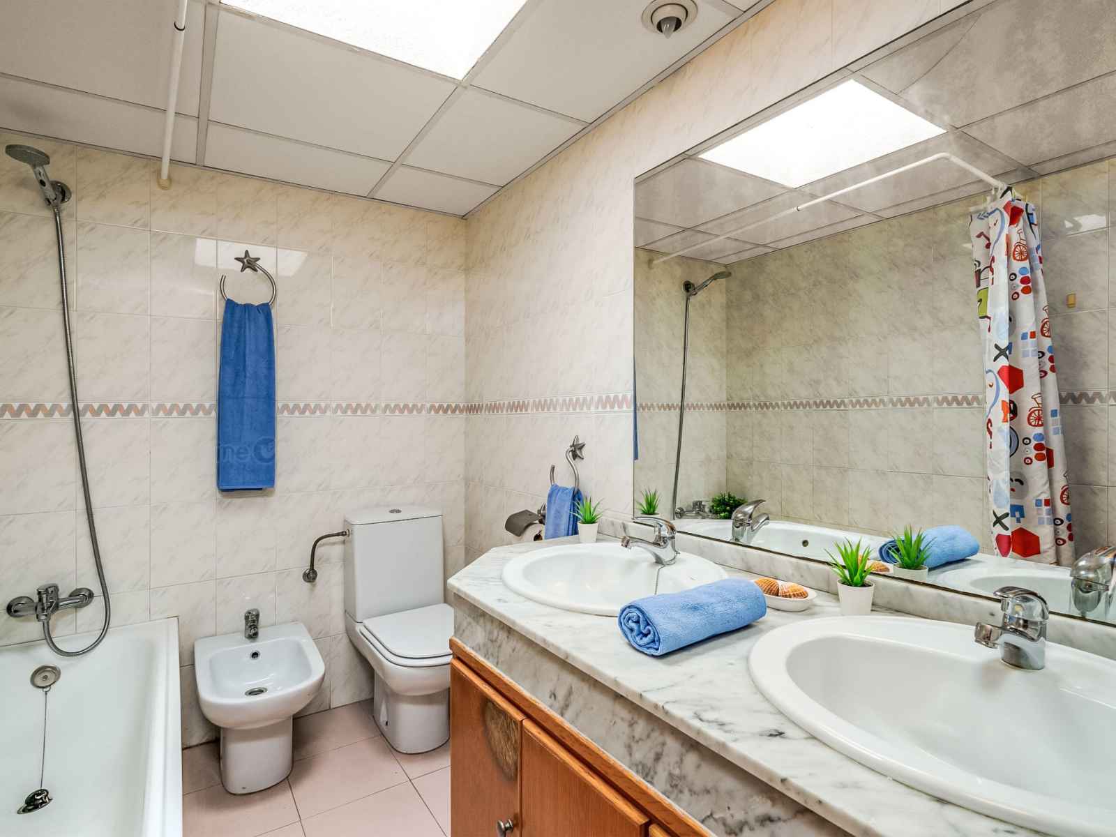 Très bonne location qui est très bien équipée (sauf tv un peu ancienne). 2 piscines disponibles. Un peu éloignée du centre ville mais présence de bus. À louer en famille ou amis.