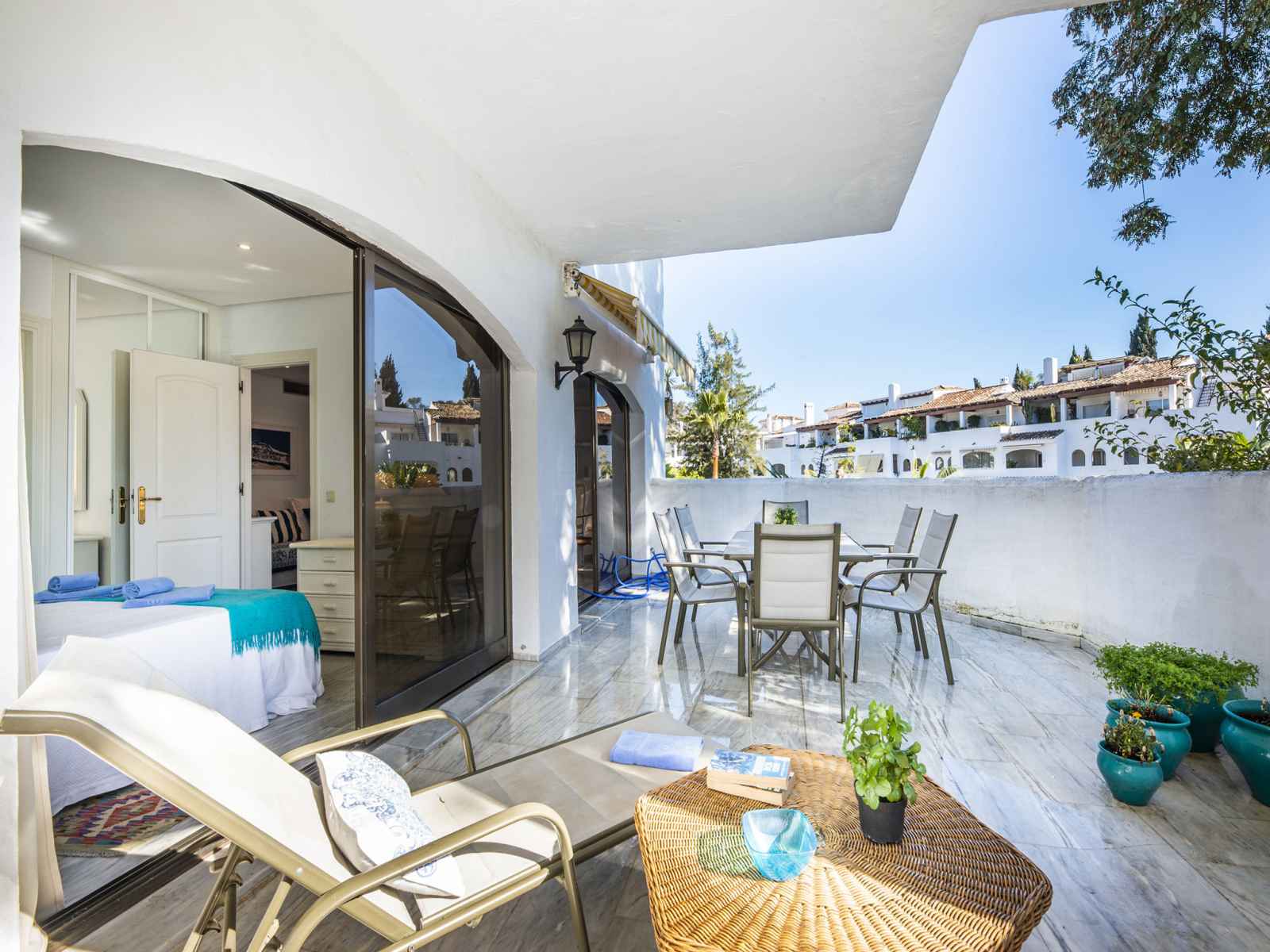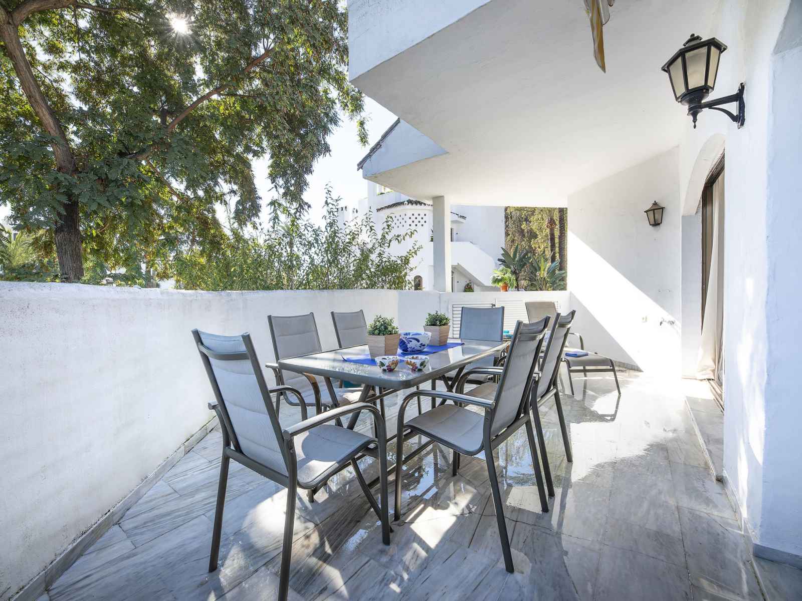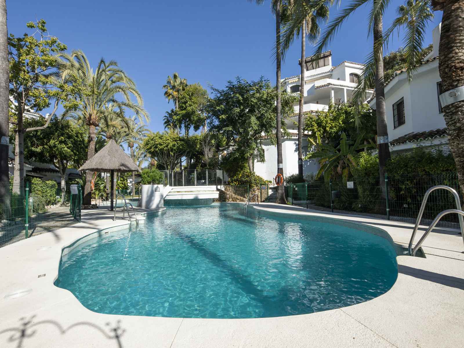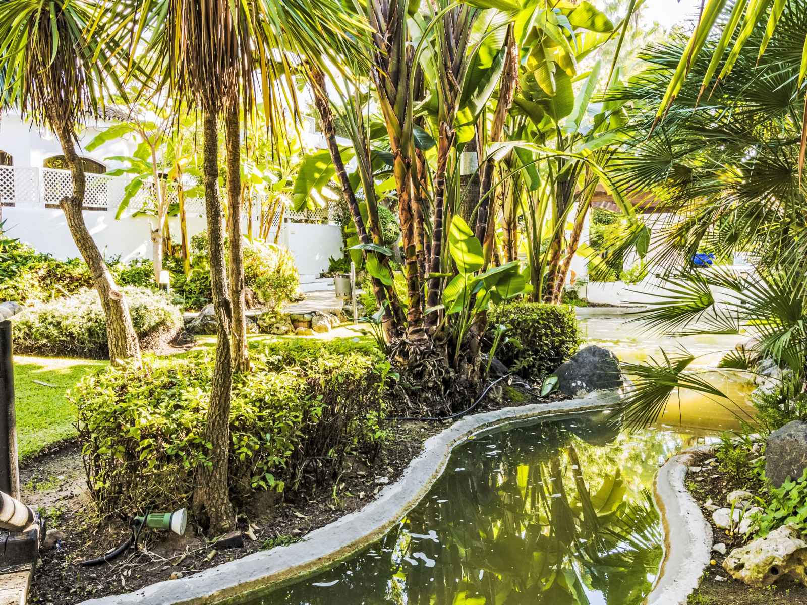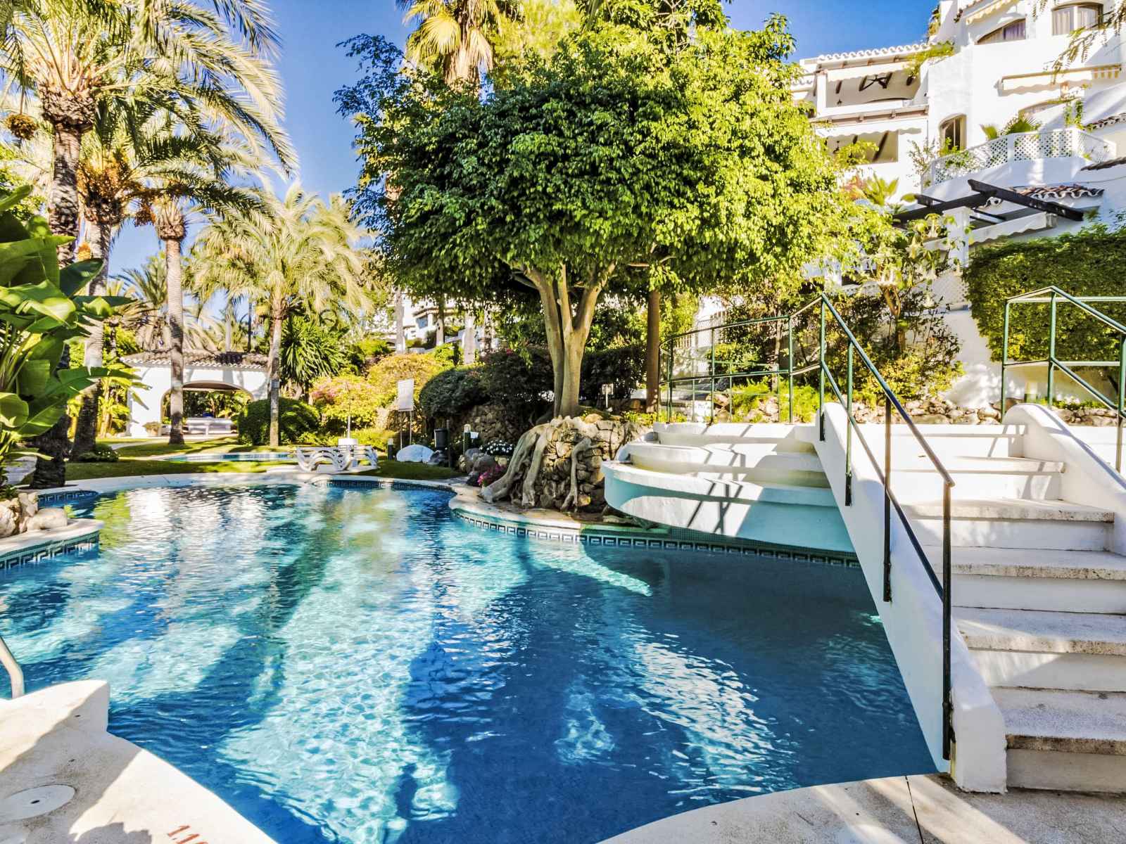 Belle petite résidence accueillante "golden beach". À 13 km du centre de marbella, à 23 km du centre de puerto banus, dans l'arrondissement elviria, à 150 m de la mer, à 150 m de la plage, orientée sud-est. en commun: grand jardin sur plusieurs niveaux avec pelouse, 2 piscines en forme d’haricot (profondeur 90 - 220 cm, disponibilité