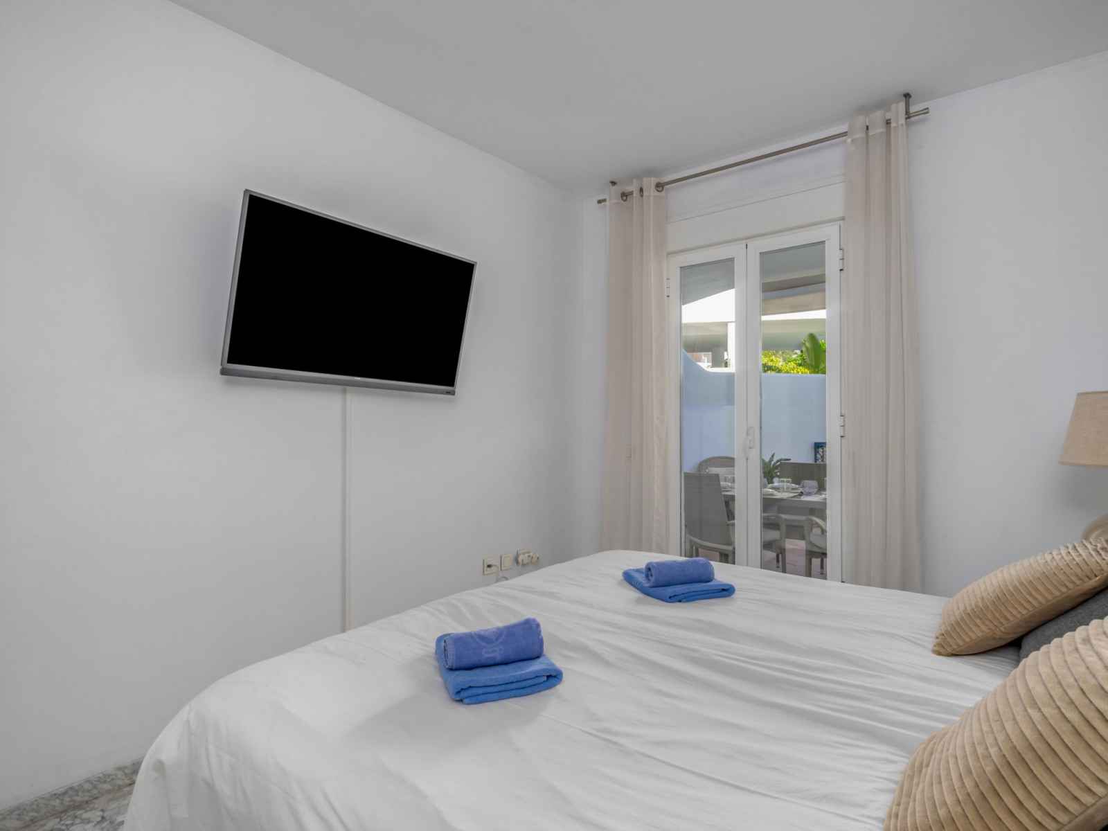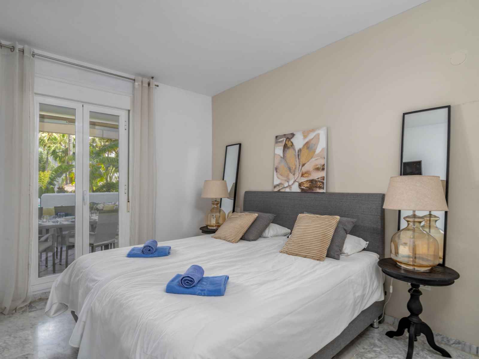 "marbella real", apt 3 pièces 73 m2, au rez-de-chaussée, situation est. logement idéal pour 4 adultes. aménagement confortable et de bon goût: séjour/salle à manger avec tv (satellite) et télévision numérique. sortie sur le jardinet, sur la piscine. 1 chambre avec 1 grand-lit. sortie sur le jardinet. 1 chambre avec 1 grand-lit avec