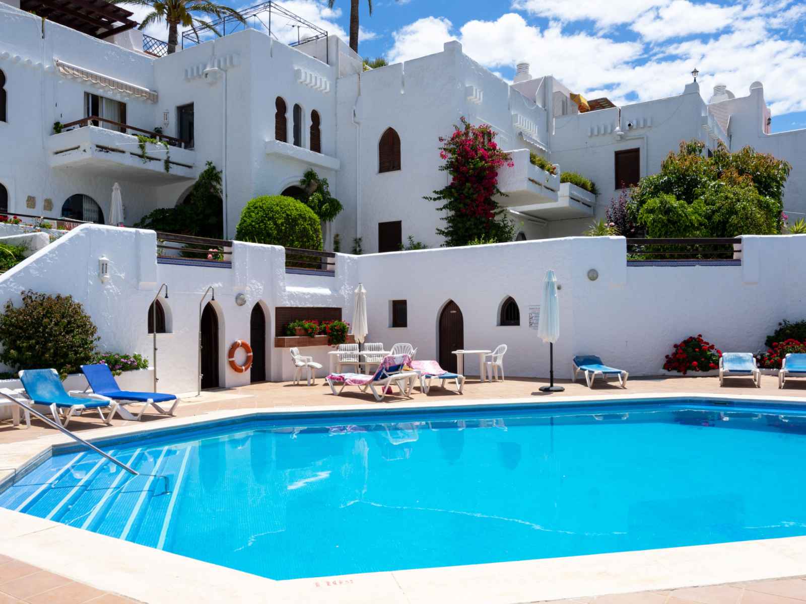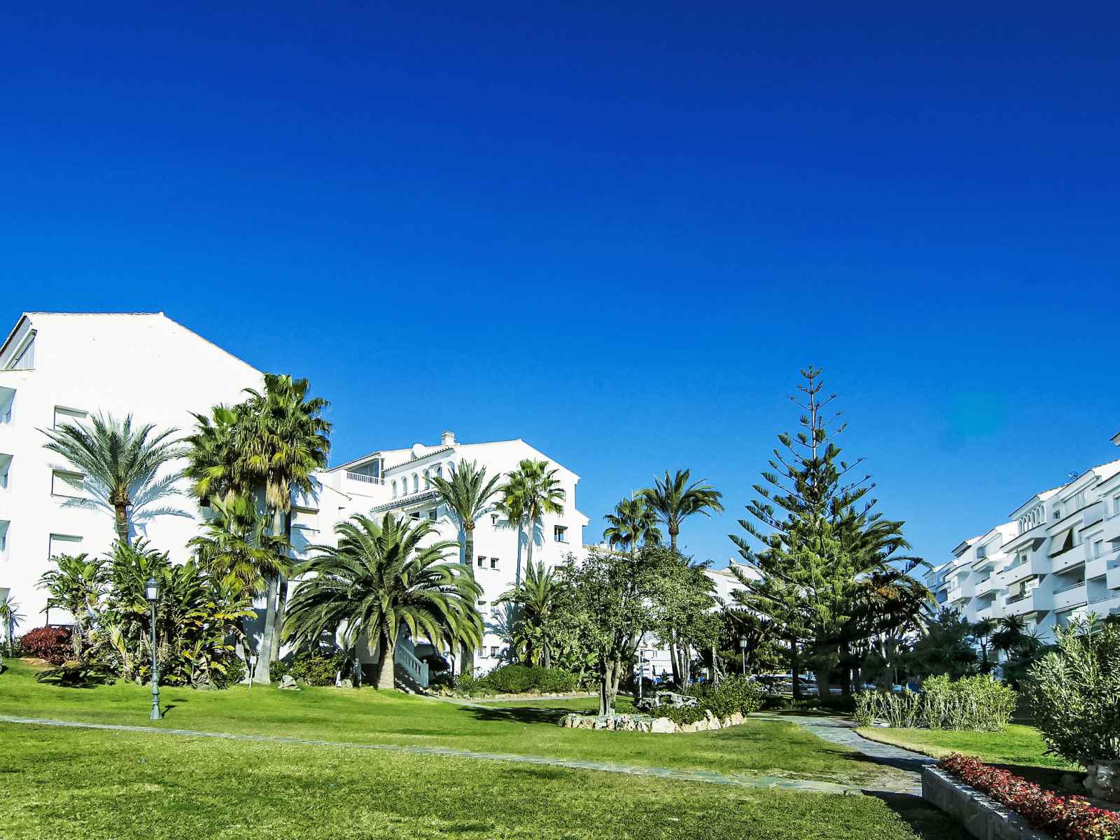Belle petite résidence accueillante "playa real". À 15 km du centre de marbella, à 25 km du centre de puerto banus, dans l'arrondissement elviria, à, de la mer, à 50 m de la plage, orientée sud. en commun: grand jardin sur plusieurs niveaux avec pelouse, piscine en forme d’haricot (disponibilité saisonnière: 01.jun. - 30.sep.). wc dans