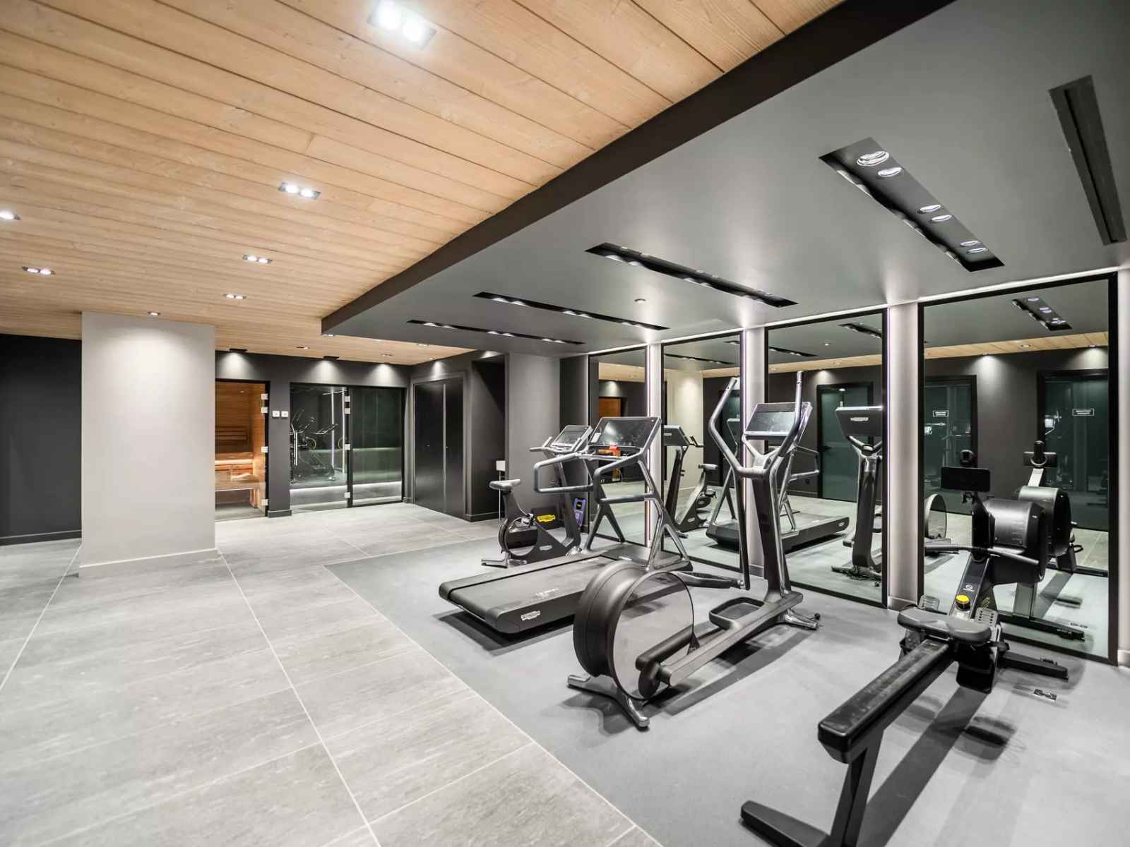 - Salle de sport commune avec vestiaires composé de : 1 vélo élliptique, 1 rameur, 1 vélo d'intérieur et 1 tapis de course