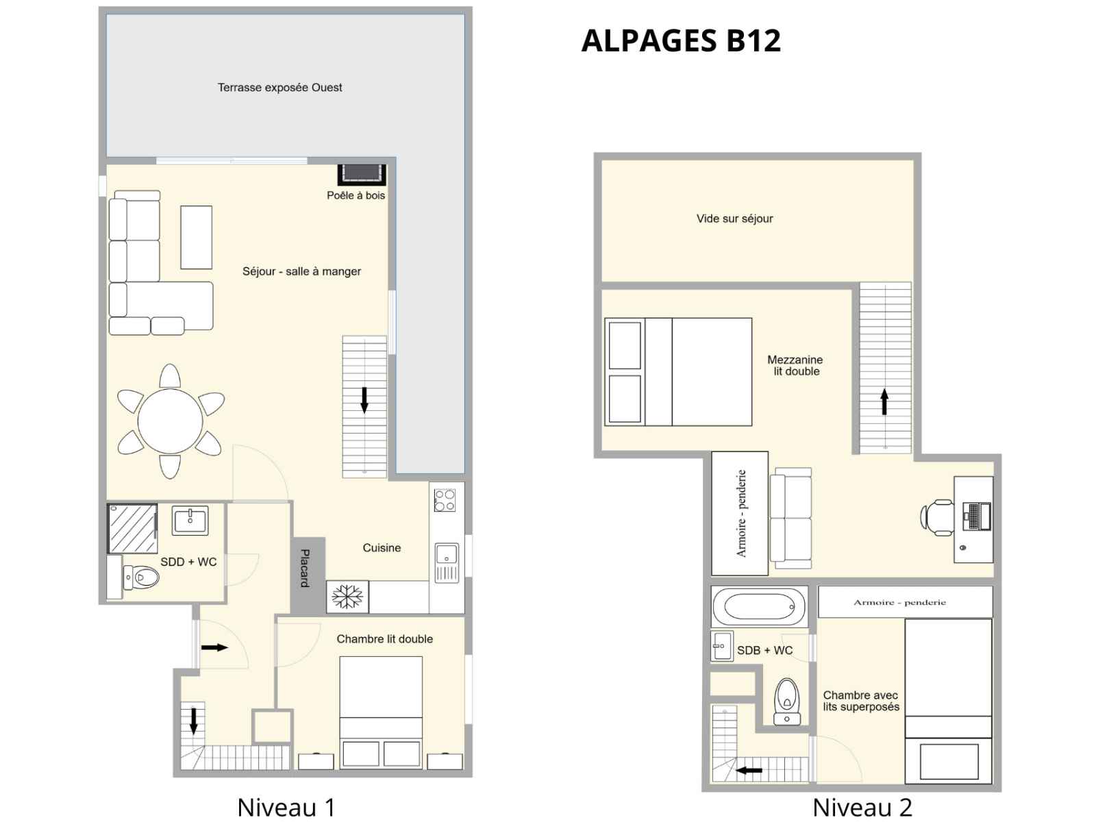 3 pièces duplex avec mezzanine, 6 personnes, 61m², terrasse ouest