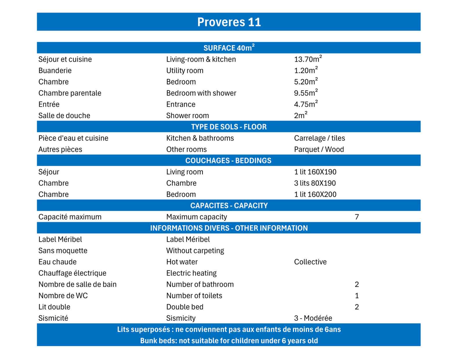 - Caution 800 € (CB ou chèque détruit au plus tard 14 jours après votre départ)