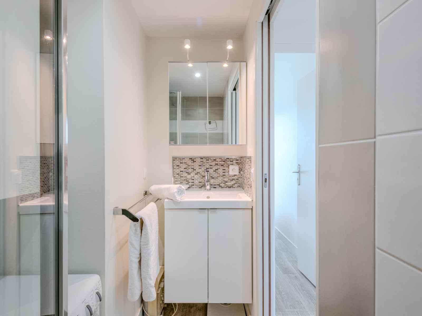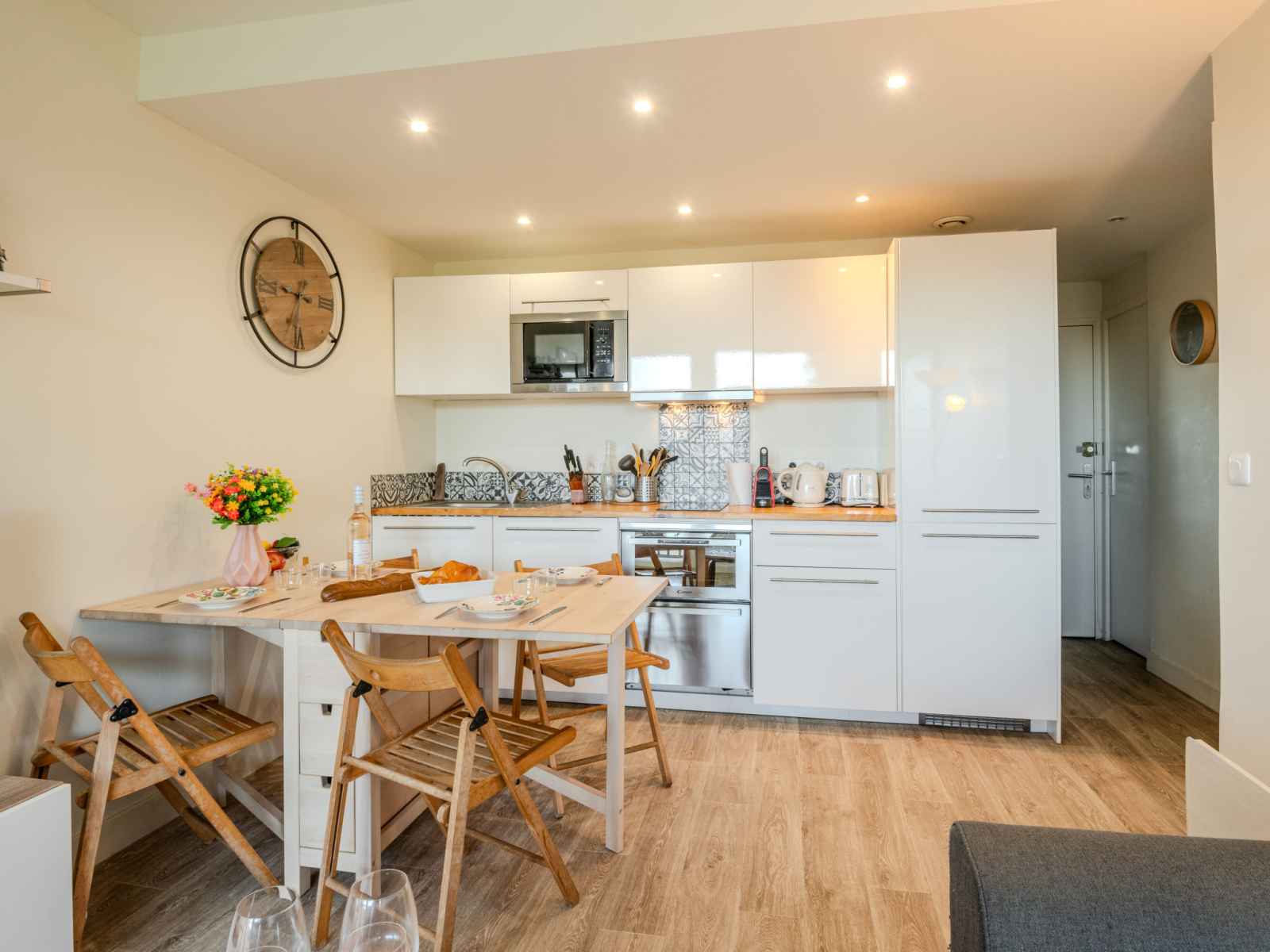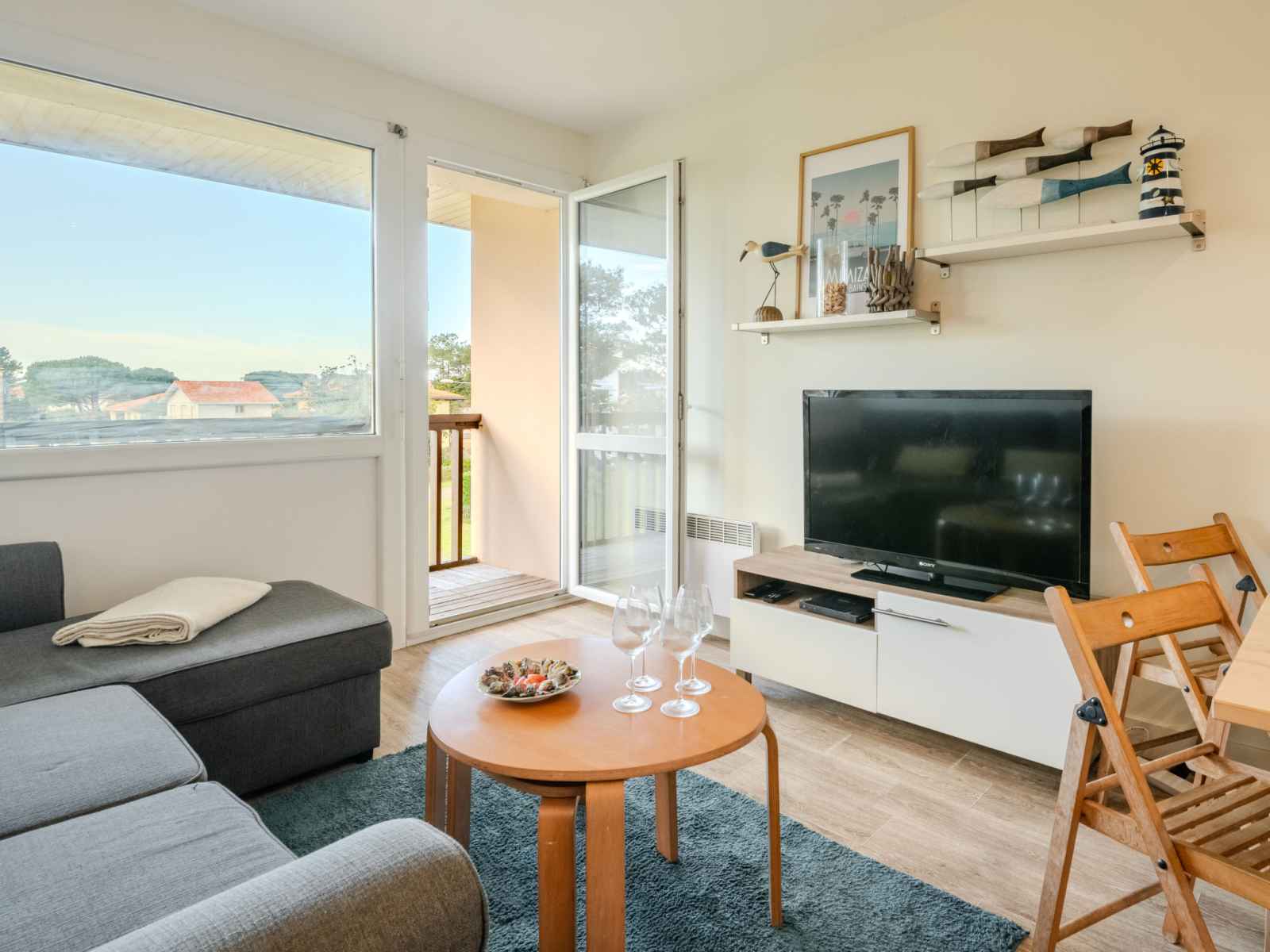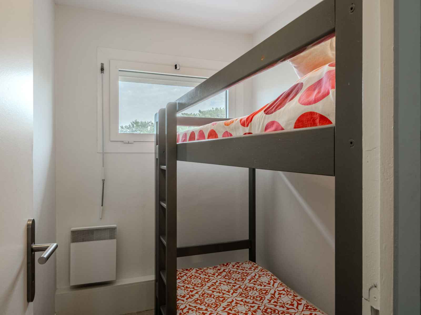 Apt 3 pièces 35 m2 au 2ème étage. séjour/salle à manger avec tv (écran plat). 1 chambre avec 1 grand-lit (1 x 160 cm, longueur 190 cm). cabine avec 1 x 2 lits superposés (90 cm, longueur 200 cm). cuisine ouverte (four, lave-vaisselle, 1 plaques à induction, 2 feux, grille-pain, bouilloire électrique, micro-ondes, congélateur, cafetière