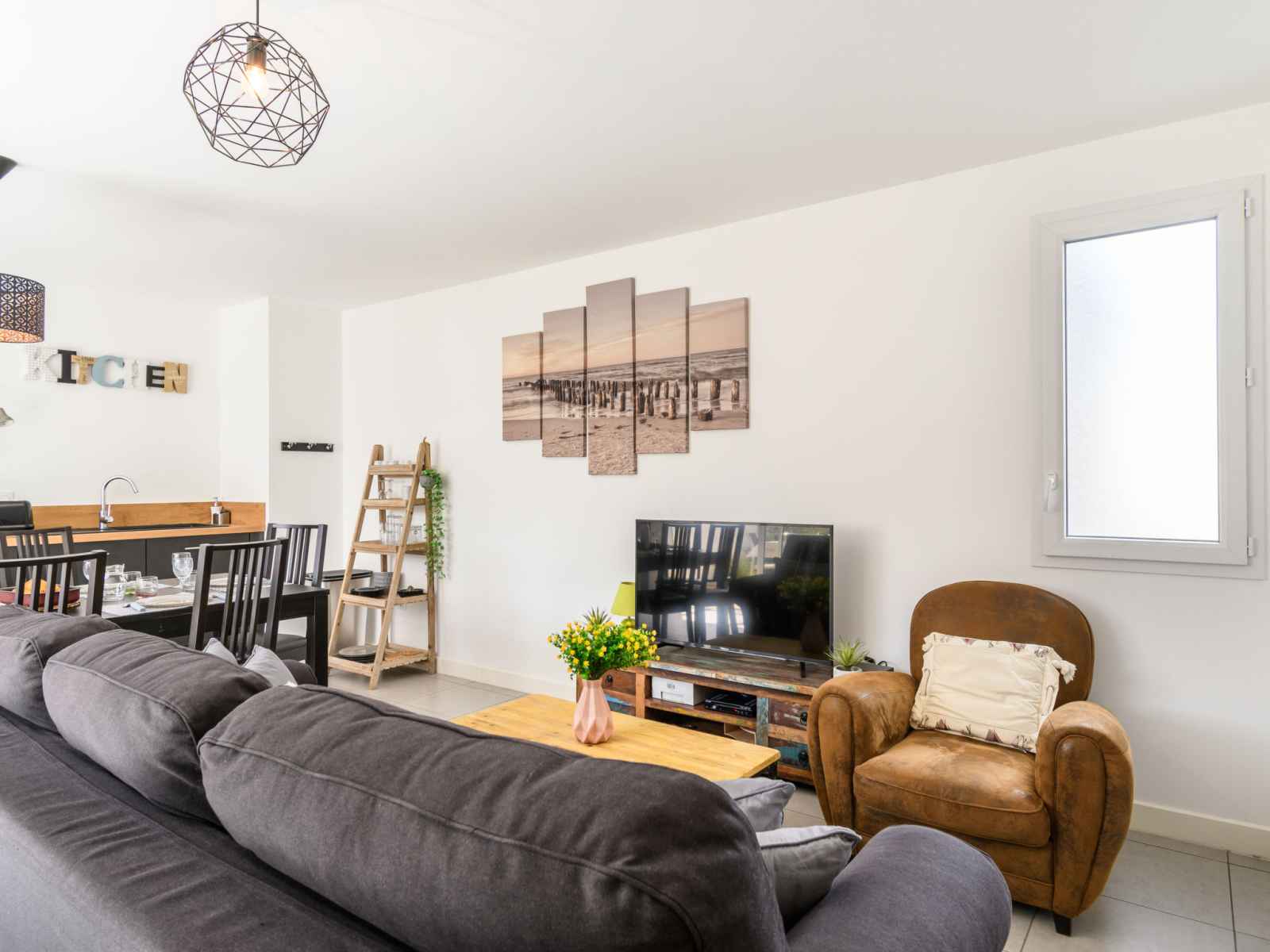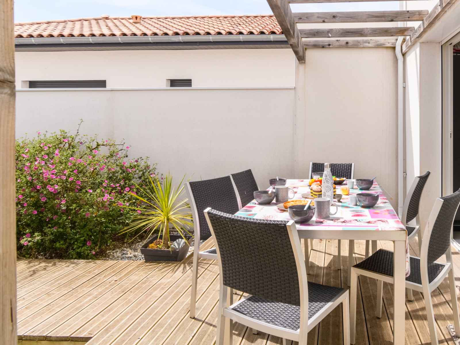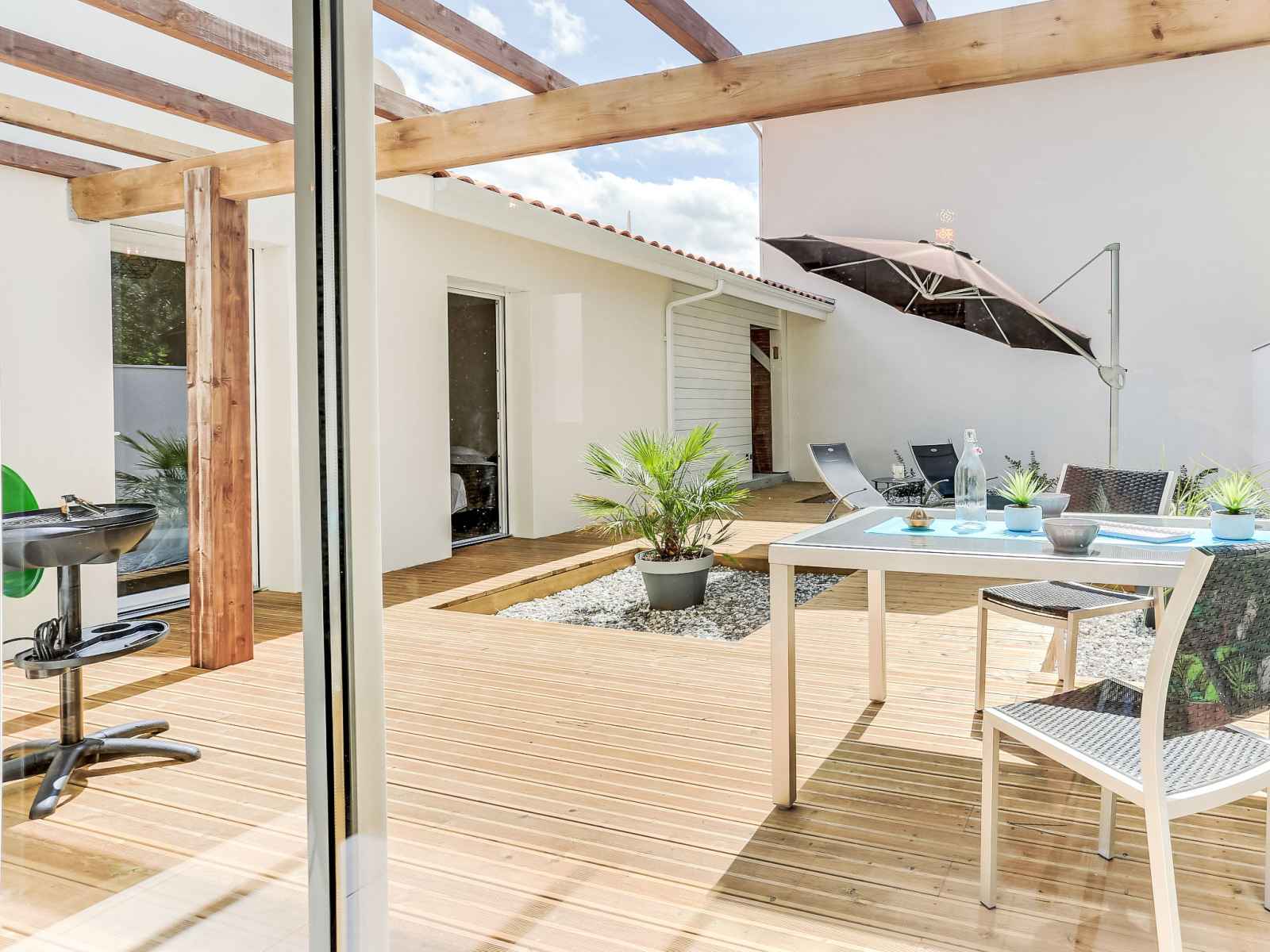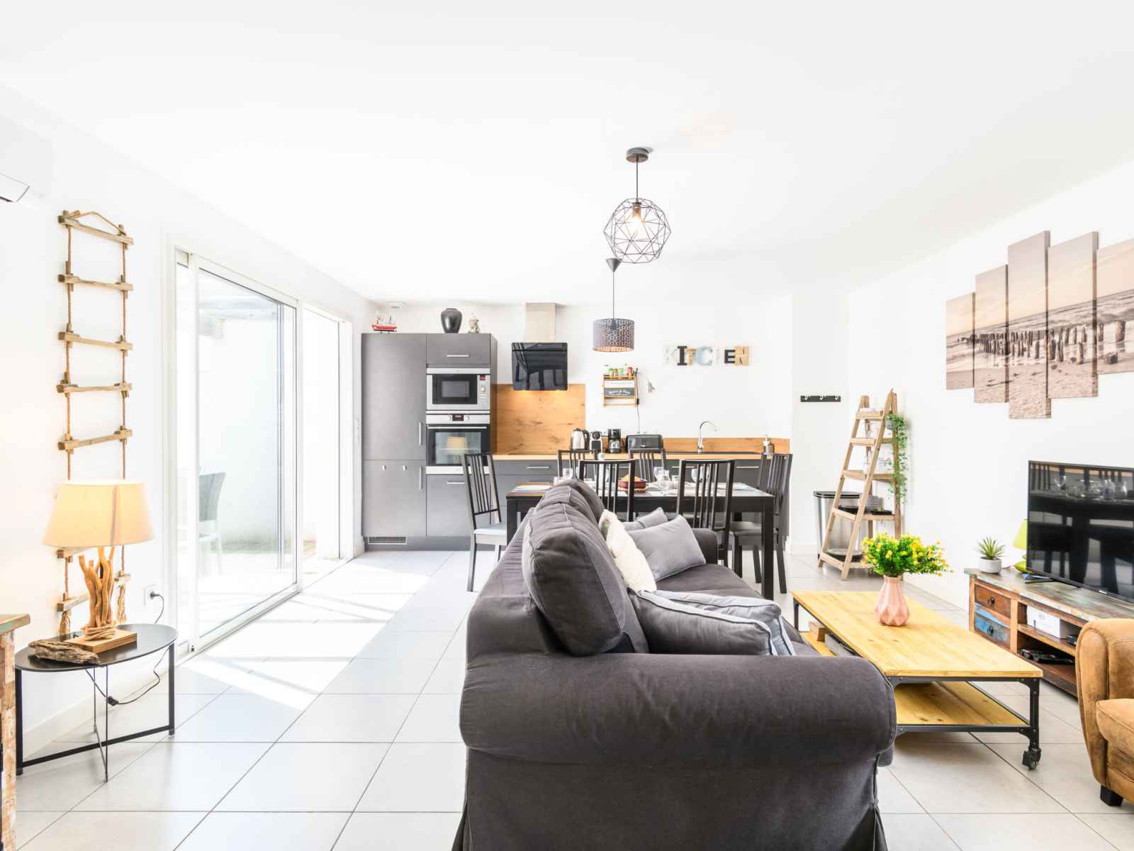 Apt 3 pièces 73 m2, au rez-de-chaussée. aménagement fonctionnel et moderne: séjour/salle à manger avec baie vitrée avec 1 divan-lit (160 cm, longueur 200 cm), tv (écran plat), air-conditionné et chauffage à air chaud. sortie sur la terrasse. 1 chambre avec 1 lit double (140 cm, longueur 190 cm). sortie sur la terrasse. 1 chambre avec 2