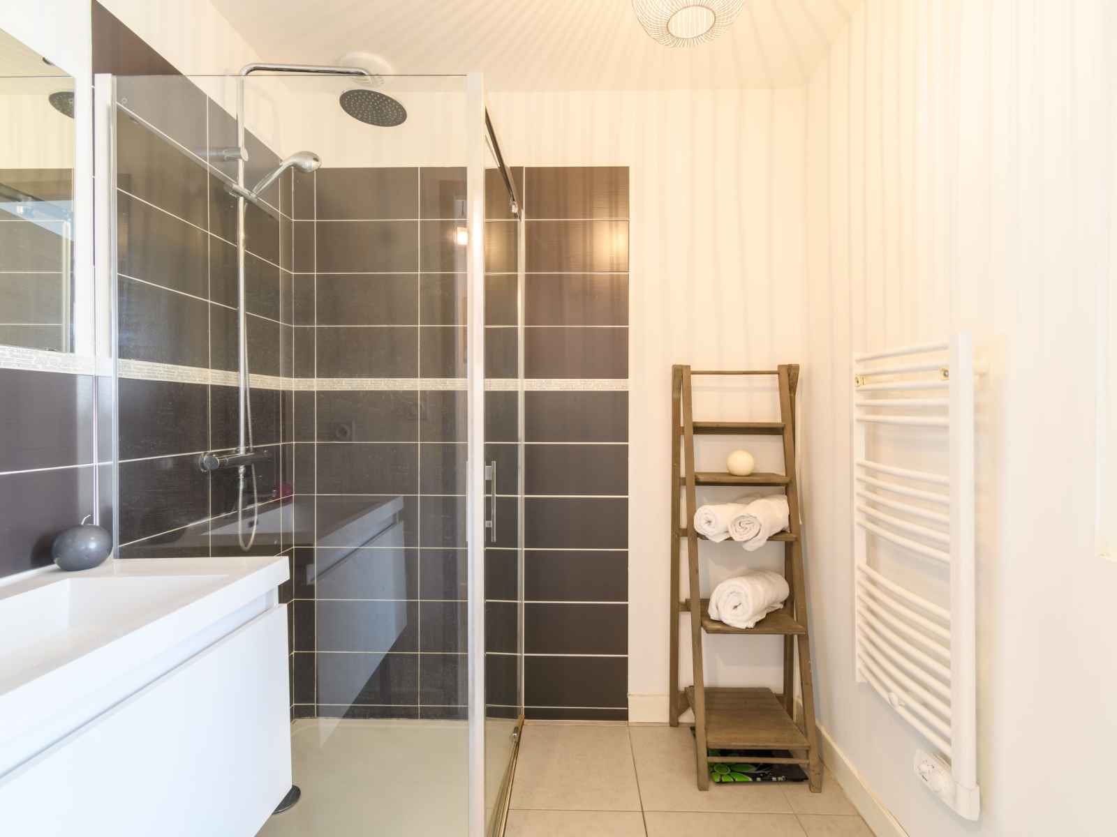 lits (90 cm, longueur 190 cm). Sortie sur la terrasse. Coin cuisine (four, lave-vaisselle, 4 plaques à induction, micro-ondes, cafetière électrique, Capsules pour machine à café (Nespresso + filtre) (NON INCLUSES)). Douche, WC séparé. Grande terrasse 36 m2. Meubles de terrasse, barbecue. A disposition: lave-linge, sèche-cheveux. Internet (Connexion WIFI, gratuit). Place de parking. Veuillez noter: maximum 1 animal/ chien autorisé. Détecteur de fumée.