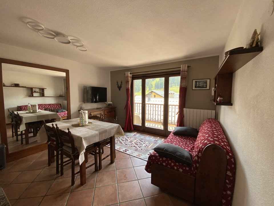 - un séjour avec un canapé et une télévision donnant sur un balcon exposition sud,