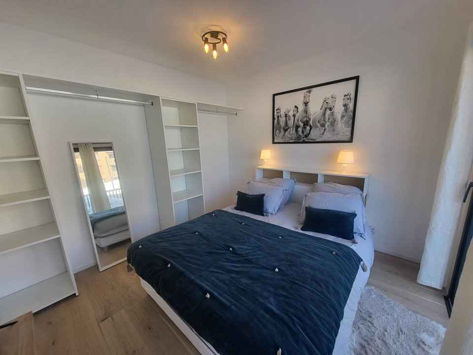 - une chambre avec un lit en 160 cm , un dressing, une télévision donnant sur la terrasse exposition est,
