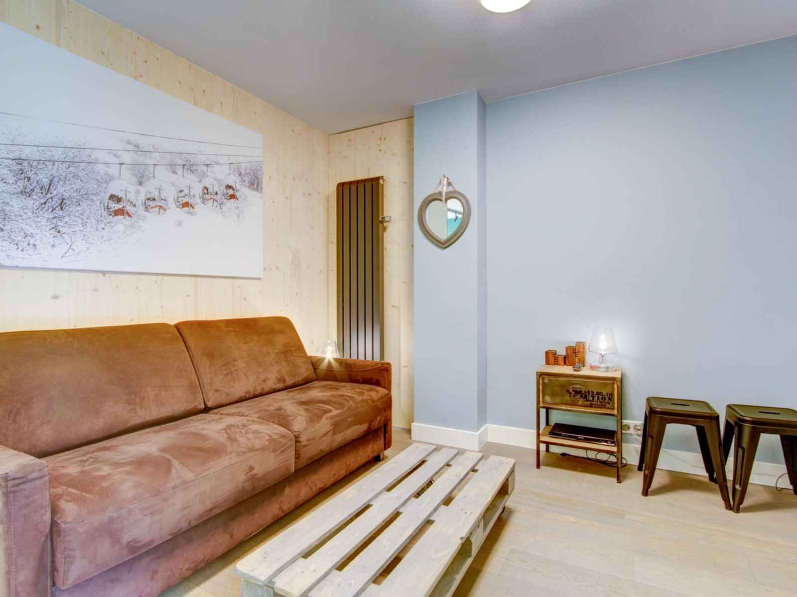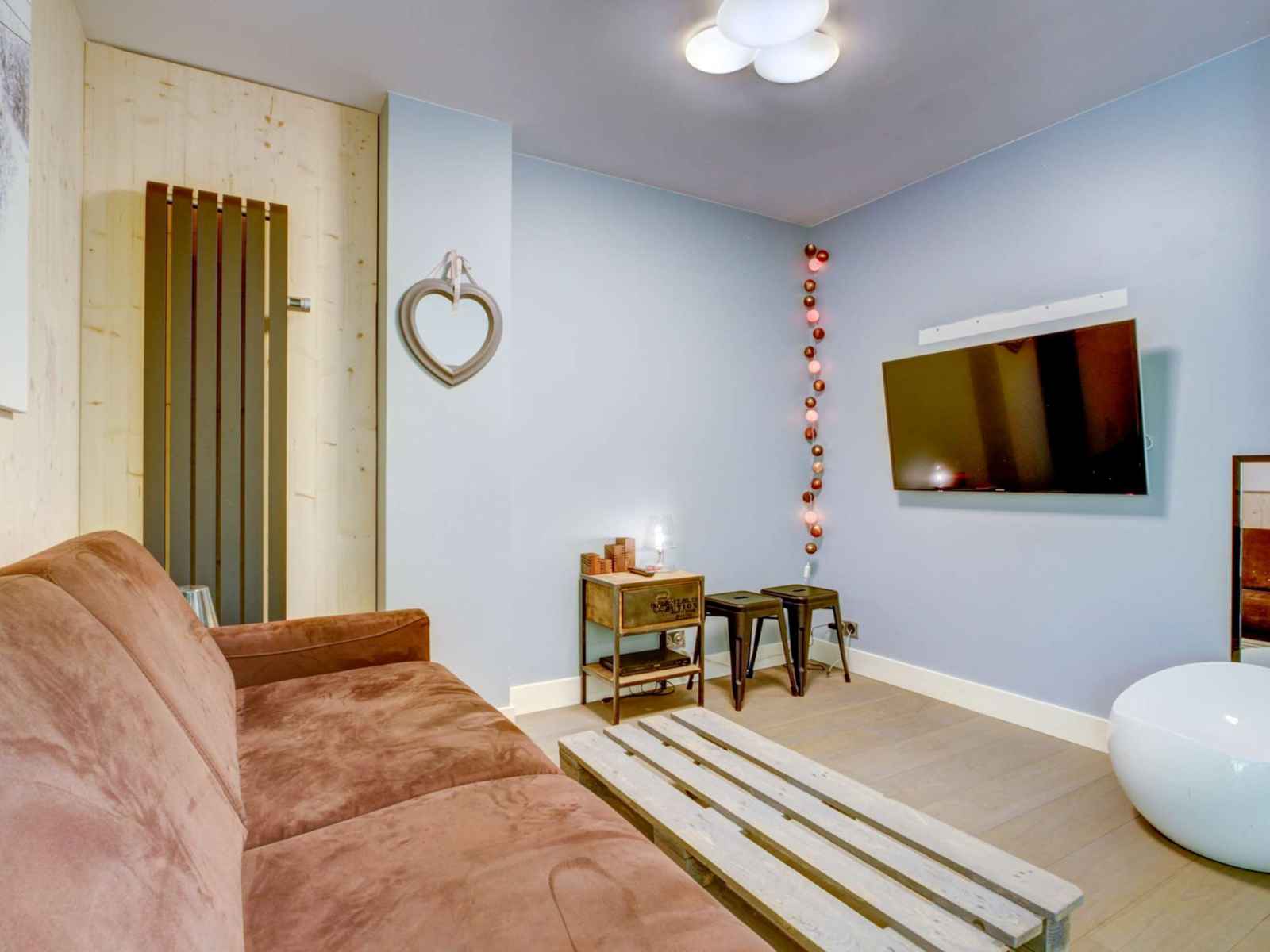 - une belle pièce à vivre avec coin salon et canapé-lit (140x190),