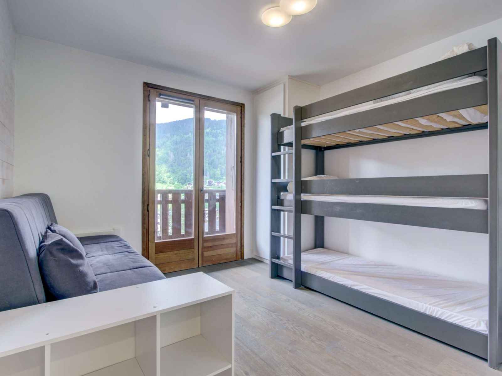 - chambre 2: deux lits superposés (80x190cm) et lit double gigogne (80x190cm), petite salle de douche en-suite