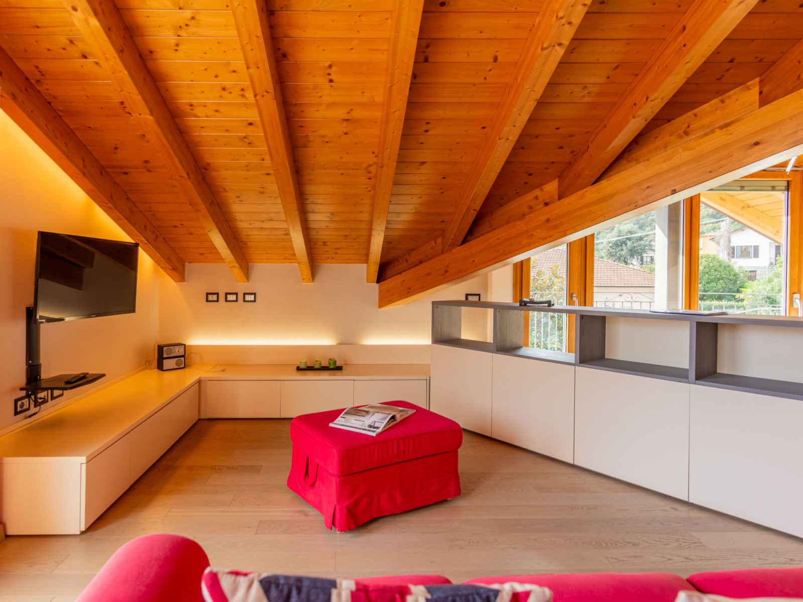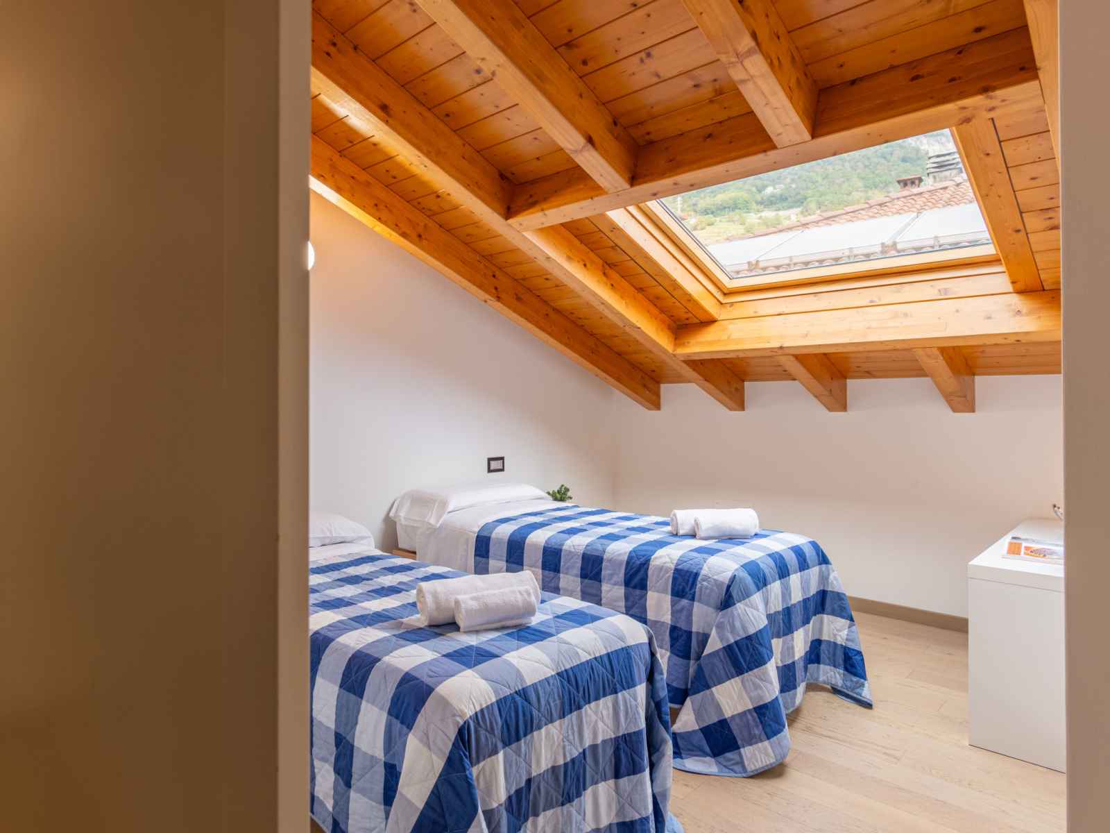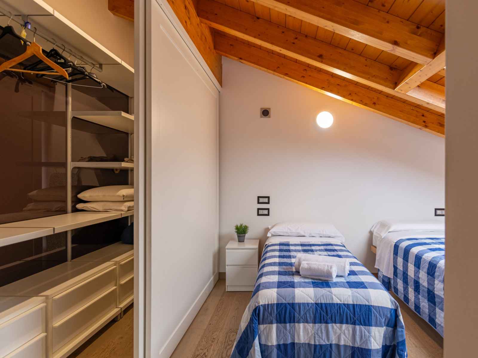 avec fenêtre sous le toit avec air-conditionné. 1 chambre avec fenêtre sous le toit, Dressing avec 2 lits et air-conditionné. Cuisine ouverte (four, lave-vaisselle, 4 plaques à induction, grille-pain, bouilloire électrique, micro-ondes, congélateur, cafetière électrique, Capsules pour machine à café (Nespresso)) avec table pour les repas. Sortie sur le balcon. 2 douches/bidet/WC. Chauffage au gaz, air-conditionné, chauffage par le sol. Possibilité de chauffage uniquement du 15.10. au 15.04. Sol en pierres naturelles. 2 grands balcons, petit balcon, jardin. Meubles de terrasse, mobilier de balcon, chaises longues (2). Très belle vue panoramique sur le lac et les montagnes. A disposition: lave-linge, fer à repasser, sèche-cheveux. Internet (Connexion WIFI, gratuit). Veuillez noter: logement non-fumeur. IT013160C28UUHA8PU
