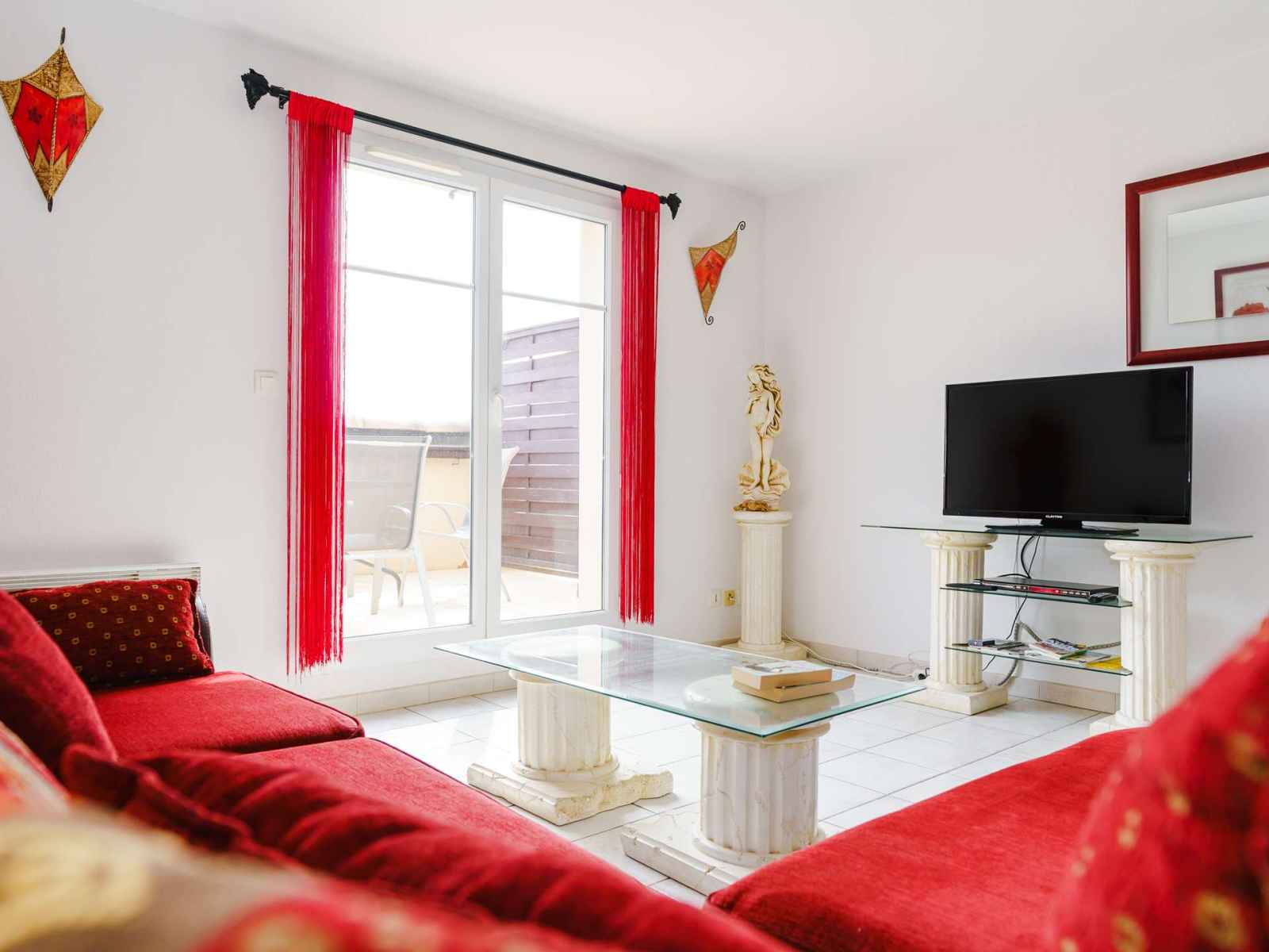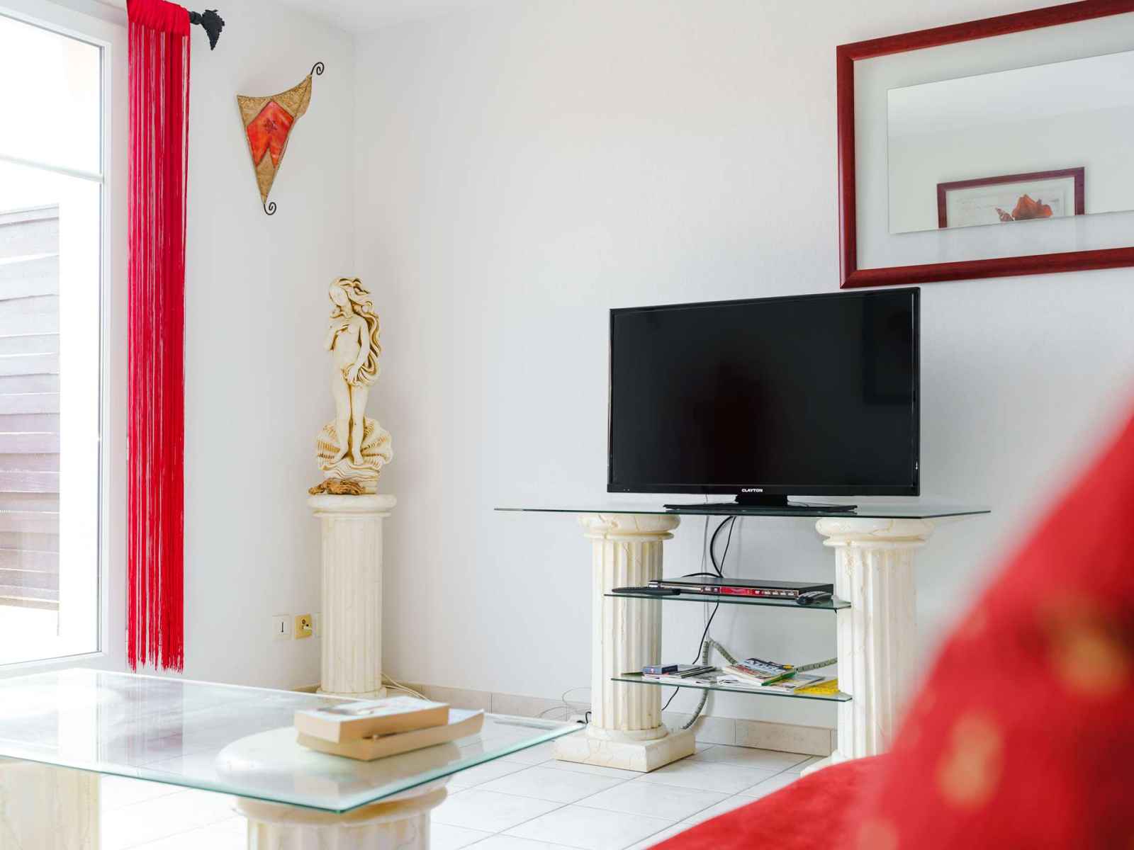 • Equipements : Air conditionné, piscine collective, WIFI, Cocotte minute, Douche, Four, Lavabo, Lave linge, Micro-ondes, Plaques vitrocéramiques, Réfrigérateur, Terrasse, TV, Vaisselle pour 4 personnes
