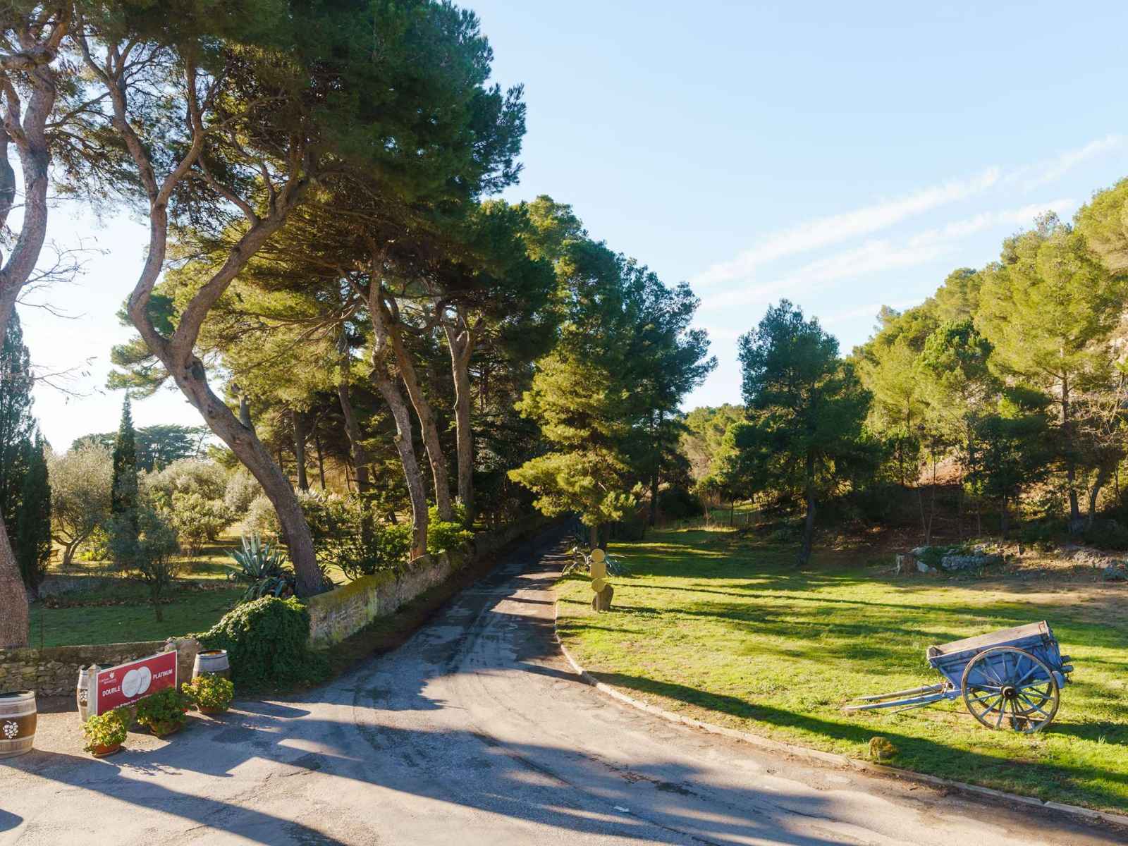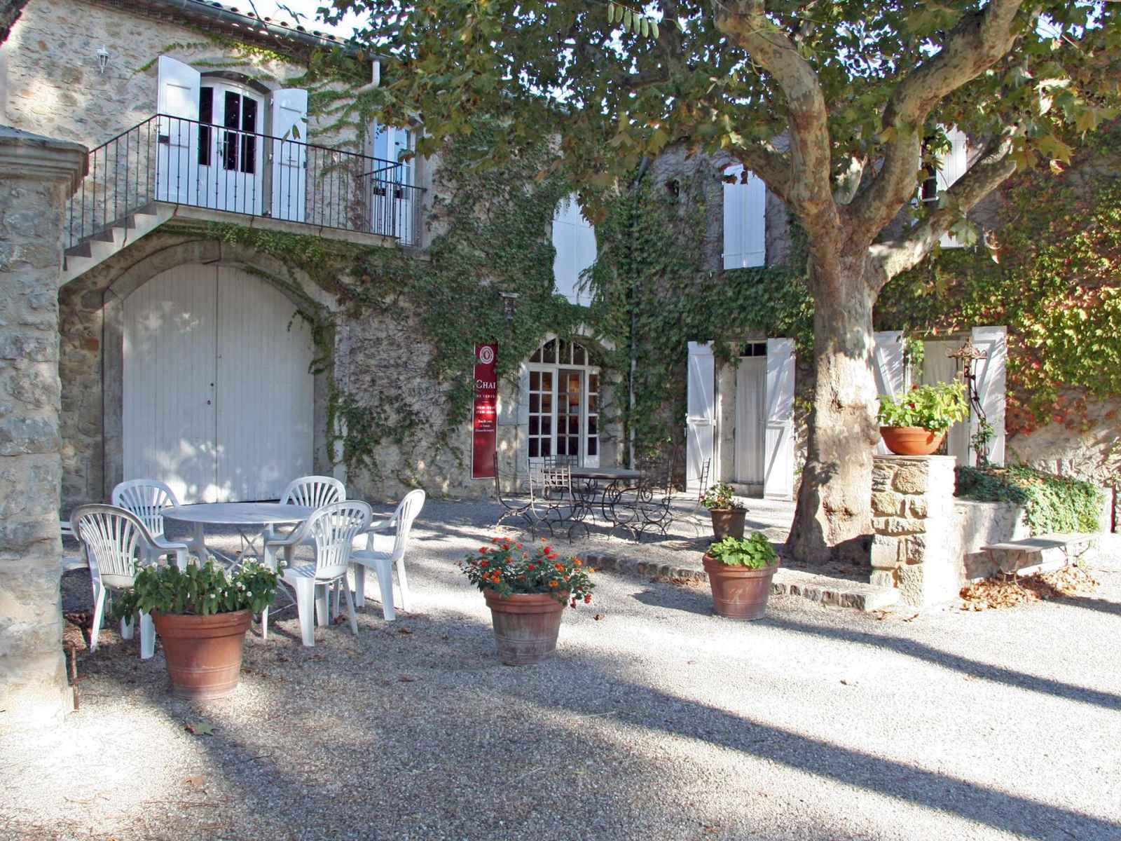 Un espace extérieur proche du chai de vente de vin permet de prendre les repas dehors.