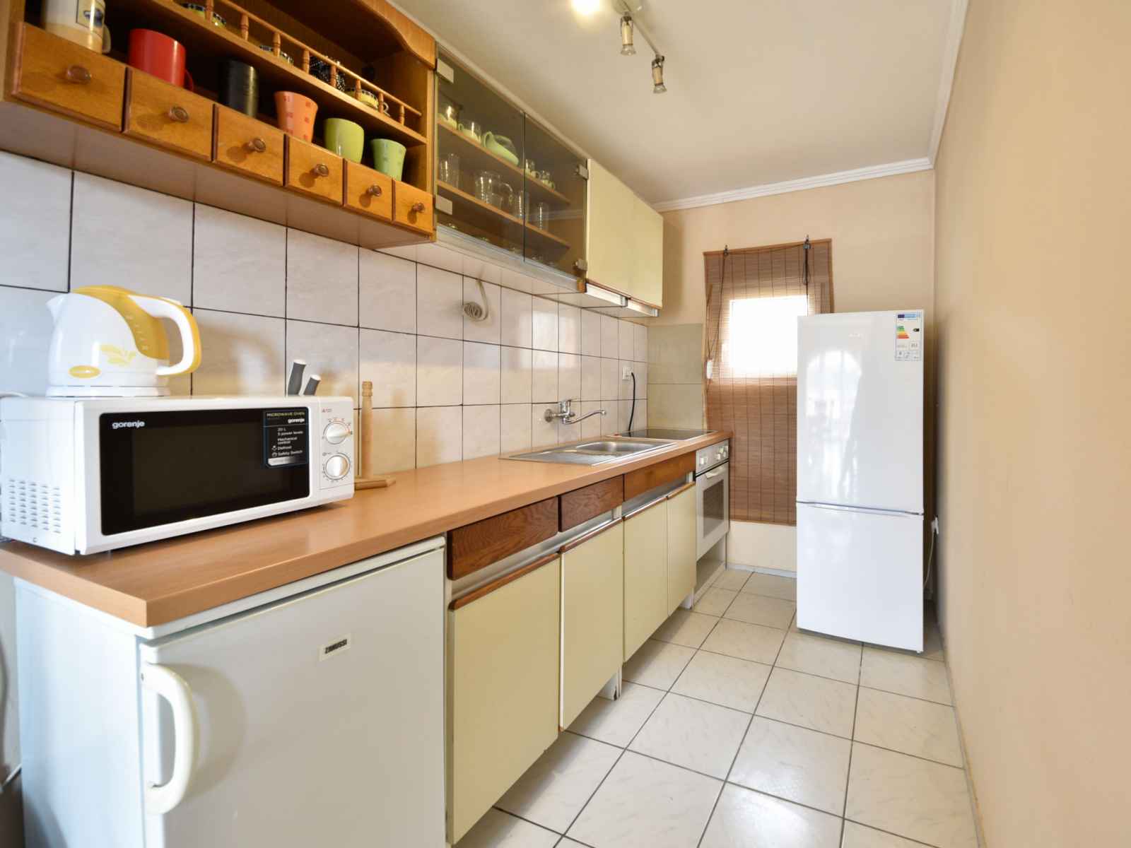 Apt 3 pièces 80 m2 au 1er étage, situation sud-ouest. séjour/salle à manger 24 m2 avec tv (satellite) (écran plat), air-conditionné. sortie sur la terrasse. 1 chambre avec 1 lit double (2 x 90 cm, longueur 200 cm). 1 chambre avec 2 lits (90 cm, longueur 200 cm). cuisine ouverte (four, 4 plaques vitrocéramiques, micro-ondes, congélateur,