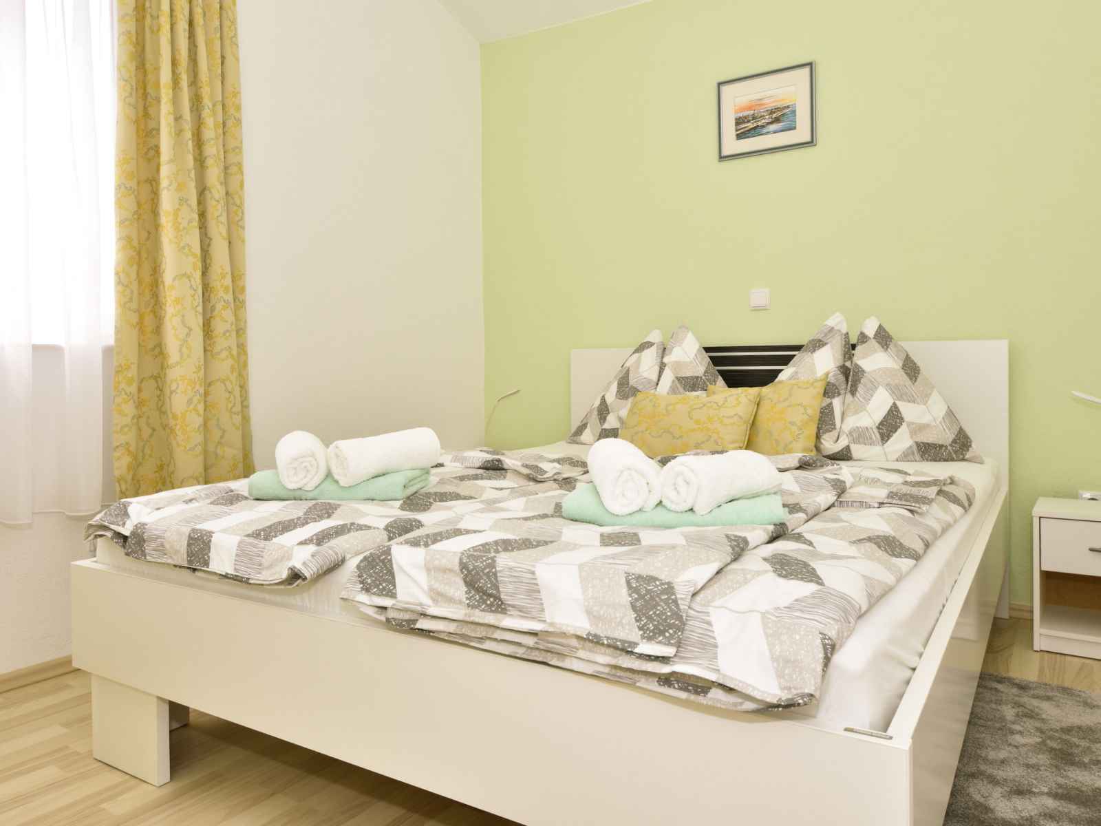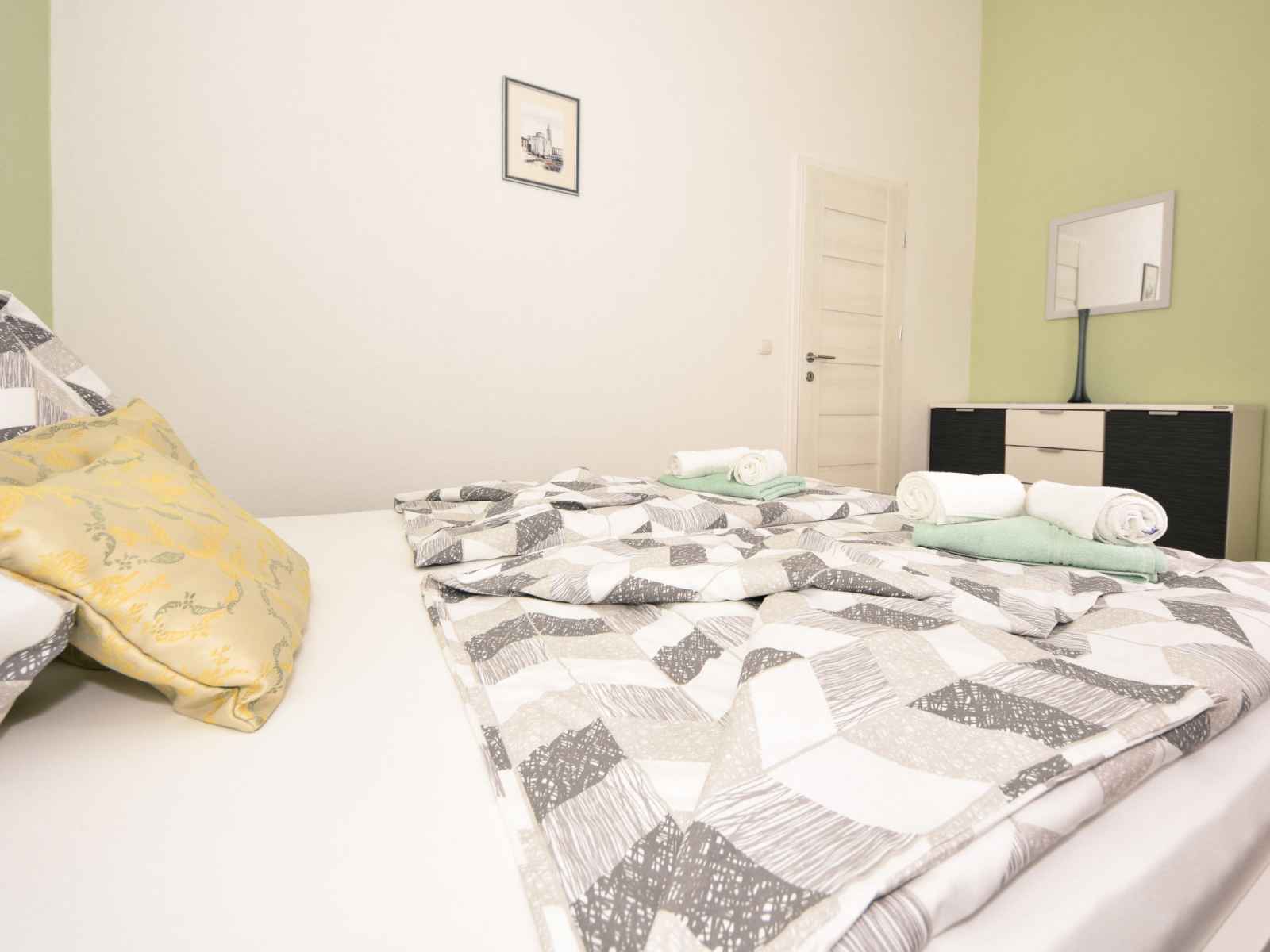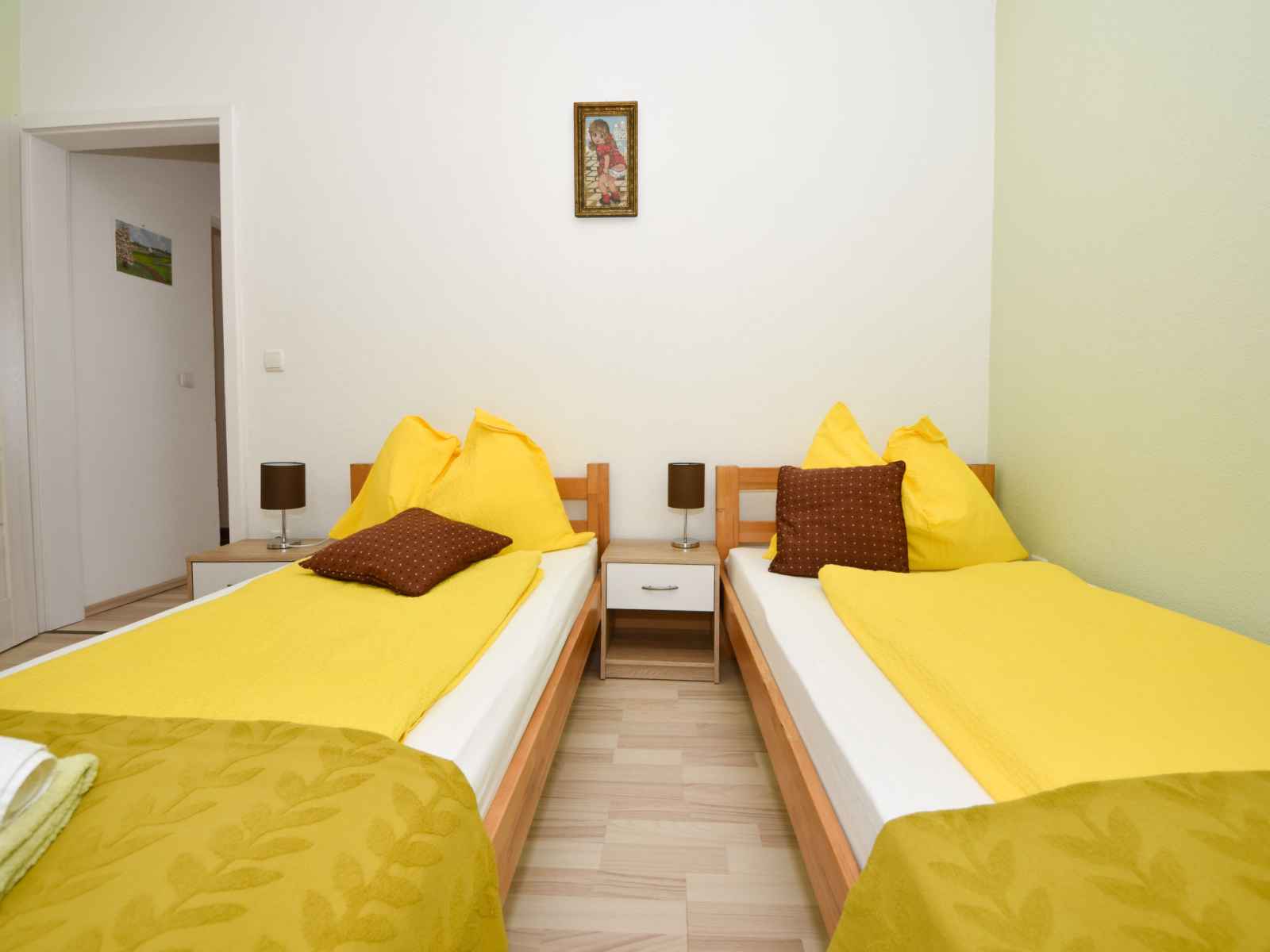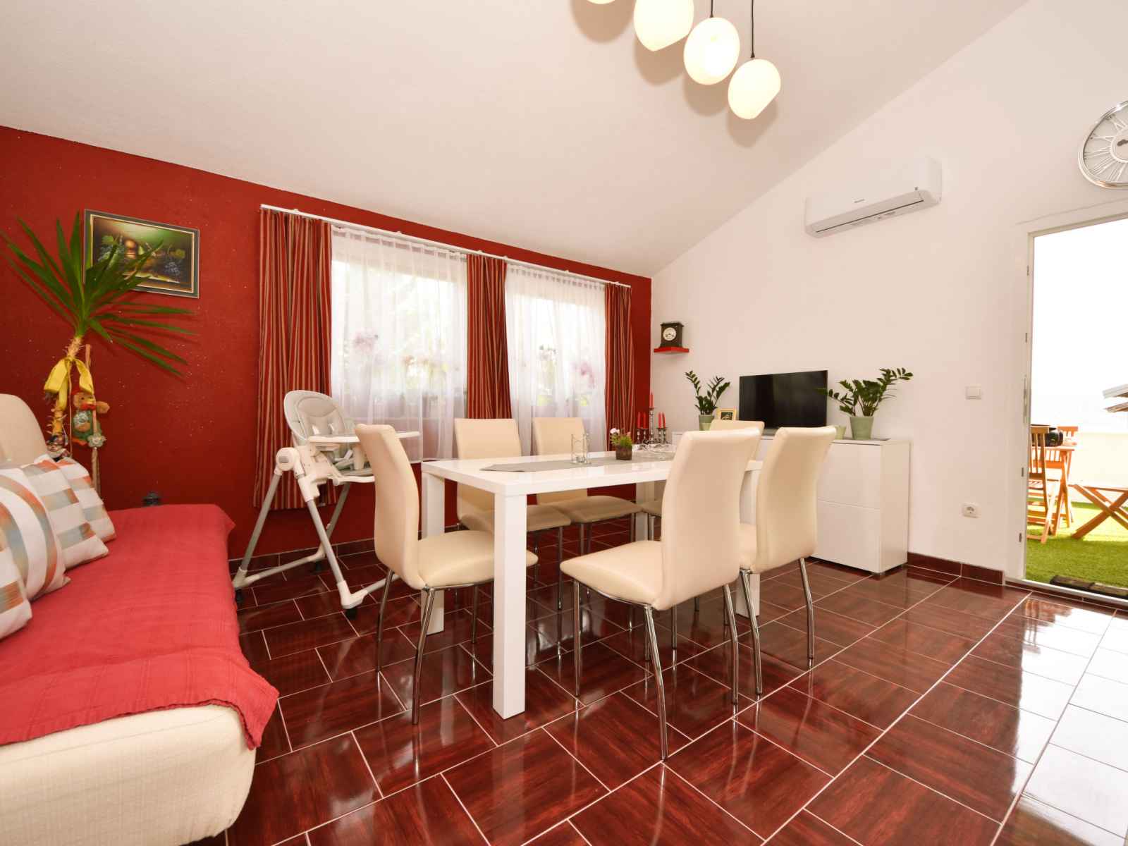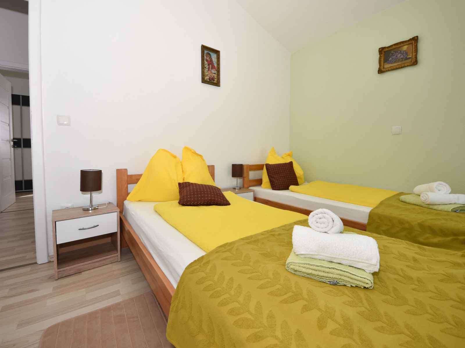 Apt 3 pièces 55 m2 au 1er étage. aménagement agréable: séjour/salle à manger 35 m2 avec tv (écran plat), radiateur et air-conditionné. 1 chambre avec 1 grand-lit (160 cm, longueur 200 cm). 1 chambre avec 2 lits (90 cm, longueur 200 cm). cuisine ouverte (four, 4 plaques à induction, grille-pain, bouilloire électrique, micro-ondes,