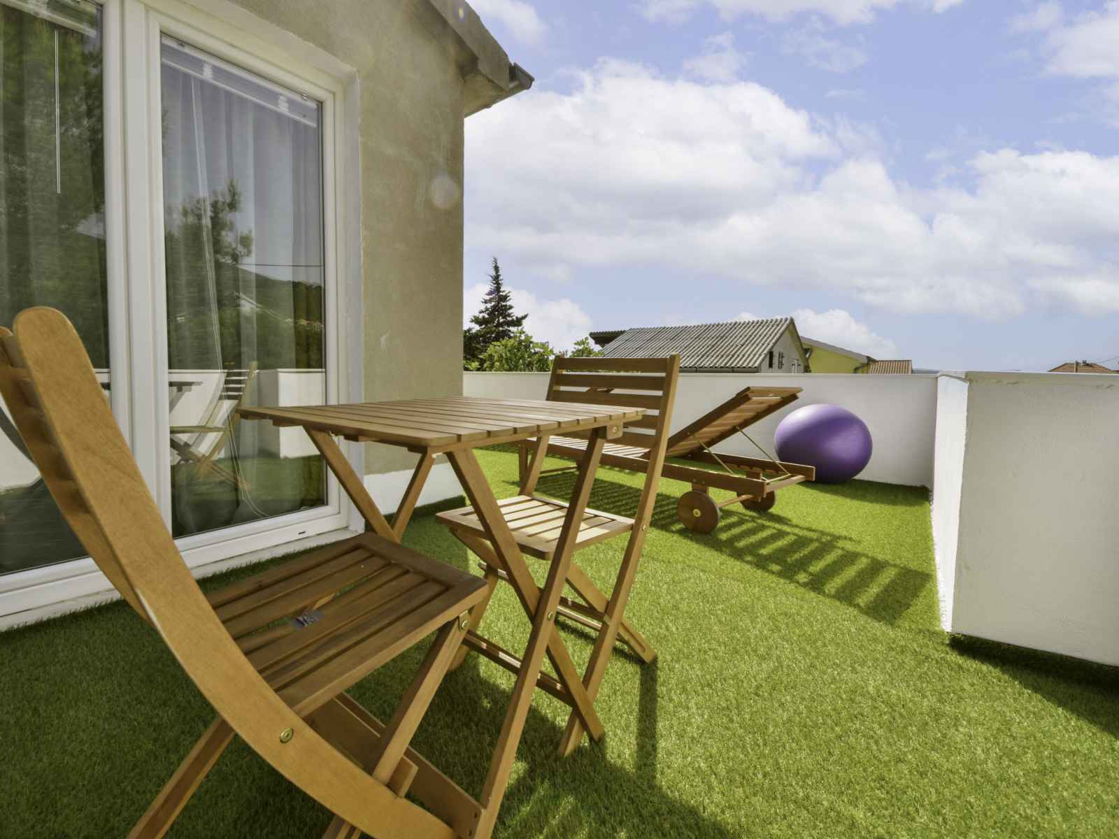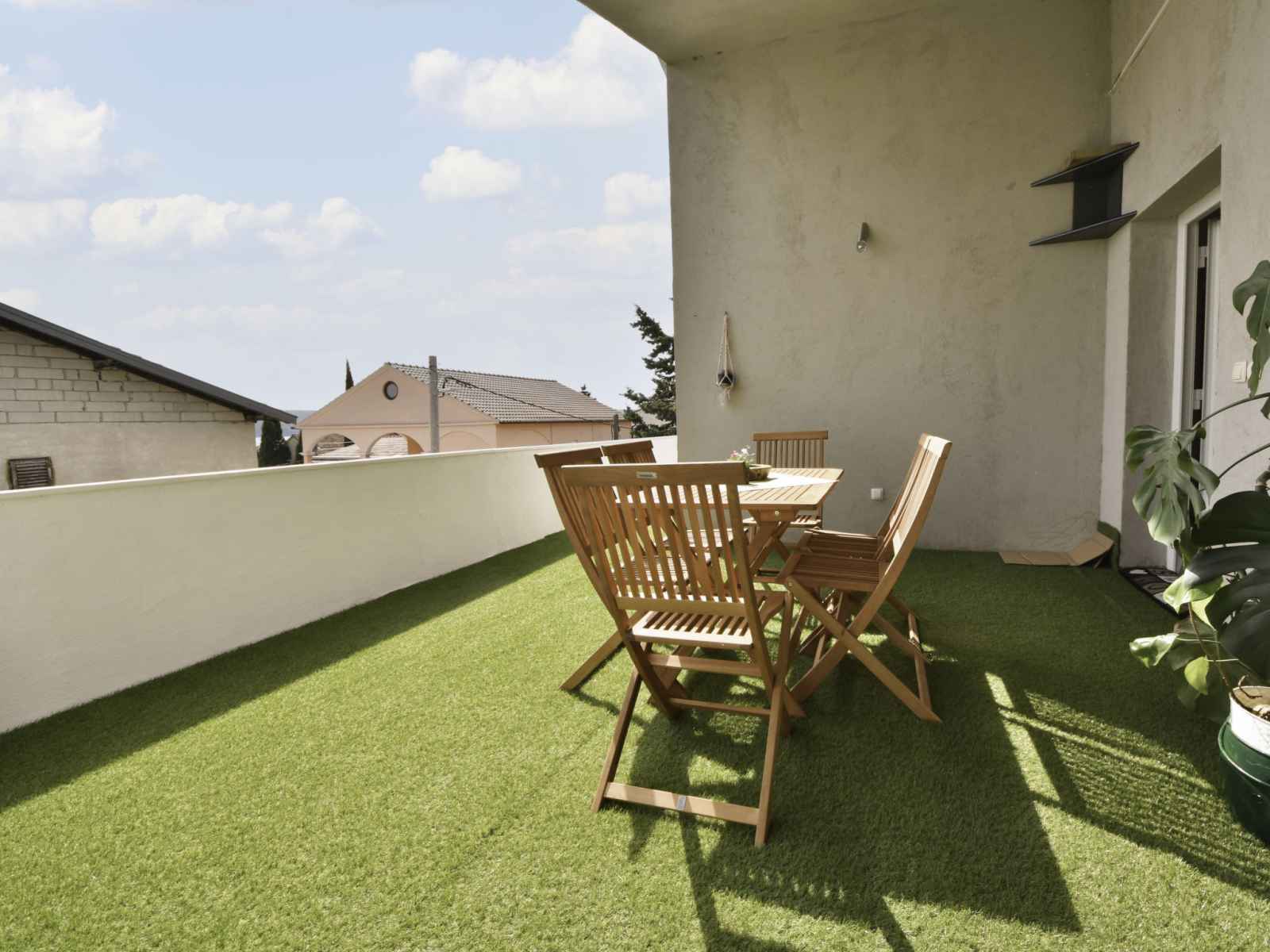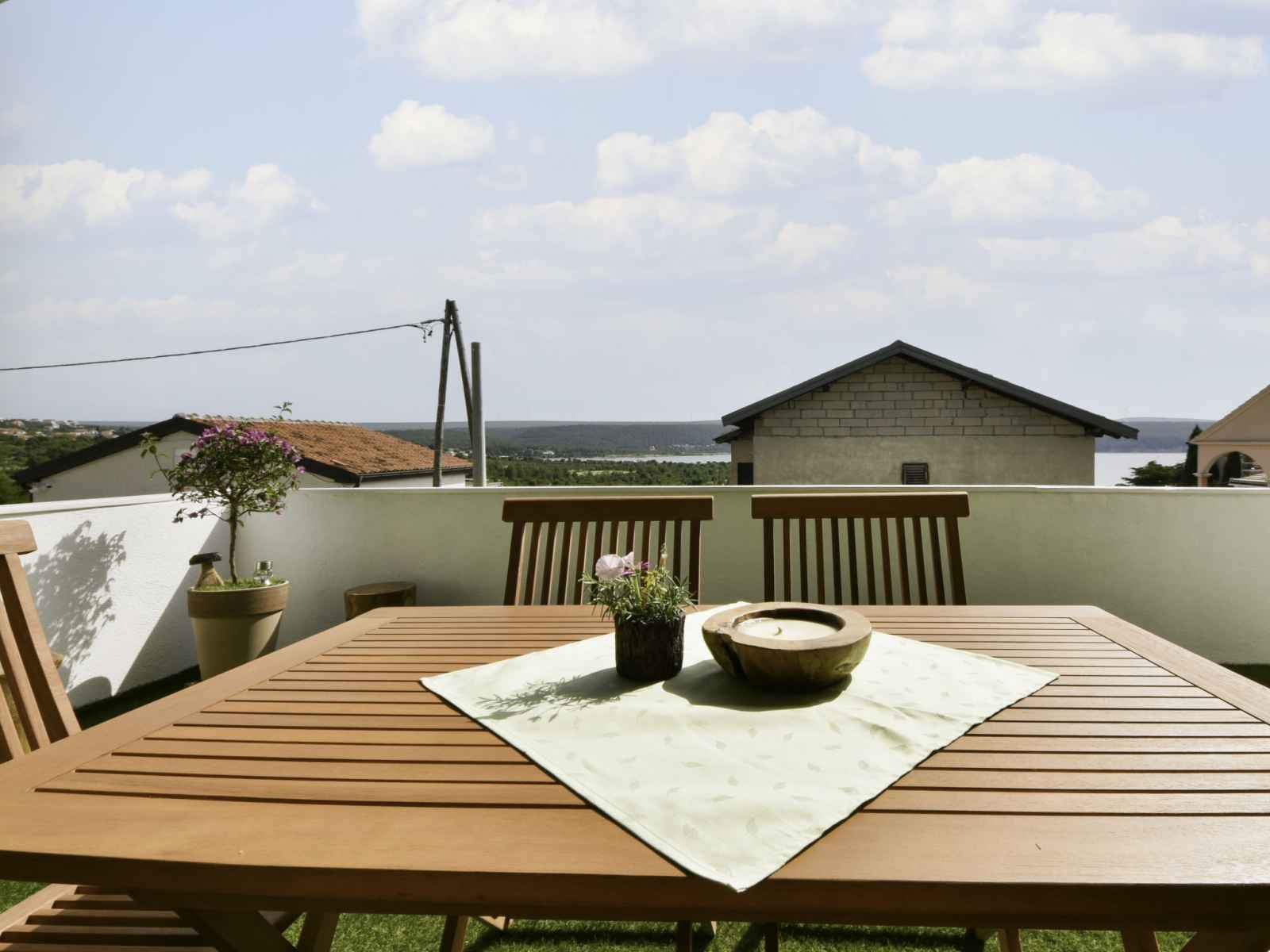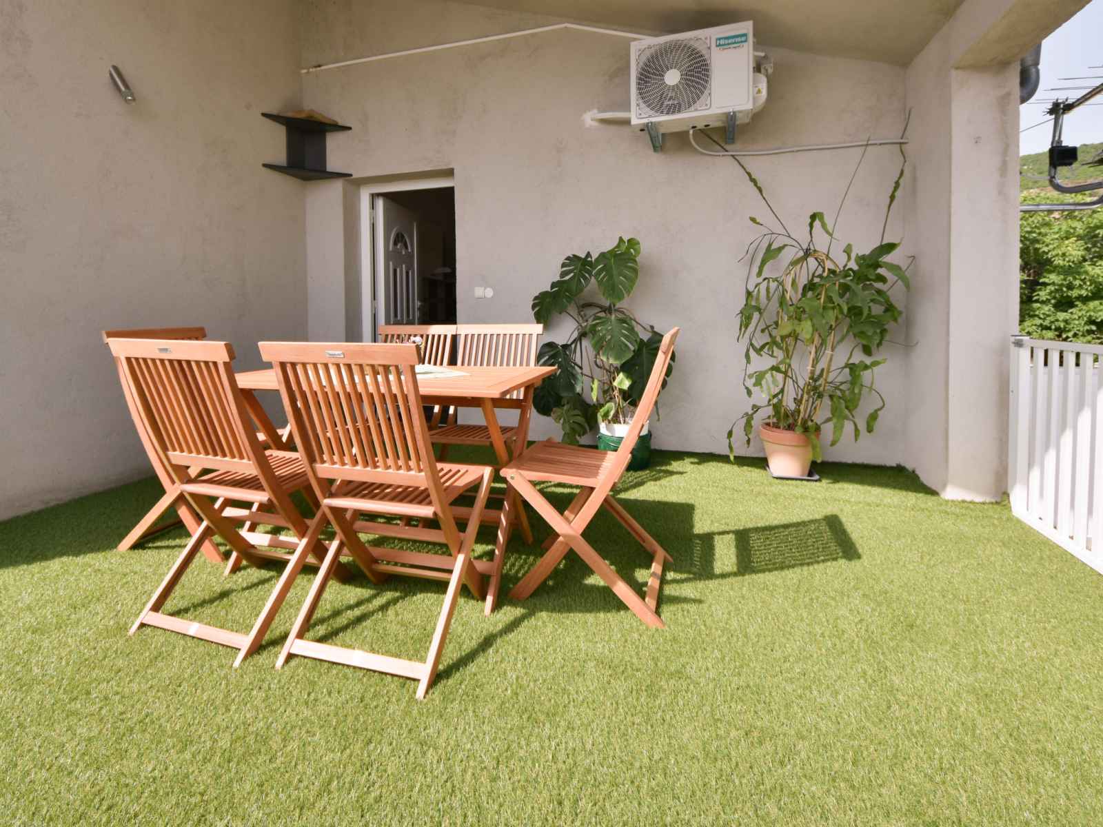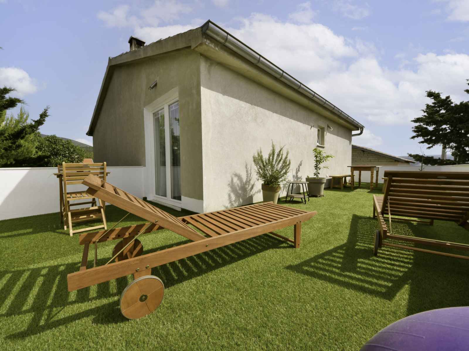 congélateur, cafetière électrique). Douche/WC. Chauffage électrique, chauffage au bois, chauffage à air chaud. Terrasse 80 m2. Meubles de terrasse, chaises longues. Partielle vue éloignée sur la mer. A disposition: lave-linge, sèche-cheveux. Internet (Connexion WIFI, gratuit).