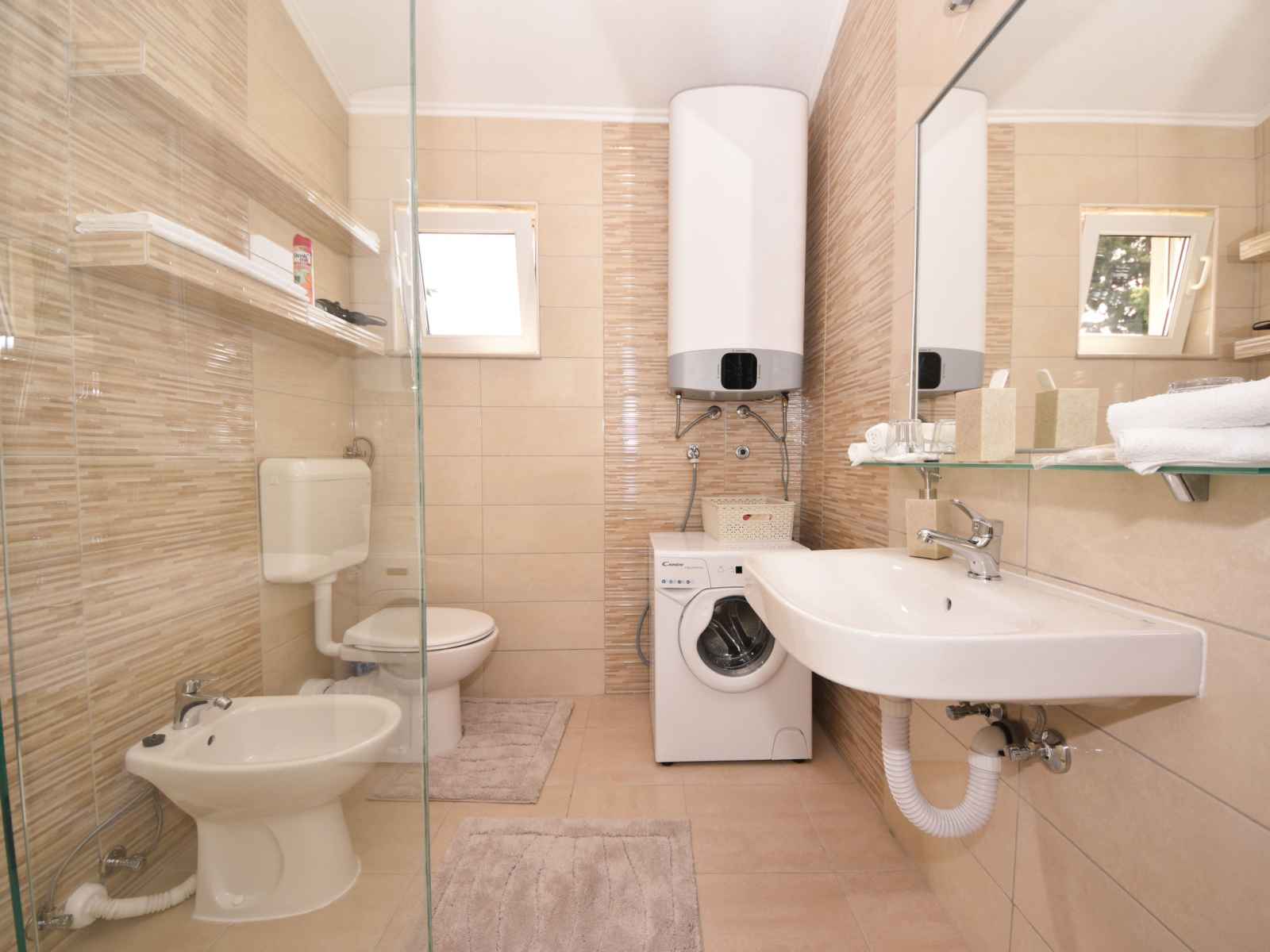 Kruševo à 14 km de novigrad: maison à 2 apts "zalazak sunca". situation ensoleillée, surélevée, à 100 m de la mer, à 200 m de la plage. en commun: terrain 300 m2 (clôturé). barbecue. a usage privé: bain à remous . infrastructures de la maison: accès internet. accès en voiture jusqu'à la maison (300 m chemin non goudronné). place
