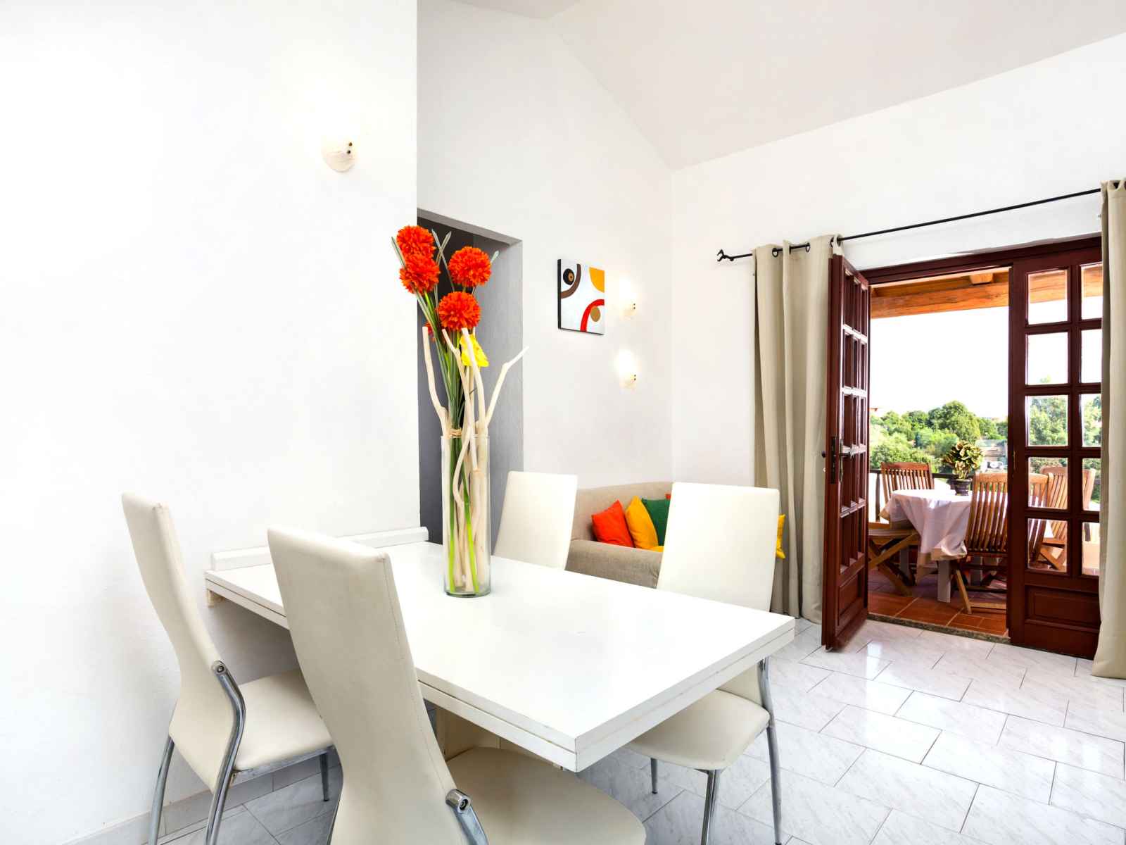 "bougainvillae trilo", apt 3 pièces 55 m2. clair, aménagement agréable: séjour/salle à manger avec table pour les repas, tv (satellite), chauffage électrique et air-conditionné. sortie sur la terrasse. 1 chambre avec 1 grand-lit (160 cm). 1 chambre avec 2 lits (80 cm). petite cuisine ouverte (2 plaques de cuisson). douche/wc. balcon ou