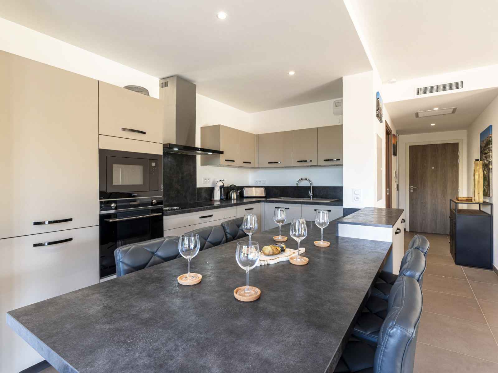 longueur 200 cm). Sortie sur la terrasse. Cuisine ouverte (four, lave-vaisselle, 1 plaques à induction, 4 feux, bouilloire électrique, micro-ondes, cafetière électrique). Bain/WC. Chauffage électrique, air-conditionné. Terrasse 40 m2, terrasse 15 m2, jardin. Meubles de terrasse, barbecue électrique. Vue sur les montagnes. A disposition: lave-linge. Internet (Connexion WIFI, gratuit). Place de parking. Veuillez noter: détecteur de fumée. 2A247000120E2