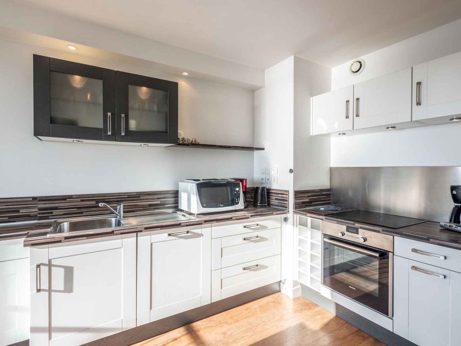 combiné micro-ondes). Douche, WC séparé. Vue sur la mer. A disposition: lave-linge. Internet (Connexion WIFI, en sus). Garage près de la maison. Veuillez noter: détecteur de fumée. 56186 000615 KL