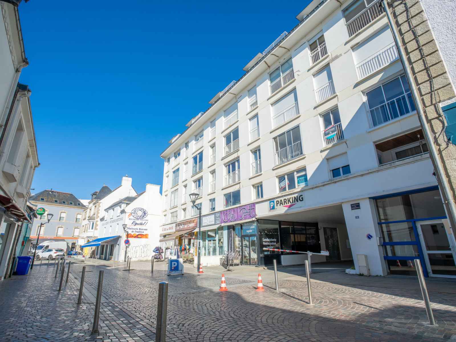 Quiberon: résidence "résidence kerentrech", de 5 étages. dans le quartier de port maria, à 50 m de la mer, à 100 m de la plage. infrastructures de la maison: ascenseur. magasins 50 m, magasin d'alimentation 20 m, supermarché 1.7 km, restaurant 20 m, arrêt de bus 100 m, plage de sable "grande plage" 100 m, centre thermal "thalassothérapie