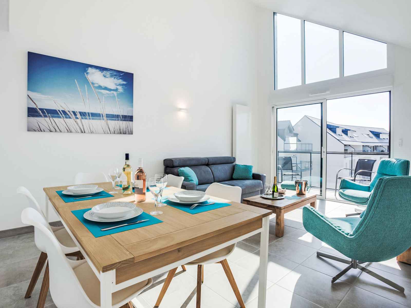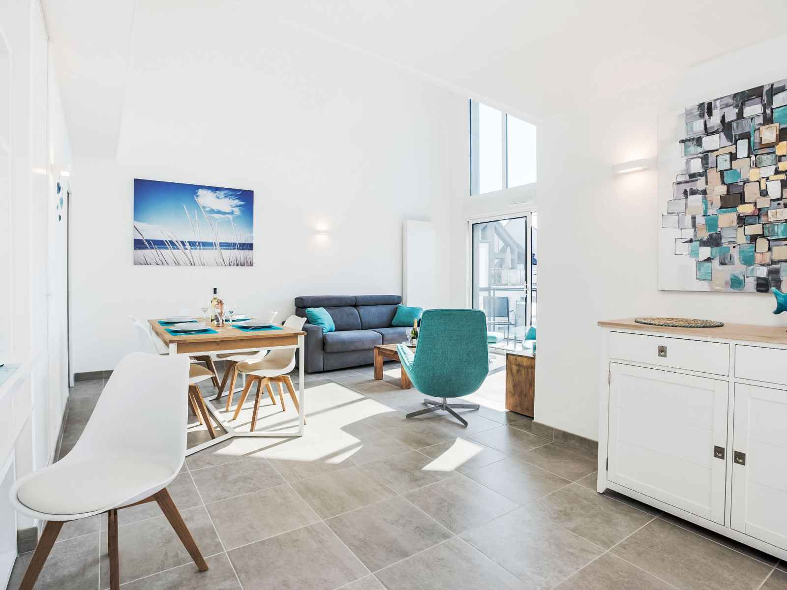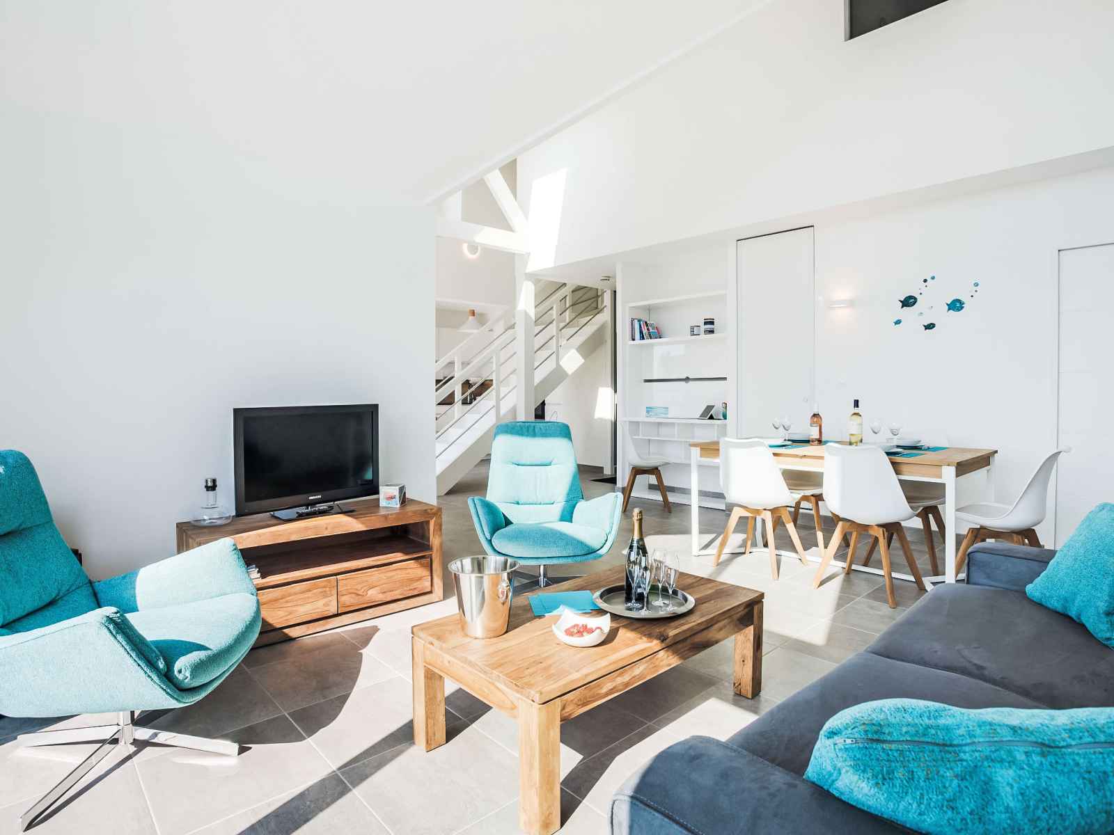 Apt 3 pièces 100 m2 sur 2 niveaux au 3ème étage. aménagement agréable et moderne: séjour/salle à manger avec tv (écran plat). sortie sur le balcon. cuisine ouverte (four, lave-vaisselle, 3 plaques à induction, micro-ondes, congélateur, cafetière électrique, capsules pour machine à café (senseo) (non incluses)). sortie sur la