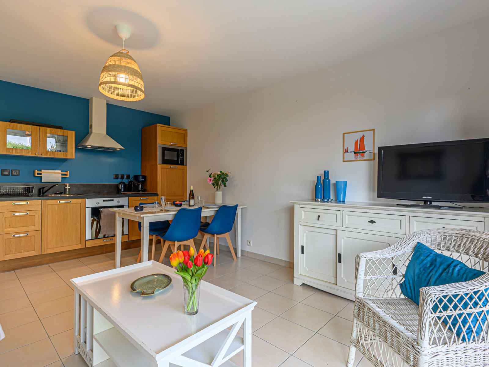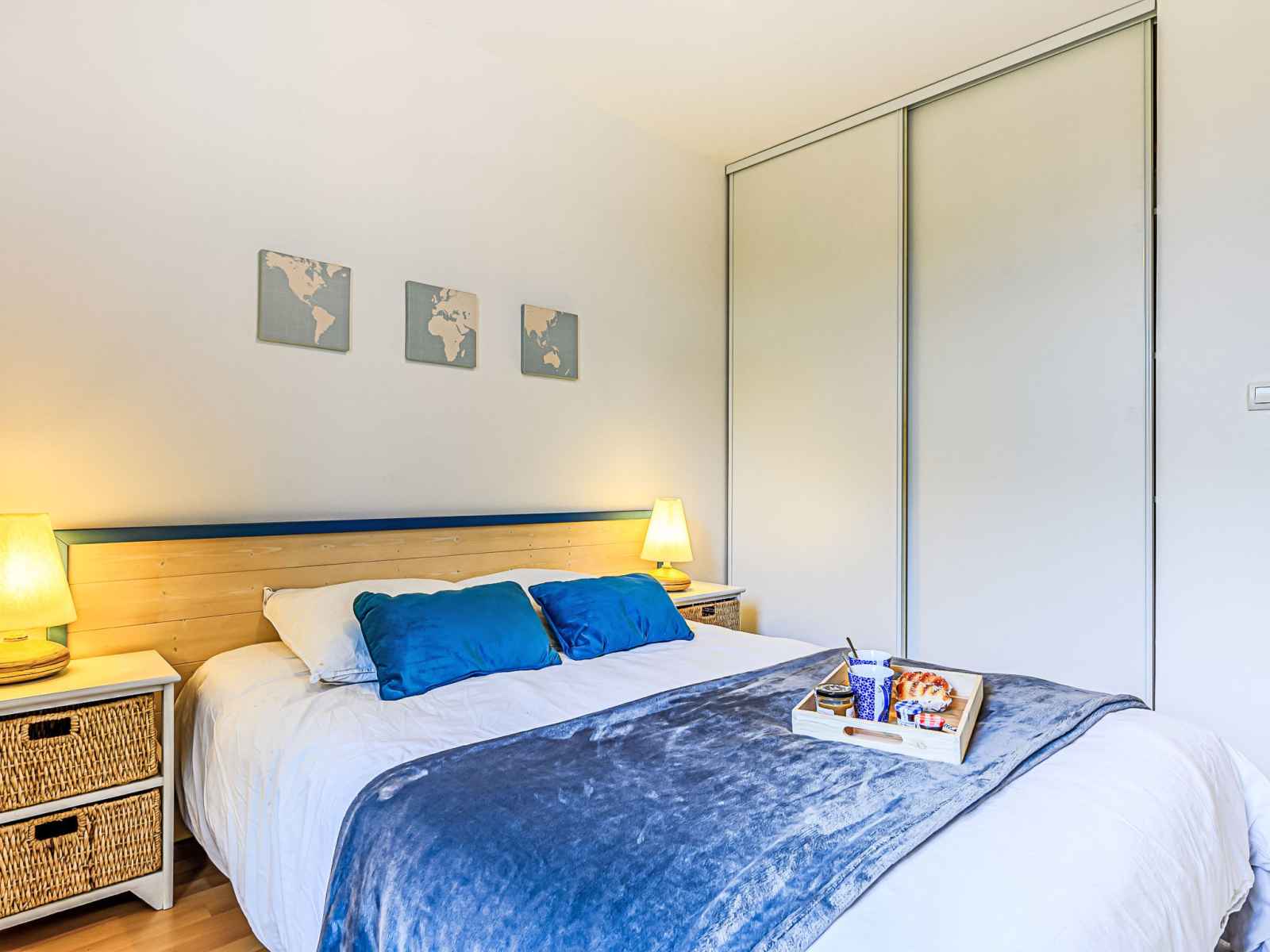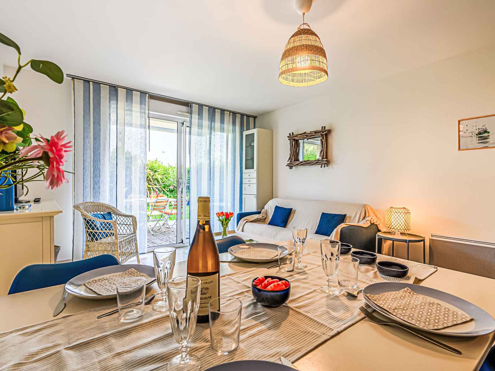 Apt 3 pièces 50 m2, situation sud-est. aménagement confortable et moderne: séjour avec table pour les repas et tv (écran plat). sortie sur le jardinet, orientée sud-est. 1 chambre avec 1 grand-lit (160 cm, longueur 200 cm). 1 petite chambre avec 1 x 2 lits superposés (80 cm, longueur 190 cm). cuisine (four, lave-vaisselle, 3 plaques à
