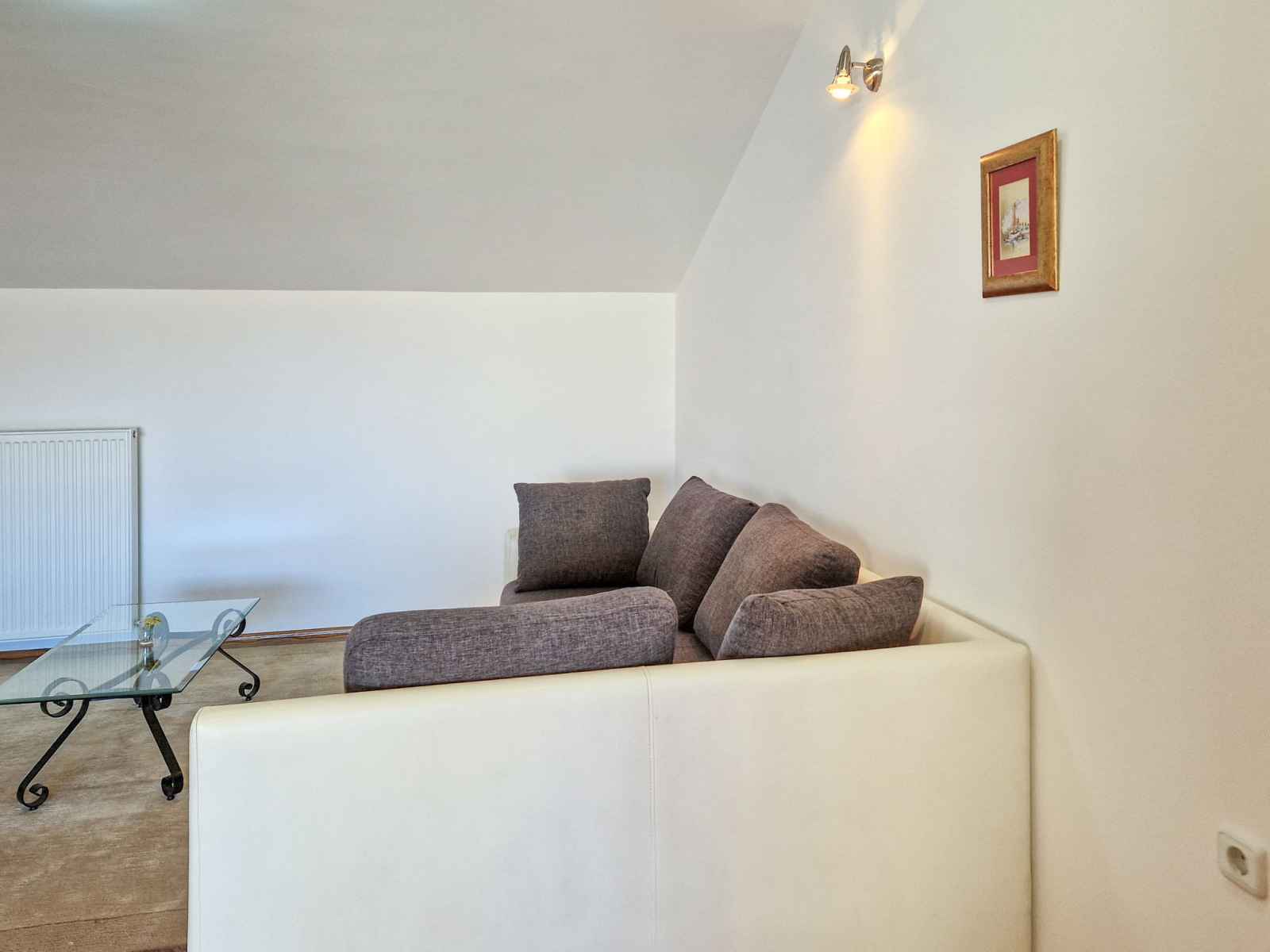 200 cm). 1 chambre mansardée hauteur plafond 165 - 280 cm avec 2 lits (90 cm, longueur 200 cm). Mansardée, cuisine ouverte (4 plaques de cuisson, four, lave-vaisselle, micro-ondes, cafetière électrique), hauteur plafond 165 - 280 cm. Douche/WC, WC séparé, bain/douche/WC. Chauffage, air-conditionné. Possibilité de chauffage uniquement du 01.11. au 01.05. Terrasse 22 m2, couverte, terrasse 7 m2, couverte. Meubles de terrasse. A disposition: lave-linge, lit bébé. Internet (Connexion WIFI, gratuit). Veuillez noter: maximum 1 animal/ chien autorisé. Entrée privée.