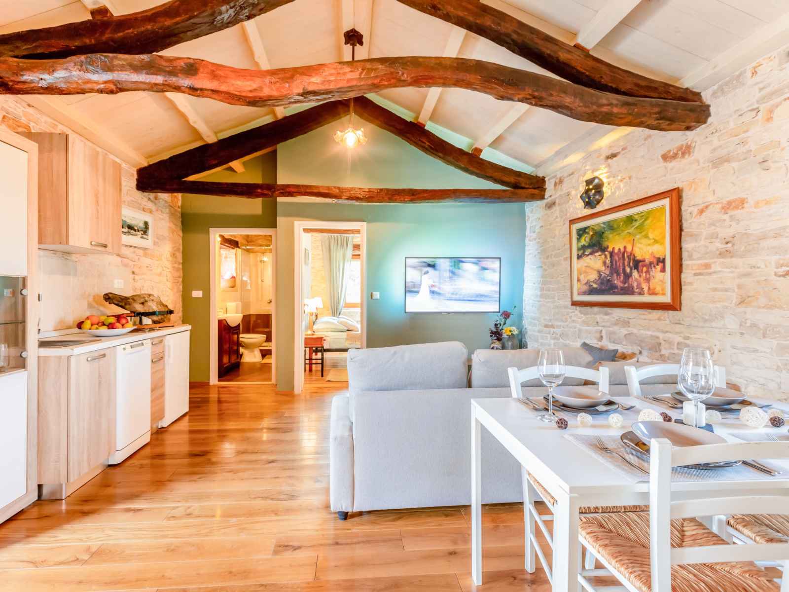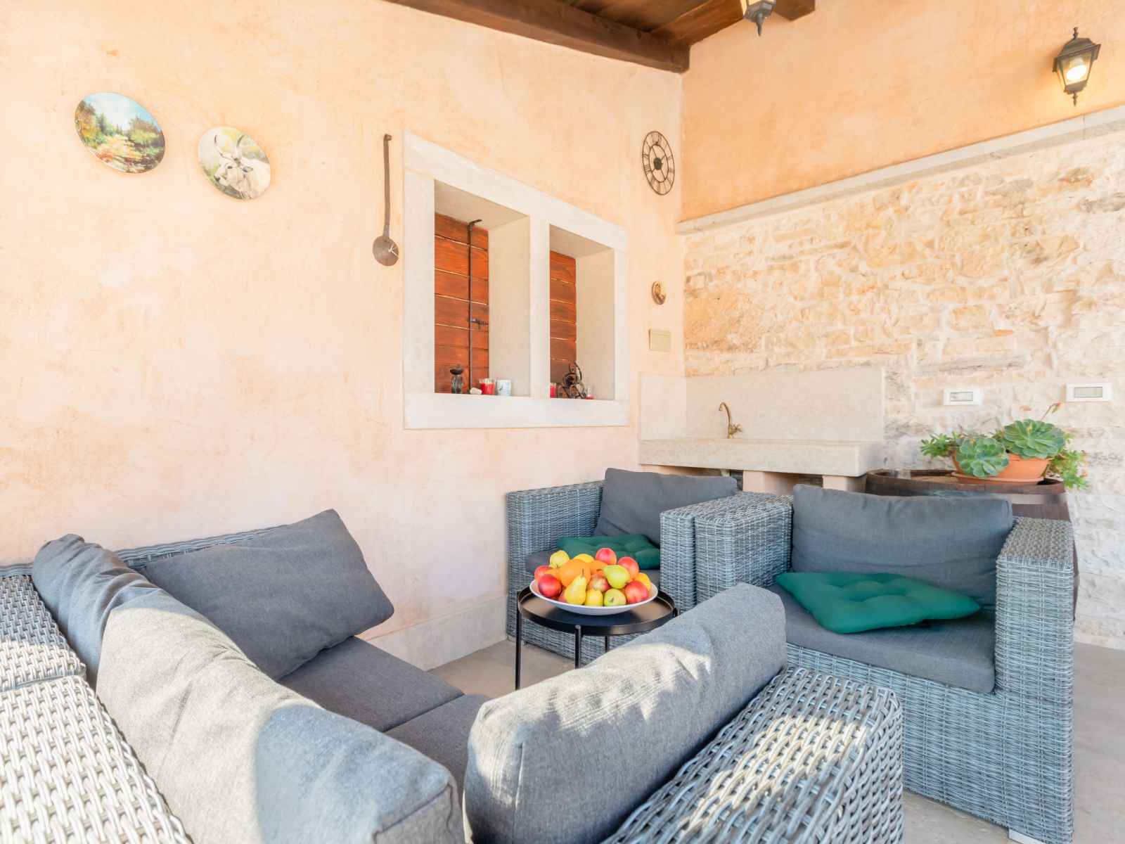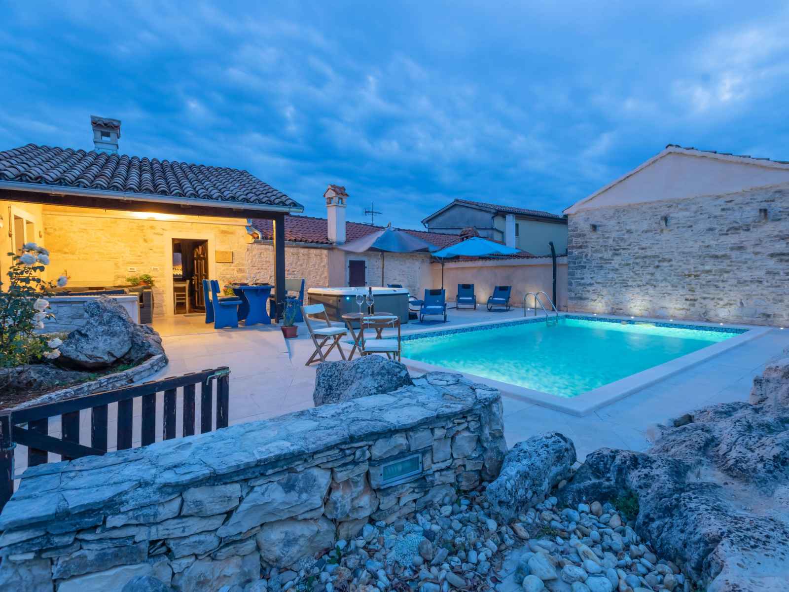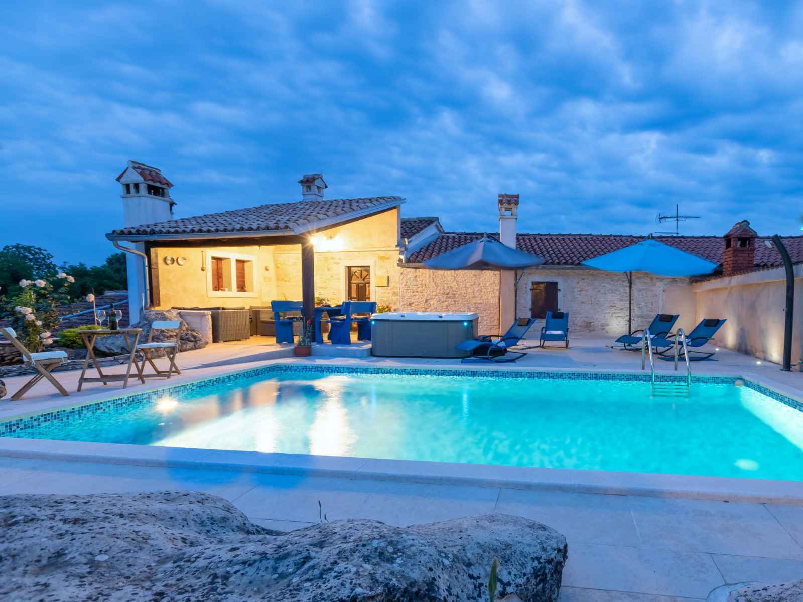 Maison à 2 apts "botra maria". dans le hameau de gljuščići, à 7 km du centre de Žminj, à 25 km du centre de rovinj, à 25 km de la mer. a usage privé: terrain 1'000 m2 avec plantes, piscine rectangulaire (8 x 4 m, profondeur 135 cm, disponibilité saisonnière: 01.mai. - 30.sep.). douche extérieure, bain à remous , barbecue.
