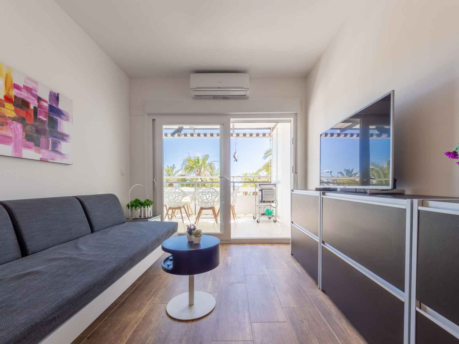 "rodas", apt 3 pièces 55 m2 au 2ème étage. complètement rénové en 2022, aménagement confortable et moderne: séjour/salle à manger avec télévision numérique et air-conditionné. sortie sur le balcon. 1 chambre avec 2 lits (90 cm, longueur 200 cm), ventilateur. 1 chambre avec 2 lits (80 cm, longueur 200 cm), air-conditionné. cuisine