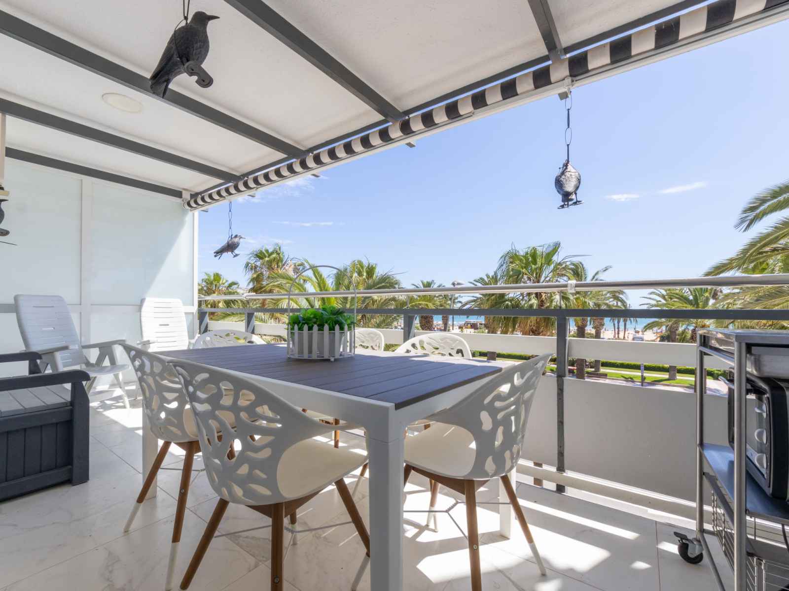 ouverte (four, lave-vaisselle, 2 plaques vitrocéramiques, grille-pain, bouilloire électrique, micro-ondes, cafetière électrique, Capsules pour machine à café (Dolce Gusto) (NON INCLUSES)) avec chauffe eau (50 litres). Douche/WC. Chauffage pas dans toutes les pièces. Terrasse. Meubles de terrasse. Superbe vue sur la mer. A disposition: lave-linge, fer à repasser, sèche-cheveux. Internet (Connexion WIFI, gratuit). Veuillez noter: adapté(e) aux familles. Logement non-fumeur. TV seulement ES. HUTT-013395 // Reg. Nr.: ESFCTU00004302400009670700000000000000HUTT-013395-107