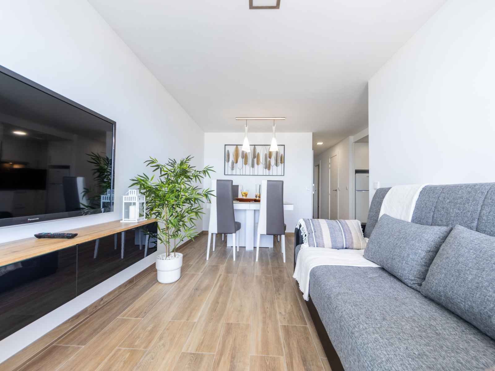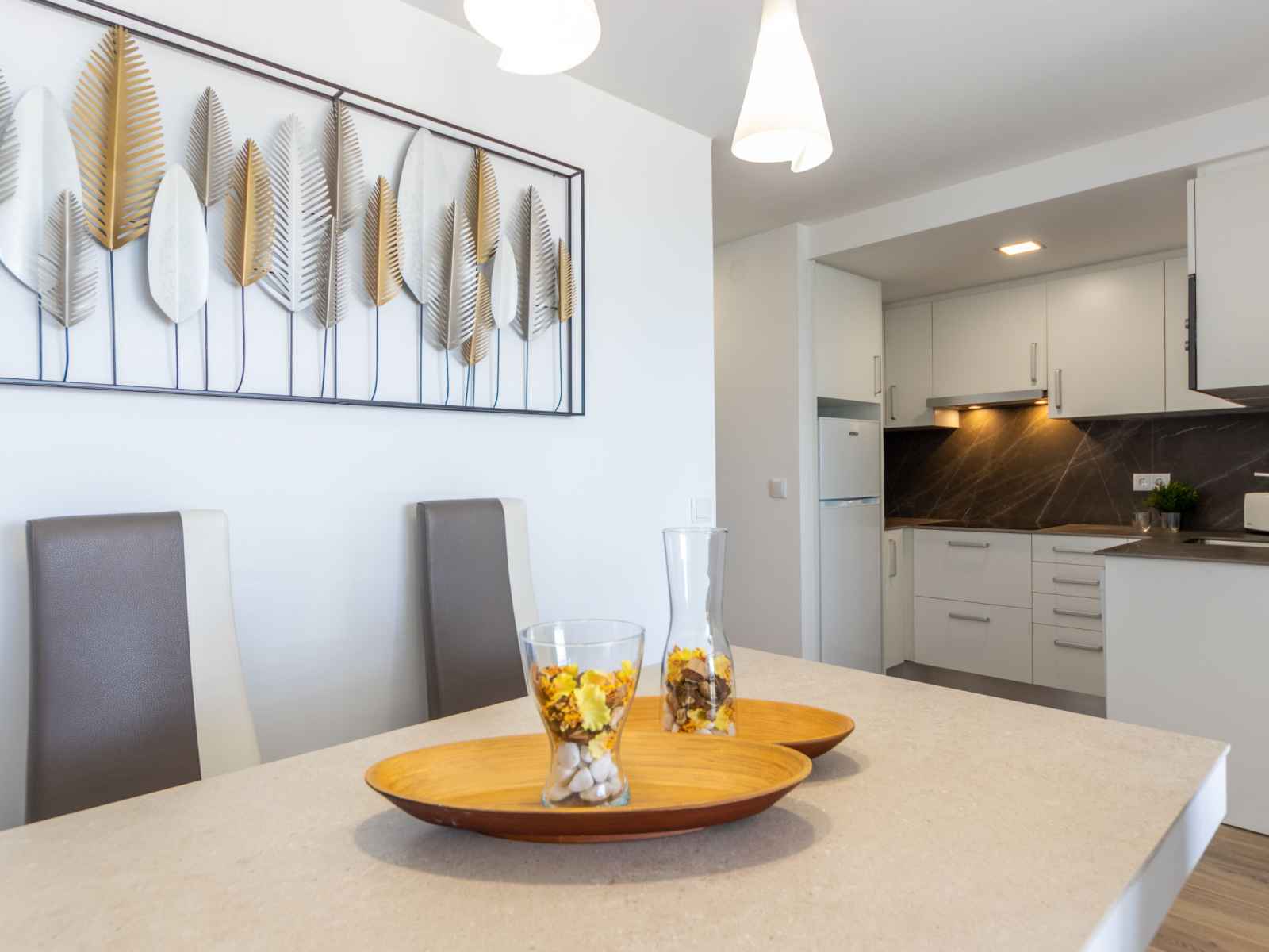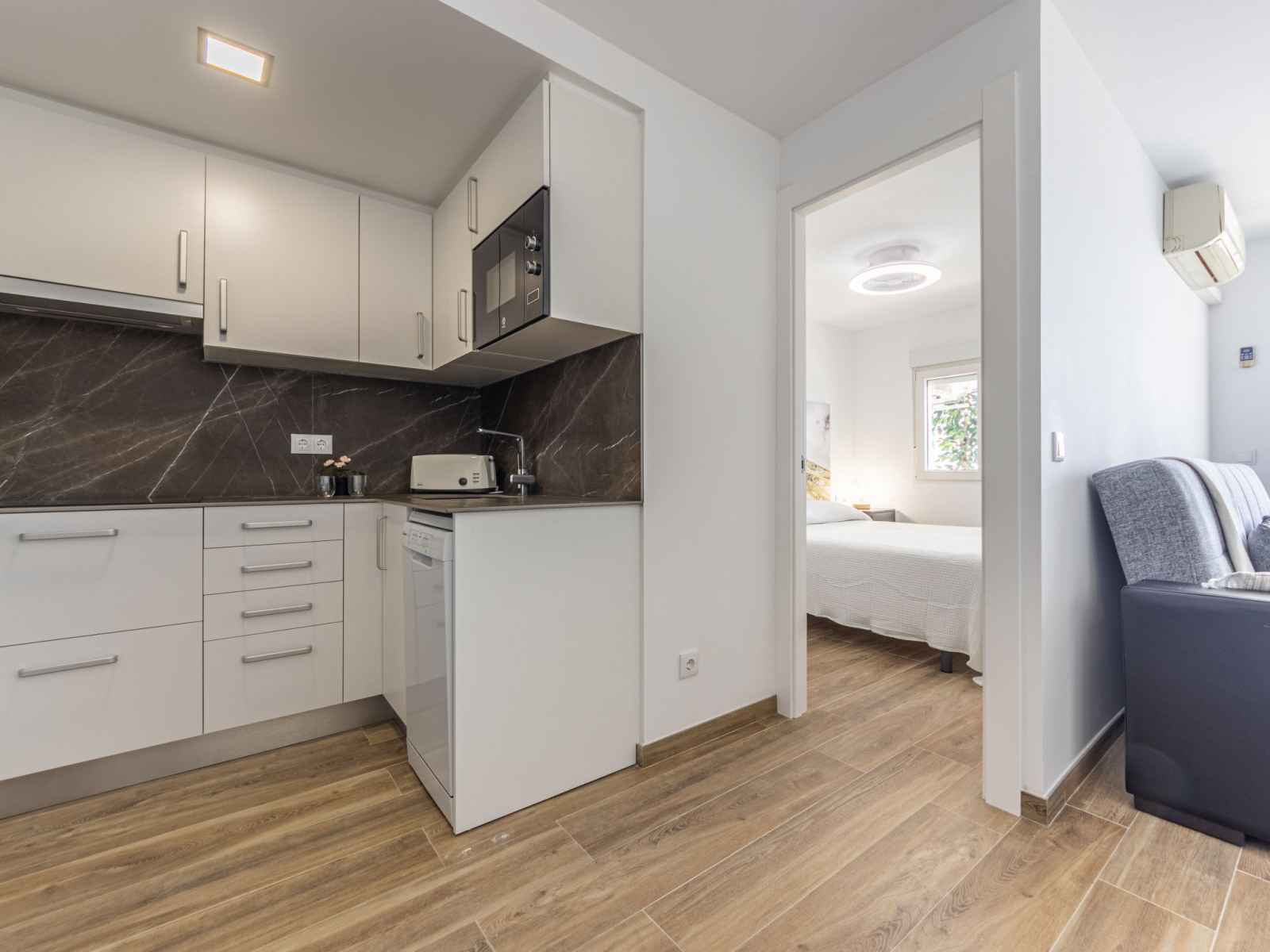 grand-lit (160 cm, longueur 200 cm), TV et ventilateur. Cuisine ouverte (four, lave-vaisselle, 3 plaques vitrocéramiques, grille-pain, bouilloire électrique, cafetière électrique, combiné micro-ondes) avec chauffe eau (50 litres). Douche/WC. Chauffage pas dans toutes les pièces. Balcon. Meubles de terrasse. Superbe vue sur la mer. A disposition: lave-linge, fer à repasser, sèche-cheveux. Internet (Connexion WIFI, gratuit). Place de parking No B20 no cubierto (en sus) à 100 m. Veuillez noter: adapté(e) aux familles. Logement non-fumeur. HUTT-075447 // Reg. Nr.: ESFCTU00004302400009696700000000000000000000075447724