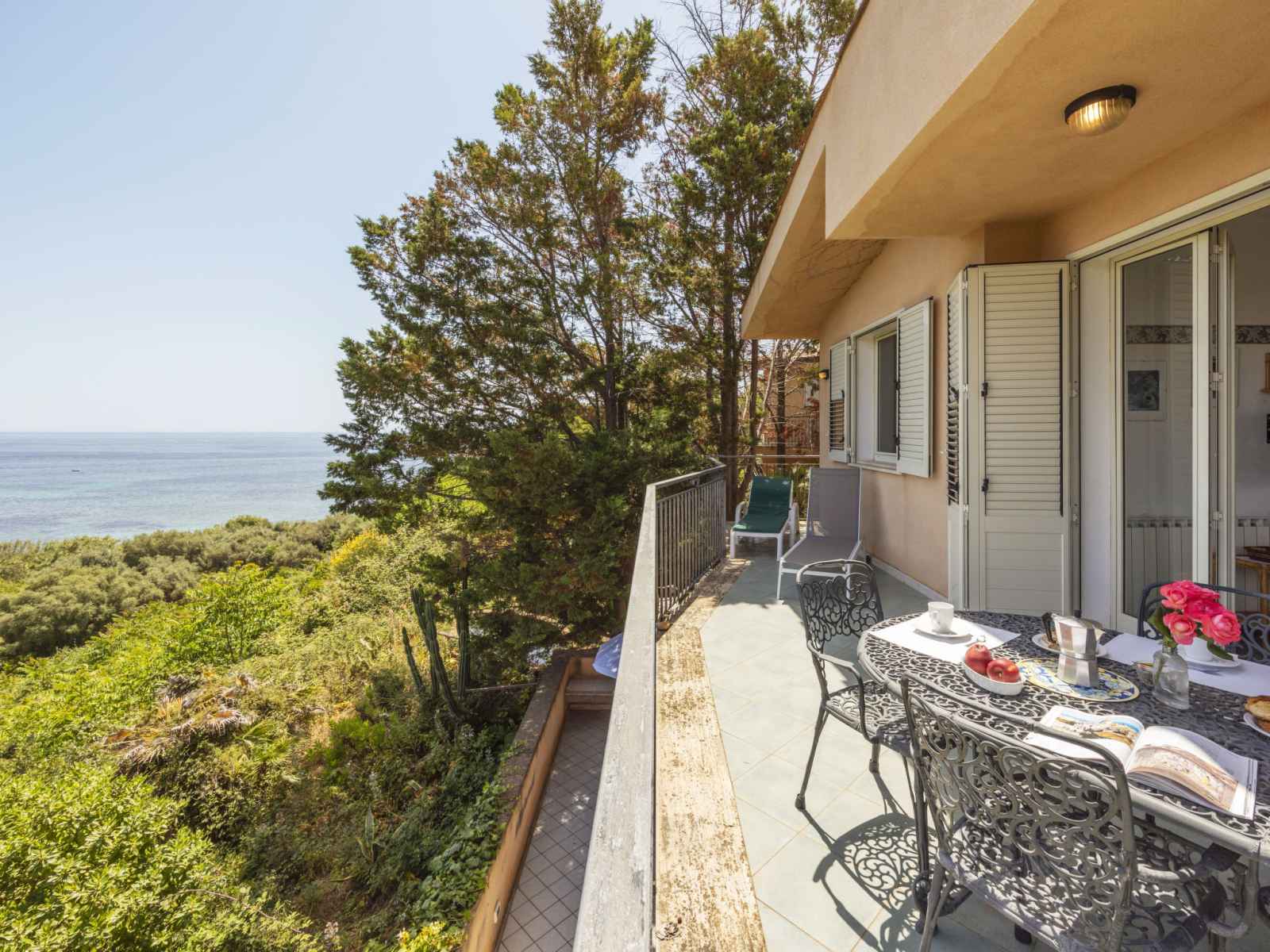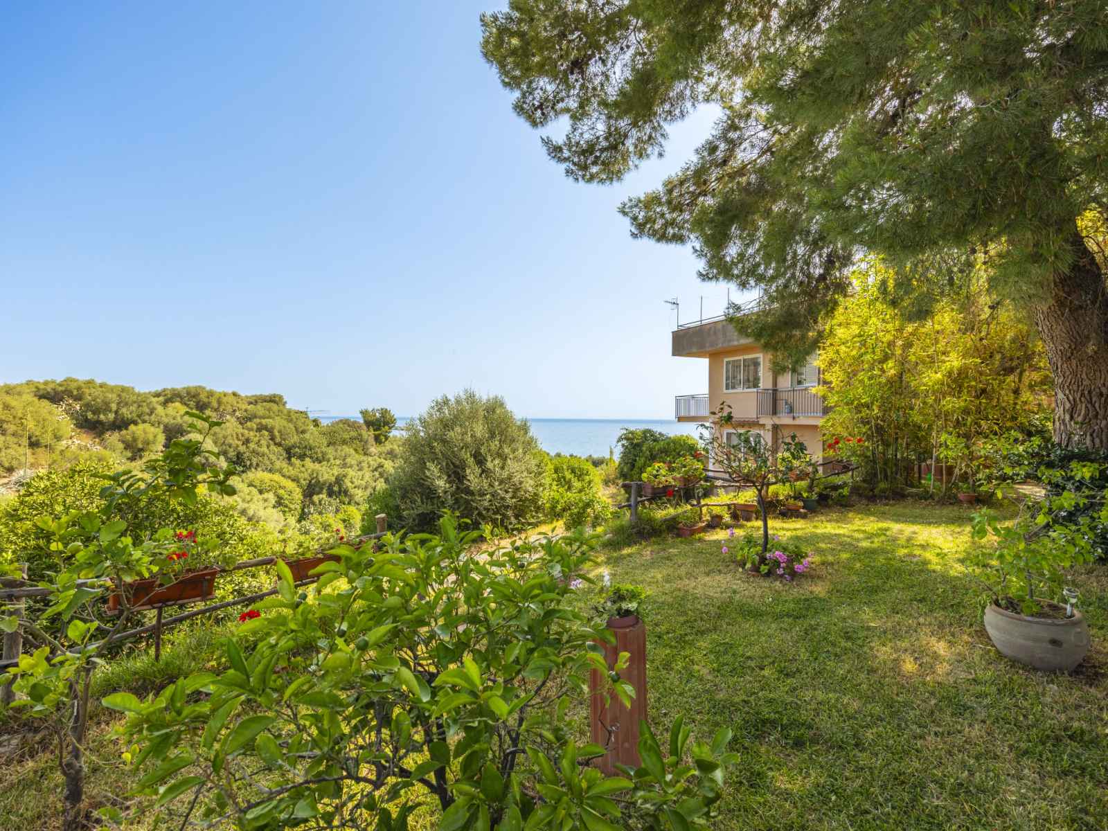 Résidence, environnée par les arbres. 10 appartements dans la résidence. À 1 km du centre de santa flavia, à 3 km du centre de bagheria, situation ensoleillée sur un versant, à 100 m de la mer, à 100 m de la plage, dans la verdure. en commun: terrain, jardin (clôturé) avec plantes et arbres, verger. douche extérieure, ping-pong, terrain