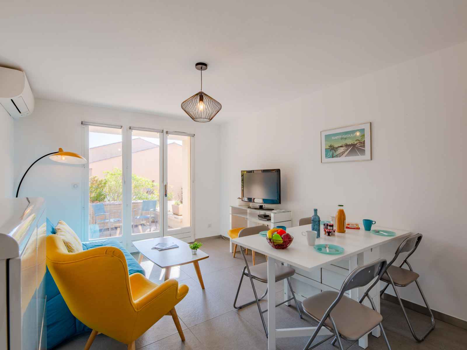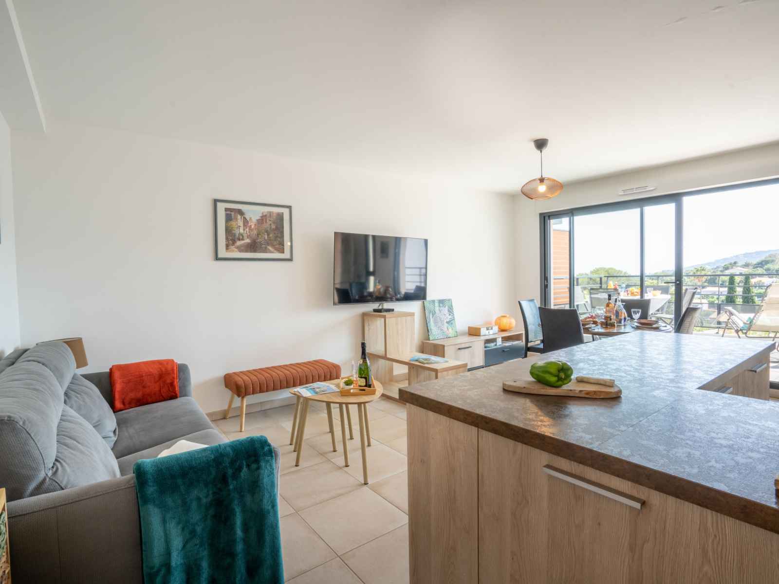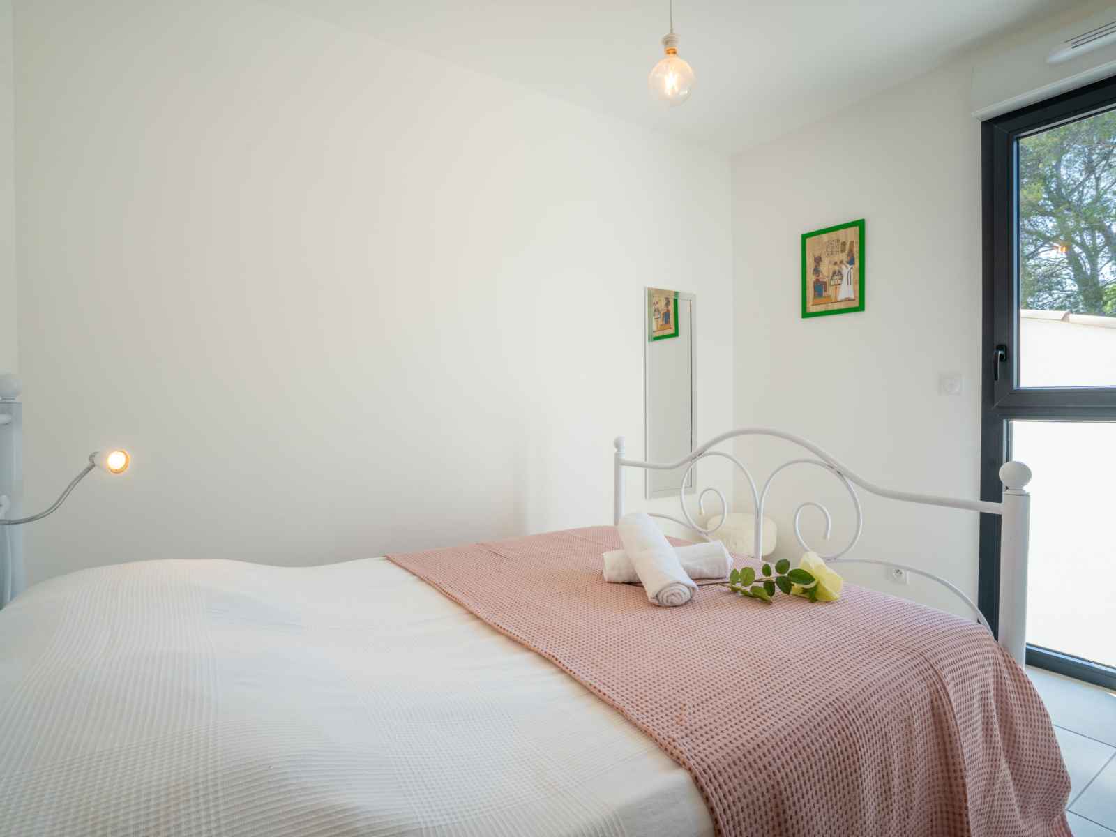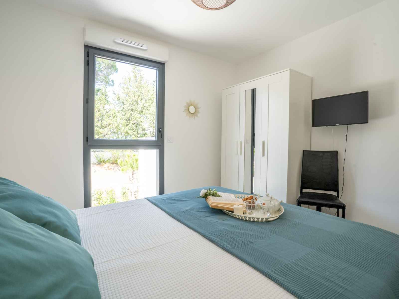 Apt 3 pièces 61 m2 au 1er étage. aménagement confortable et moderne: séjour/salle à manger avec tv (écran plat), air-conditionné et volet roulant électrique. sortie sur la terrasse. 1 chambre avec 1 grand-lit (1 x 160 cm, longueur 200 cm), tv (écran plat), air-conditionné et volet roulant électrique. 1 chambre avec 1 grand-lit (1 x 140