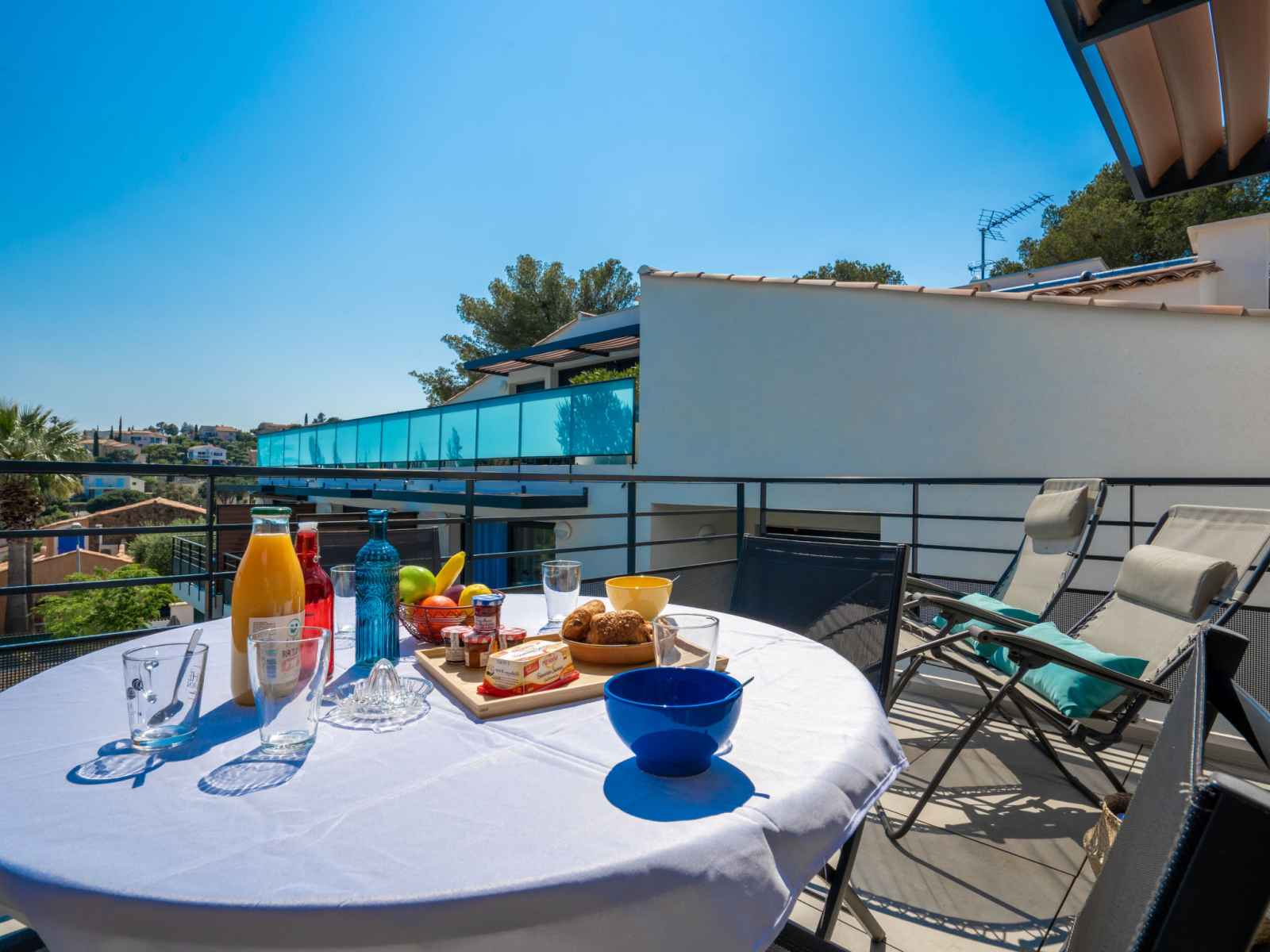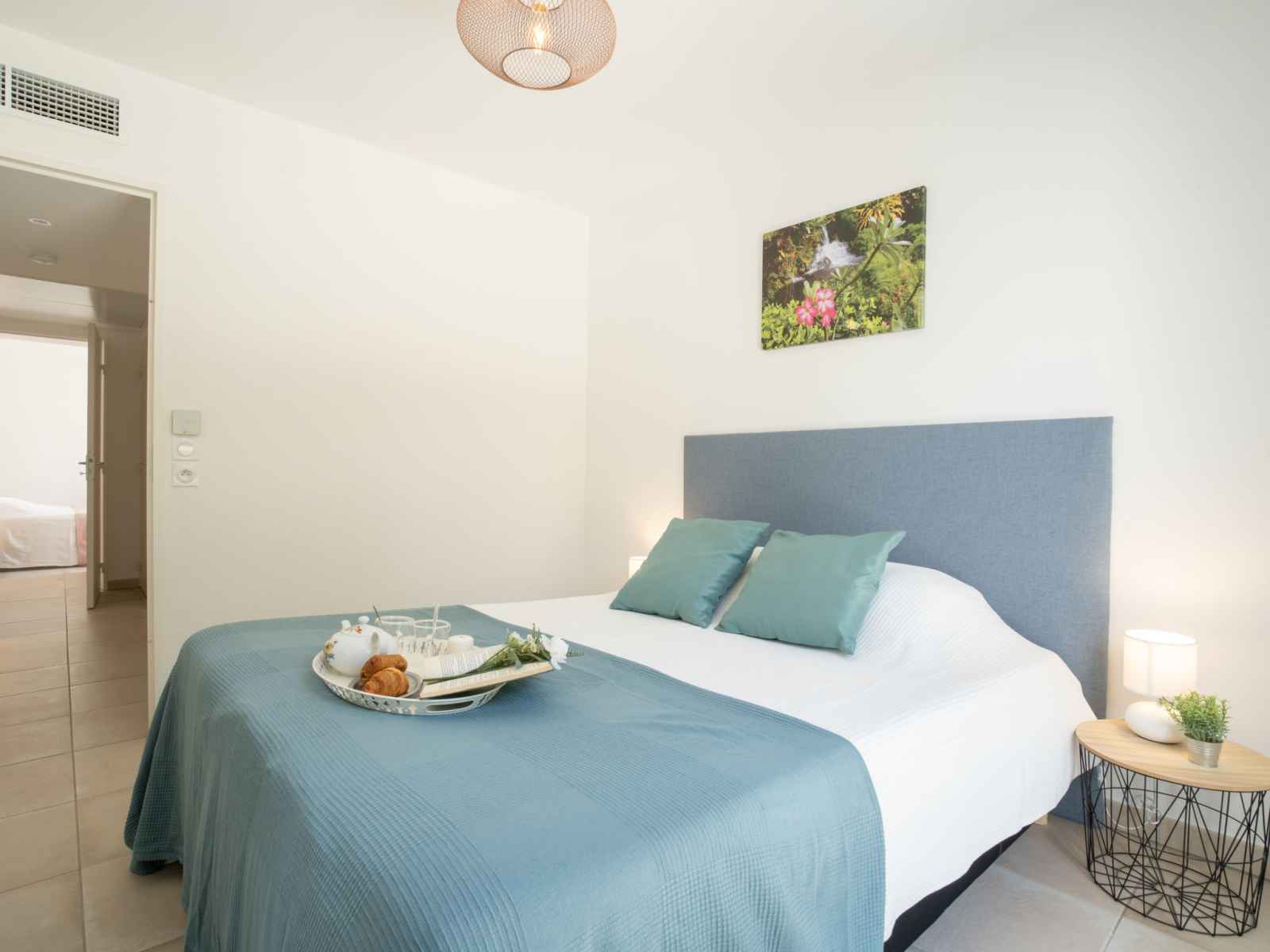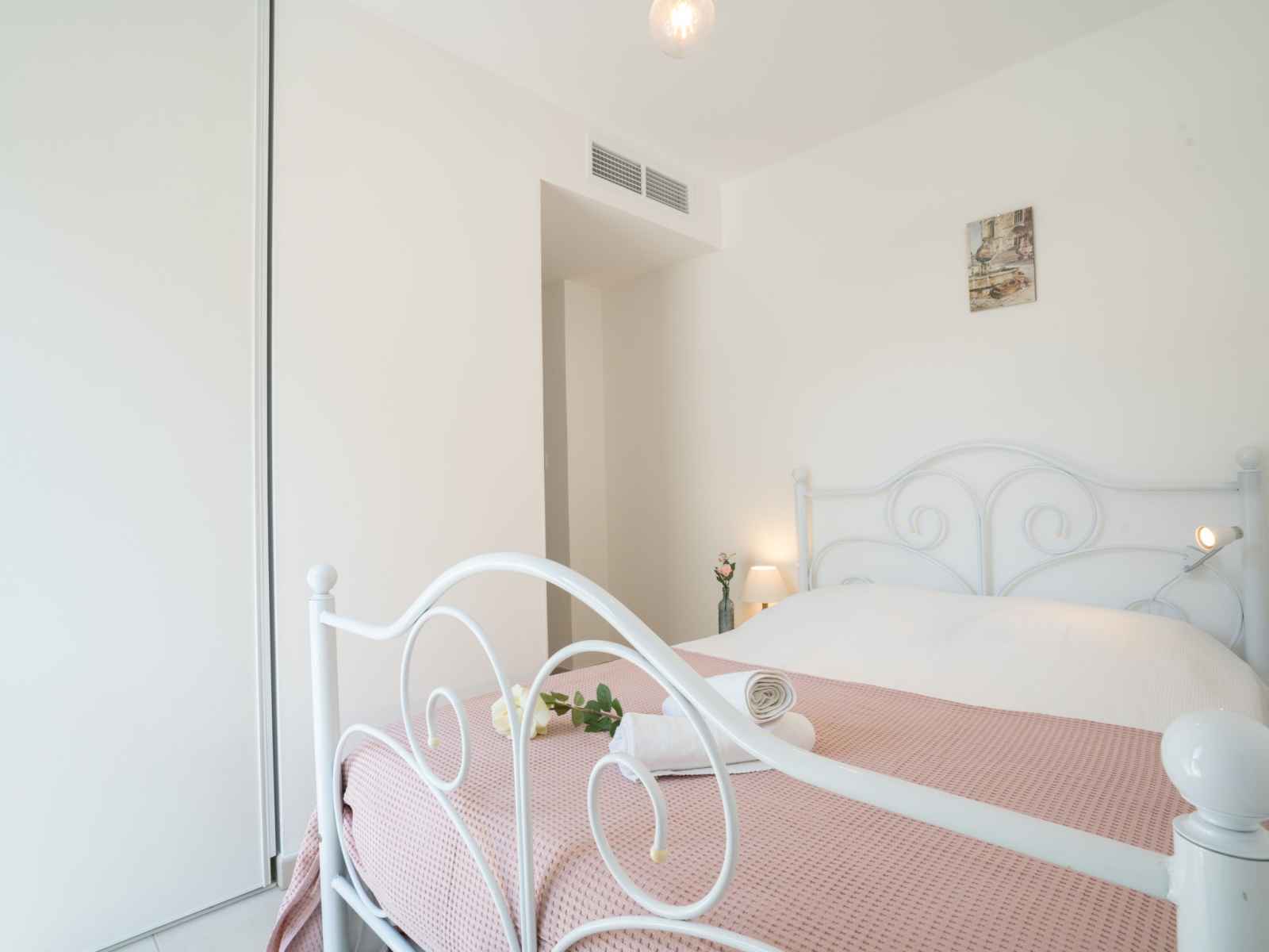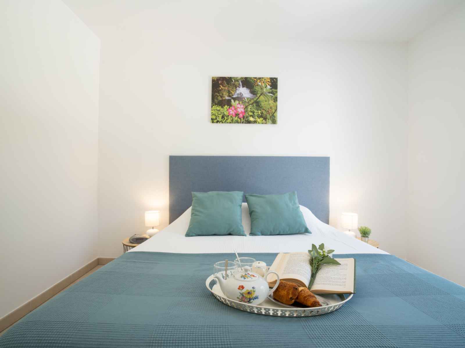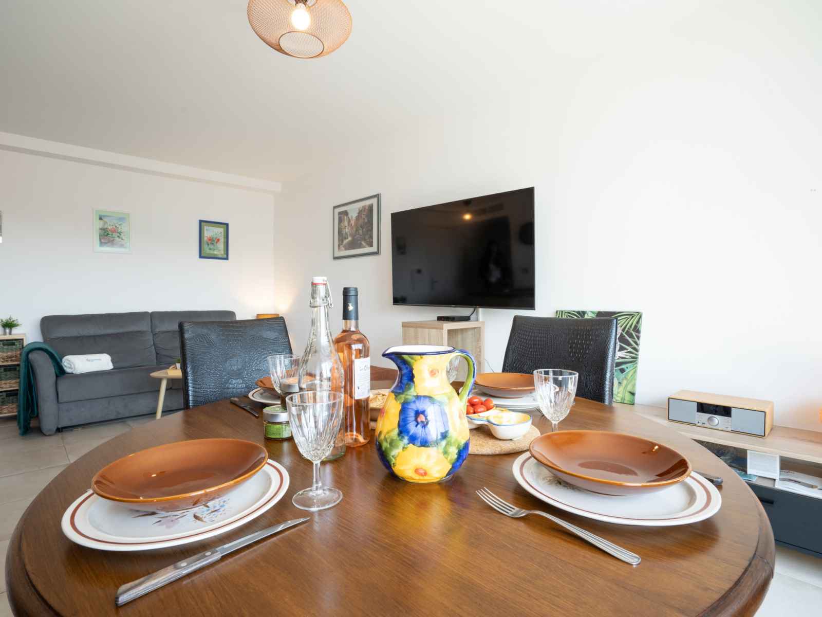 Apt 3 pièces 61 m2 au 1er étage. aménagement confortable et moderne: séjour/salle à manger avec tv (écran plat), air-conditionné et volet roulant électrique. sortie sur la terrasse. 1 chambre avec 1 grand-lit (1 x 160 cm, longueur 200 cm), tv (écran plat), air-conditionné et volet roulant électrique. 1 chambre avec 1 grand-lit (1 x 140