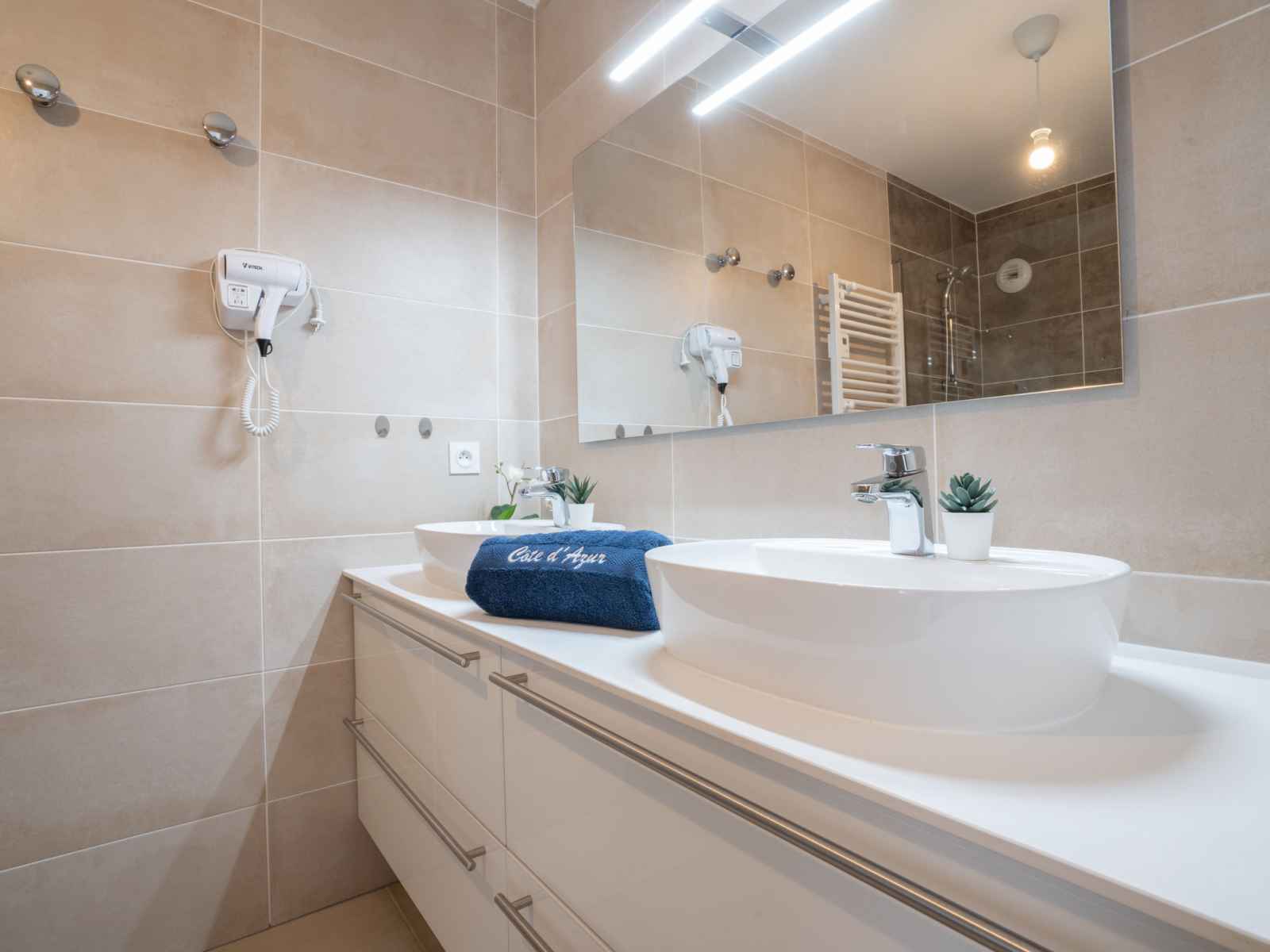 cm, longueur 190 cm), air-conditionné et volet roulant électrique. Cuisine ouverte (four, lave-vaisselle, 3 plaques à induction, grille-pain, bouilloire électrique, micro-ondes, congélateur, cafetière électrique, Capsules pour machine à café (Senseo) (NON INCLUSES)). Douche, WC séparé, double vasque. Chauffage. Terrasse 12 m2. Meubles de terrasse, chaises longues (2). Vue latérale sur la mer. A disposition: lave-linge, fer à repasser, sèche-cheveux. Internet (Connexion WIFI, gratuit). Garage No 15 (1 Voiture), hauteur 210 cm, largeur 218 cm. Veuillez noter: détecteur de fumée. 1CYX6X