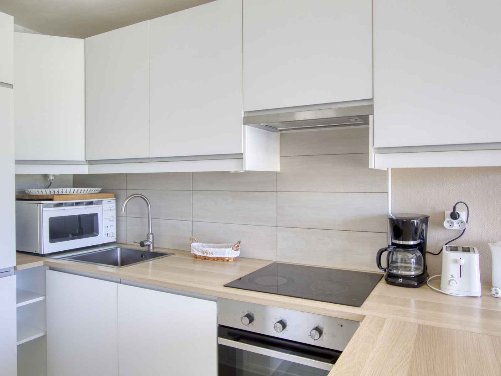 plaques vitrocéramiques, grille-pain, bouilloire électrique, congélateur, cafetière électrique, combiné micro-ondes). WC séparé. Chauffage électrique. Terrasse 20 m2, situation sud-ouest. Meubles de terrasse. Vue éloignée sur la mer et la forêt. A disposition: lave-linge. Internet (Connexion WIFI, gratuit). Place de parking. Veuillez noter: TV seulement FR. Détecteur de fumée. Une douche supplémentaire se trouve dans le couloir d'entrée du logement. Possibilité de réserver l'appartement situé juste à côté, référence fr8341.160.7. 83112 000227 99