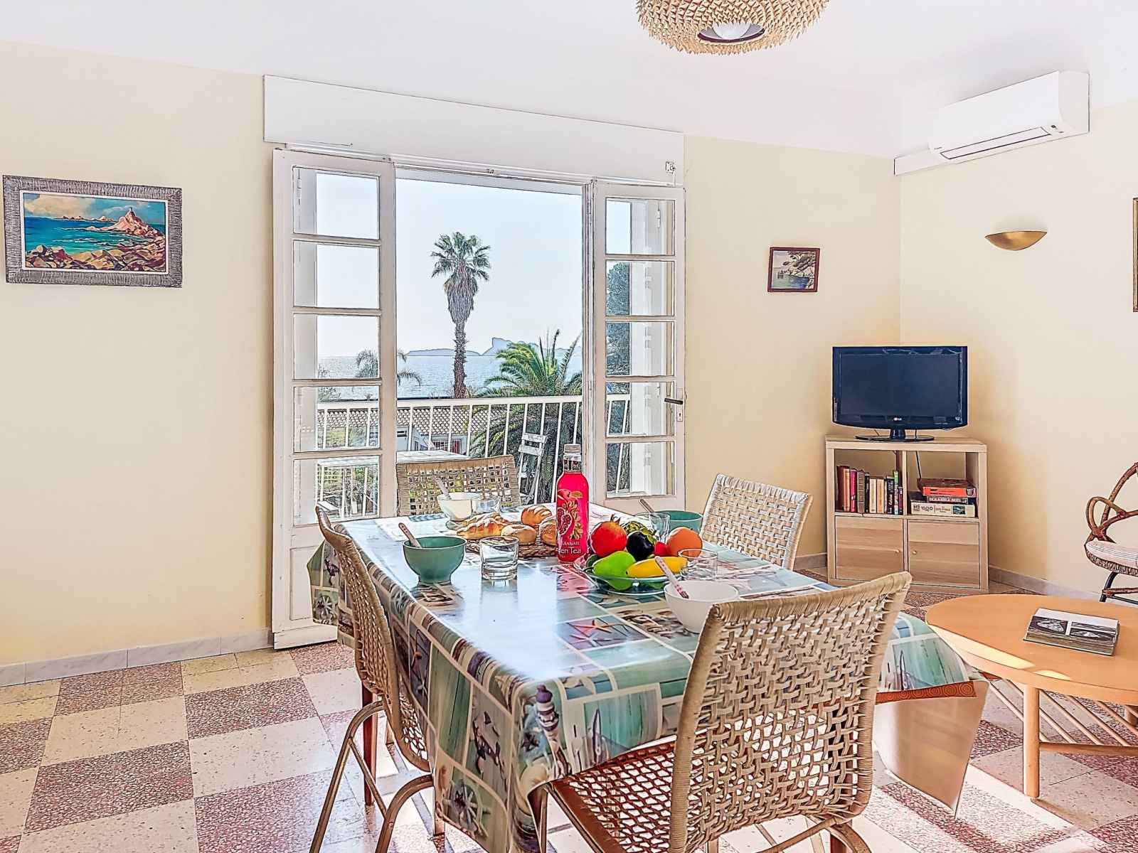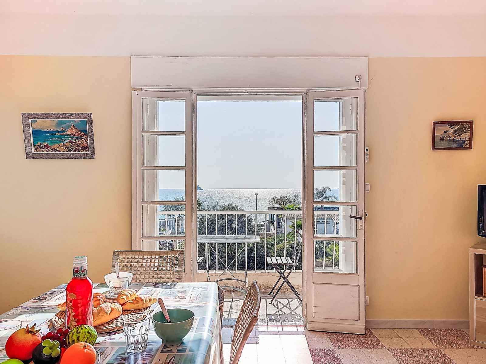 bouilloire électrique, micro-ondes, congélateur, cafetière électrique, Capsules pour machine à café (Senseo + filtre)). Sortie sur la terrasse. Salle de bains, WC séparé. Chauffage électrique. Petit balcon 5 m2, situation nord-est, terrasse 10 m2, situation sud-ouest. Meubles de terrasse, barbecue électrique. Superbe vue panoramique sur la mer. A disposition: lave-linge. Internet (Connexion WIFI, en sus). Place de parking près de la maison. Veuillez noter: maximum 1 animal/ chien de petite taille autorisé. TV seulement FR. Détecteur de fumée. 83112000238JX