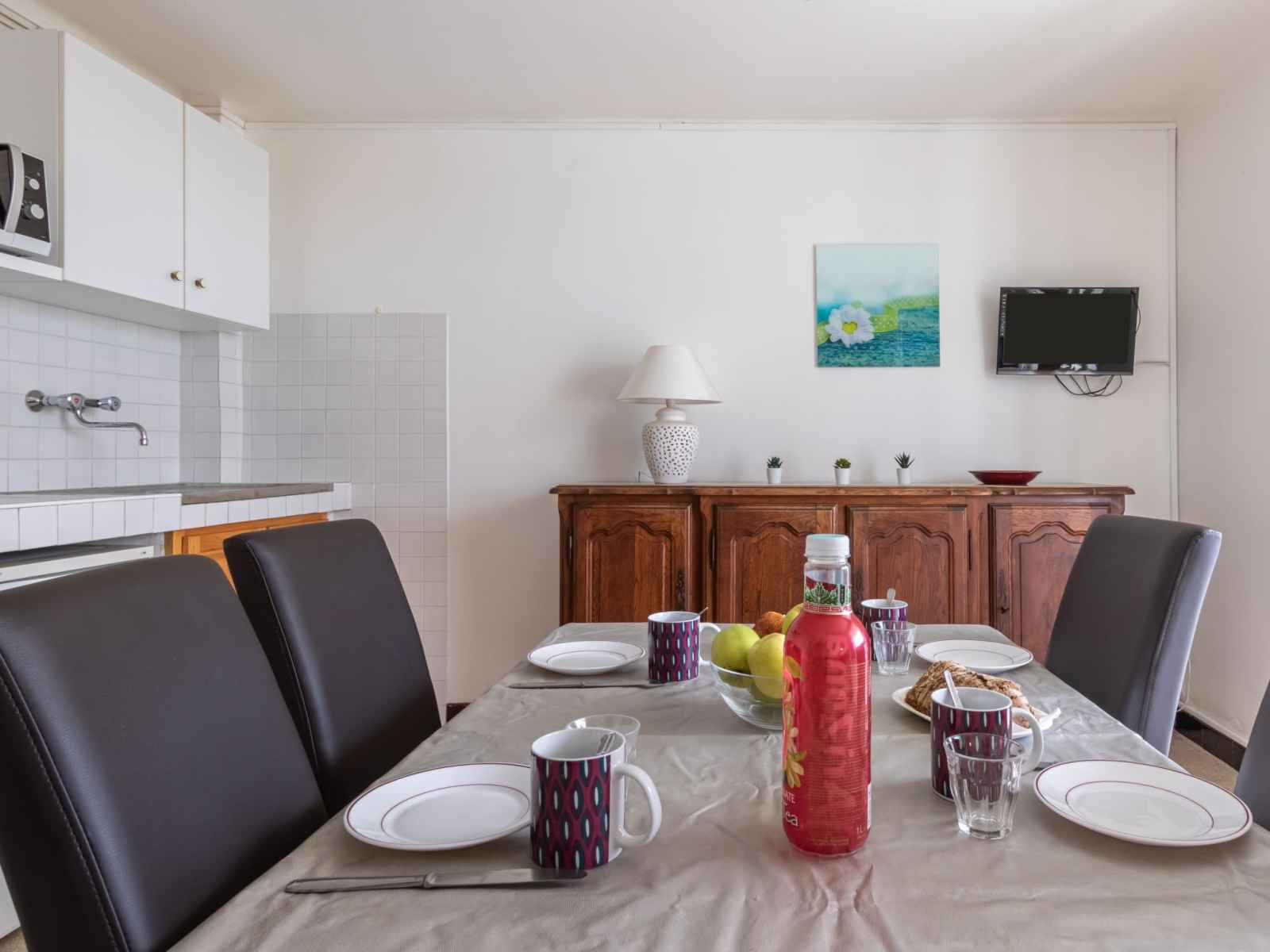 Apt 3 pièces 52 m2 au 1er étage. aménagement simple et fonctionnel: séjour/salle à manger avec tv (écran plat). sortie sur la terrasse. 1 chambre avec 2 lits (80 cm, longueur 190 cm). 1 chambre avec 1 grand-lit (140 cm, longueur 190 cm). coin cuisine (2 plaques de cuisson, grille-pain, bouilloire électrique, micro-ondes, cafetière