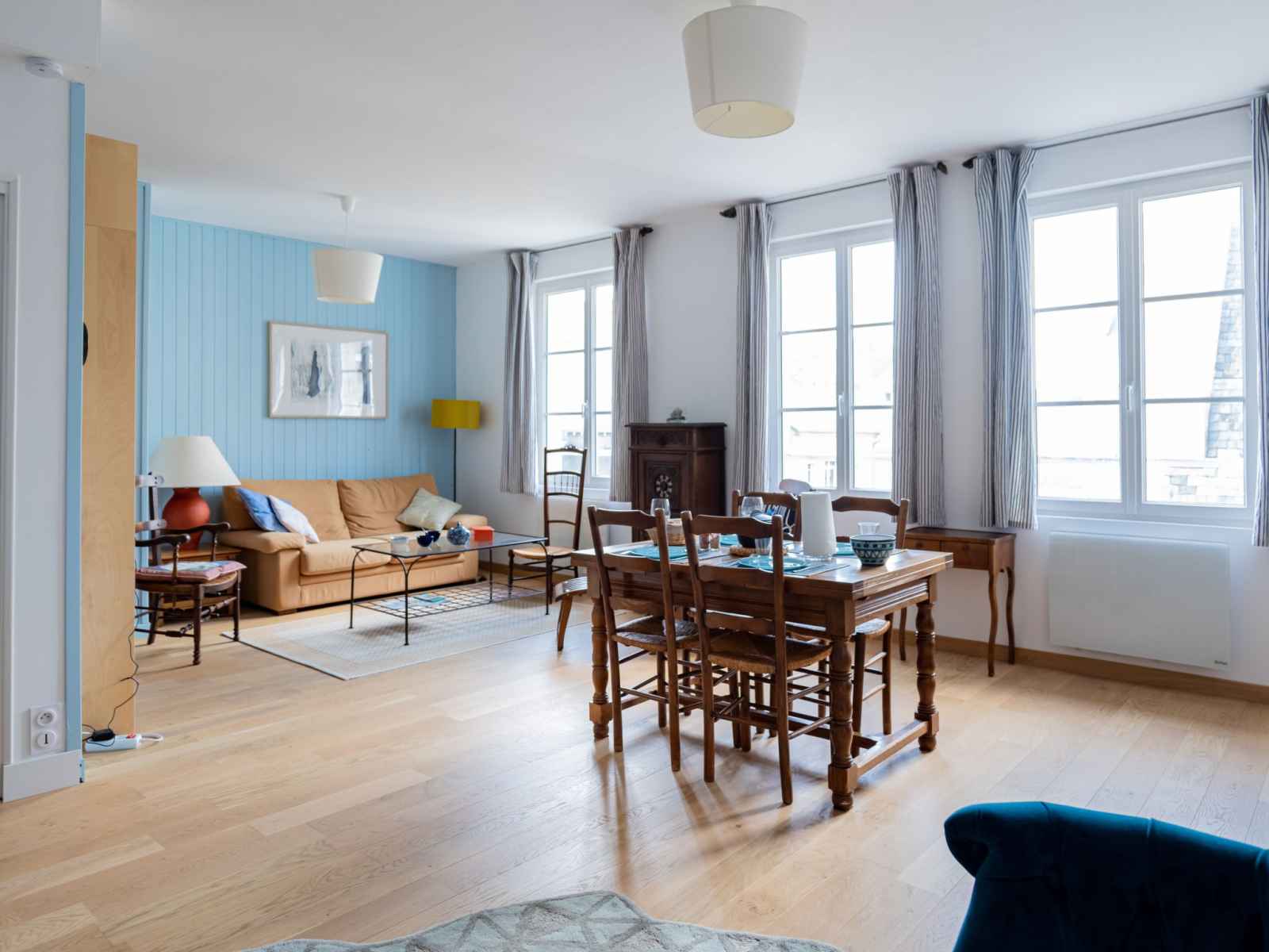 "le six", apt 3 pièces 65 m2 au 3ème étage. spacieux et clair, aménagement confortable et de bon goût: grand séjour/salle à manger avec tv (écran plat), dvd. 1 grande chambre avec 2 lits (90 cm, longueur 190 cm). 1 chambre avec 1 grand-lit (1 x 140 cm, longueur 190 cm). cuisine ouverte (3 plaques à induction, grille-pain, bouilloire