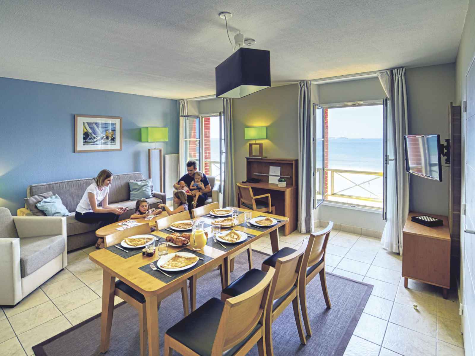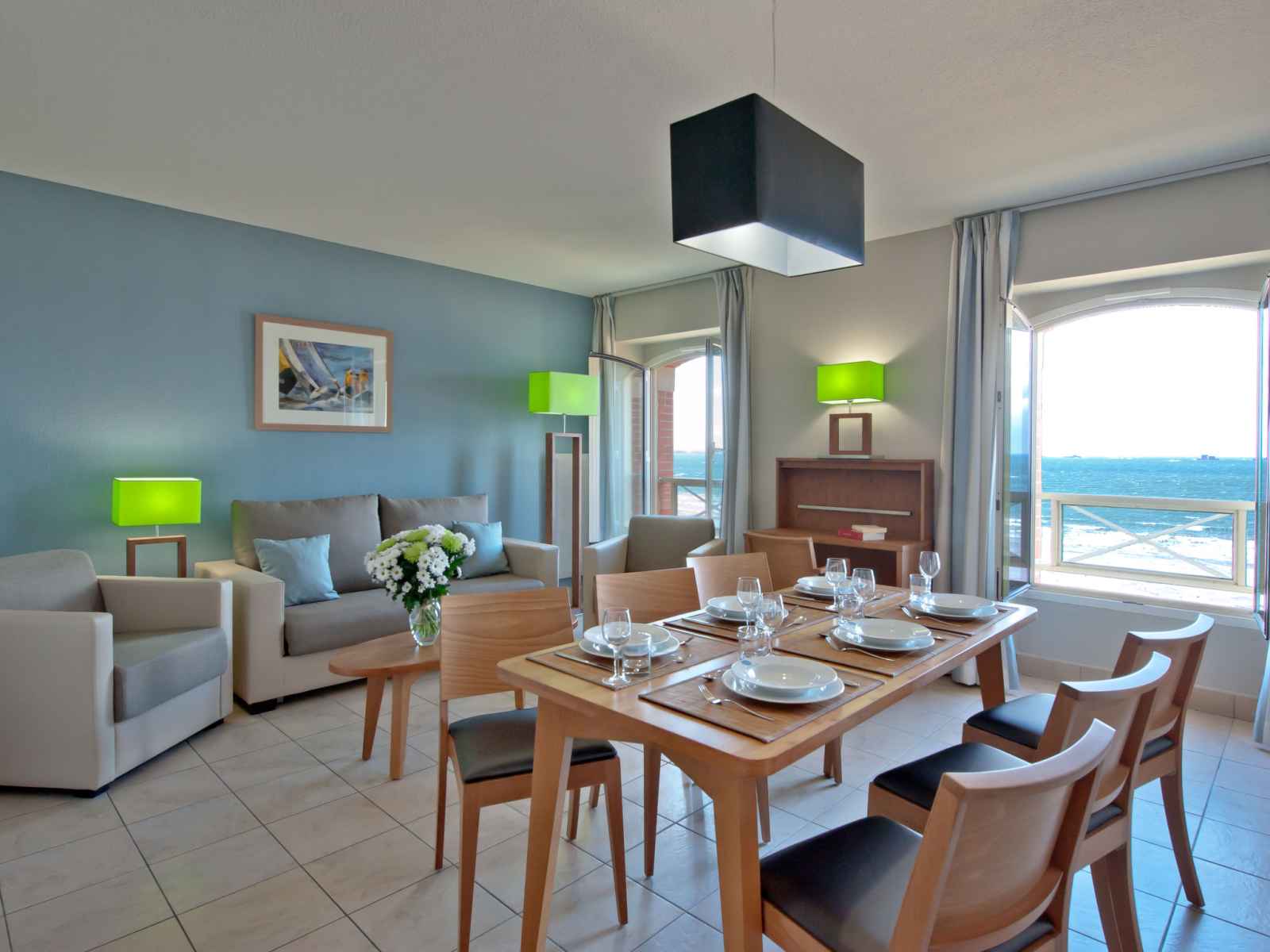 "reine marine -t3 face mer", apt 3 pièces 54 m2. aménagement confortable et agréable: séjour/chambre à coucher avec 1 divan-lit double (140 cm, longueur 200 cm), table pour les repas et tv (satellite). 2 chambres, chaque chambre avec: 2 lits (90 cm, longueur 200 cm). coin cuisine (four, lave-vaisselle, 4 plaques vitrocéramiques, grille-pain,