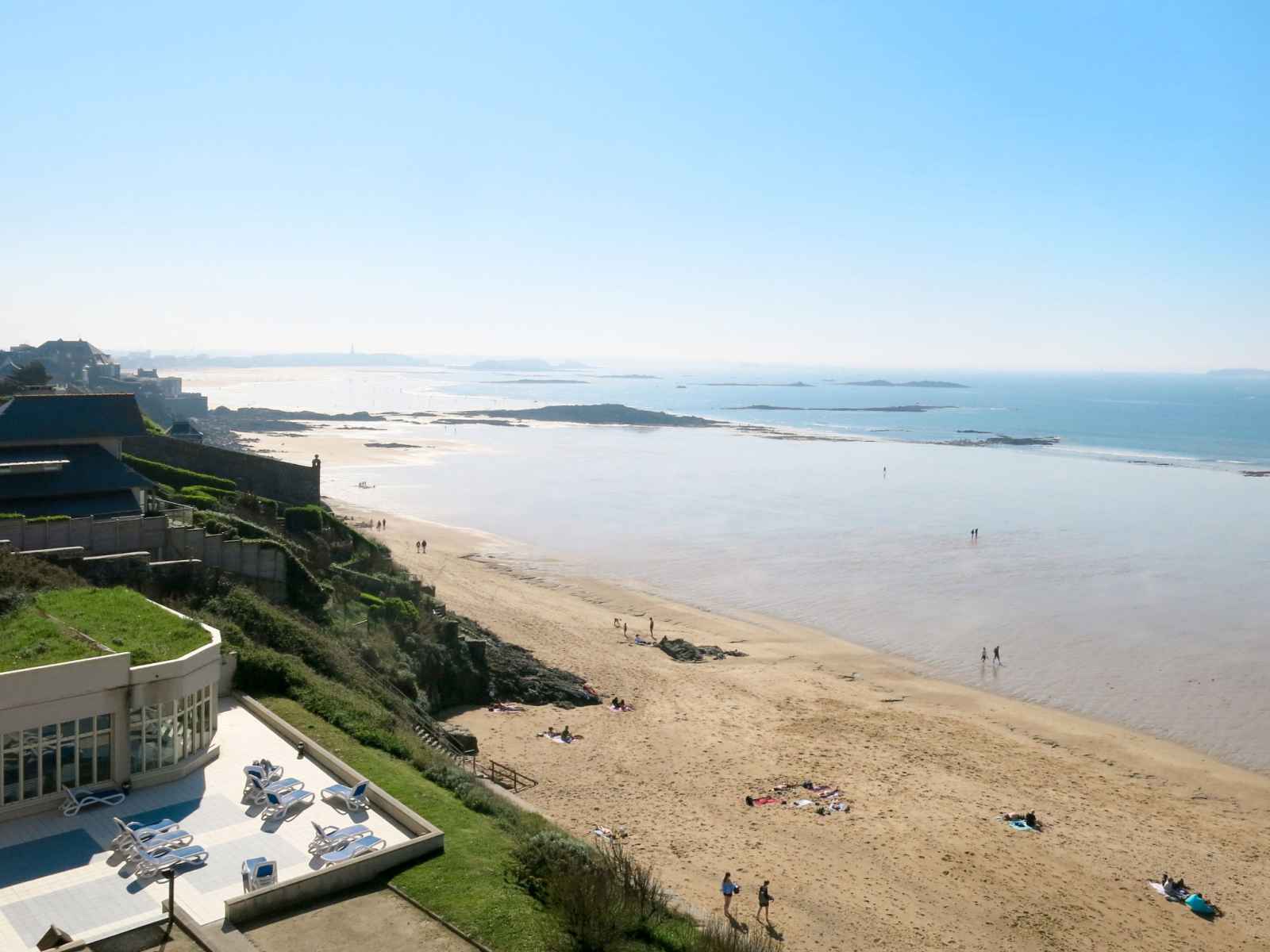 Belle résidence hôtelière "reine marine", de 4 étages. 67 appartements dans la résidence. À 3 km du centre de saint malo, à 30 m de la mer, accès direct à la plage. en commun: piscine couverte chauffée (13 x 8 m, disponibilité saisonnière: 01.jan. - 31.dec.). terrasse. infrastructures de la résidence: réception, bar, bains de vapeur