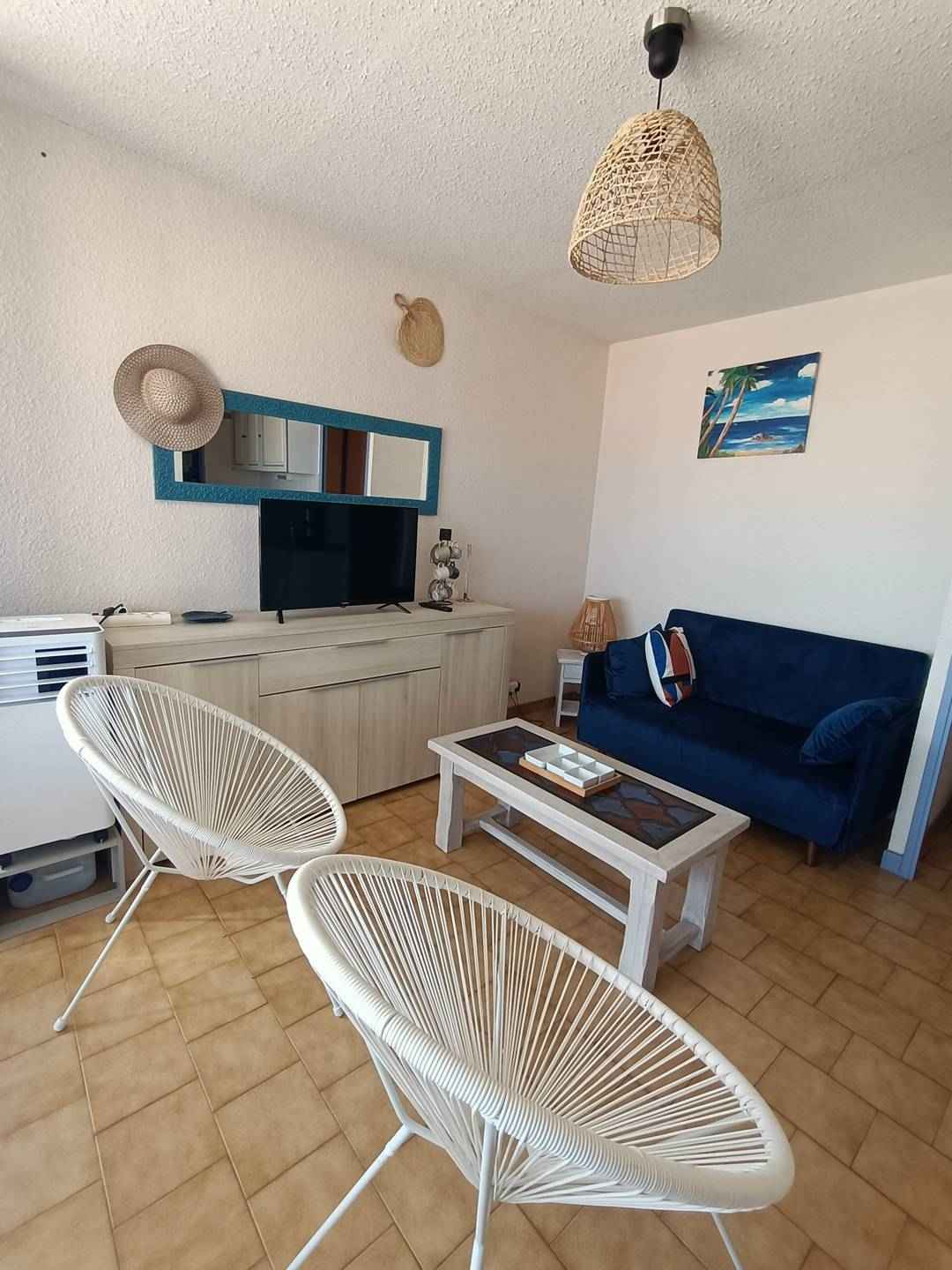 • Equipements : 2 lits double, Adapté aux familles, Cafetière à filtre, Canapé, Chauffage, Chauffage éléctrique, Climatiseur à roulette, Cuisine équipée, Détecteur de fumée, Entrée privative, Four électrique, Hotte aspirante, Lave-linge, Lit double, lit mezzanine en 90, Loggia avec vue sur la mer, Micro ondes, Parking privé, Piscine Collective, Plaque induction, Produits de base, Réfrigérateur Congélateur, Salle d'eau, Table à manger, Télévision, Terrain de Pétanque, Ustensiles de cuisine, Vaisselle et couverts, Vue mer, Wc séparé, Wifi en supplément