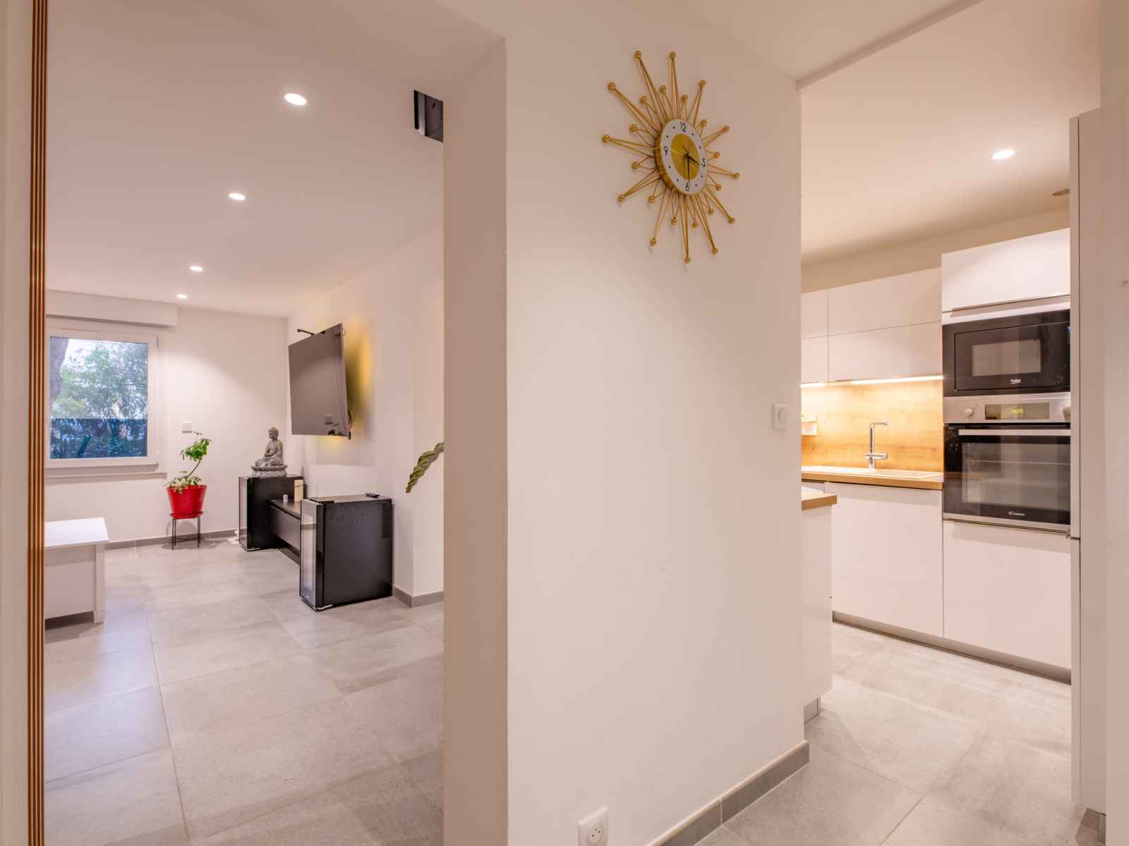 Apt 3 pièces 65 m2, au rez-de-chaussée, situation sud. complètement rénové, aménagement agréable: séjour/salle à manger avec tv (écran plat). 1 chambre avec 1 grand-lit (1 x 140 cm, longueur 200 cm). 1 chambre avec 2 lits (90 cm, longueur 200 cm), tv (écran plat). cuisine (four, lave-vaisselle, 3 plaques à induction, grille-pain,