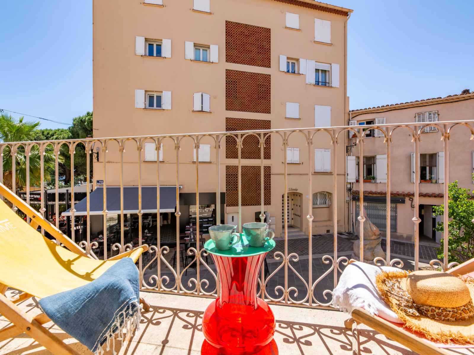 Petit immeuble "les palmiers", de 2 étages. 2 appartements dans la résidence. au centre de sainte-maxime, situation animée, au cœur de la ville, à 150 m de la mer, à 150 m de la plage. parking public. magasins 30 m, magasin d'alimentation 200 m, restaurant, boulangerie 20 m, arrêt de bus "la tour carree" 100 m, plage de sable "plage du