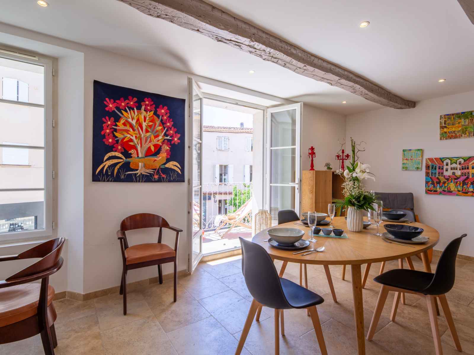 Apt 3 pièces 60 m2 au 1er étage, situation sud. spacieux et clair, aménagement agréable: séjour/salle à manger avec tv (écran plat). sortie sur le balcon. 1 chambre avec 1 grand-lit (140 cm, longueur 200 cm). 1 chambre avec 2 lits (80 cm, longueur 190 cm). cuisine ouverte (four, lave-vaisselle, 4 plaques à induction, grille-pain,