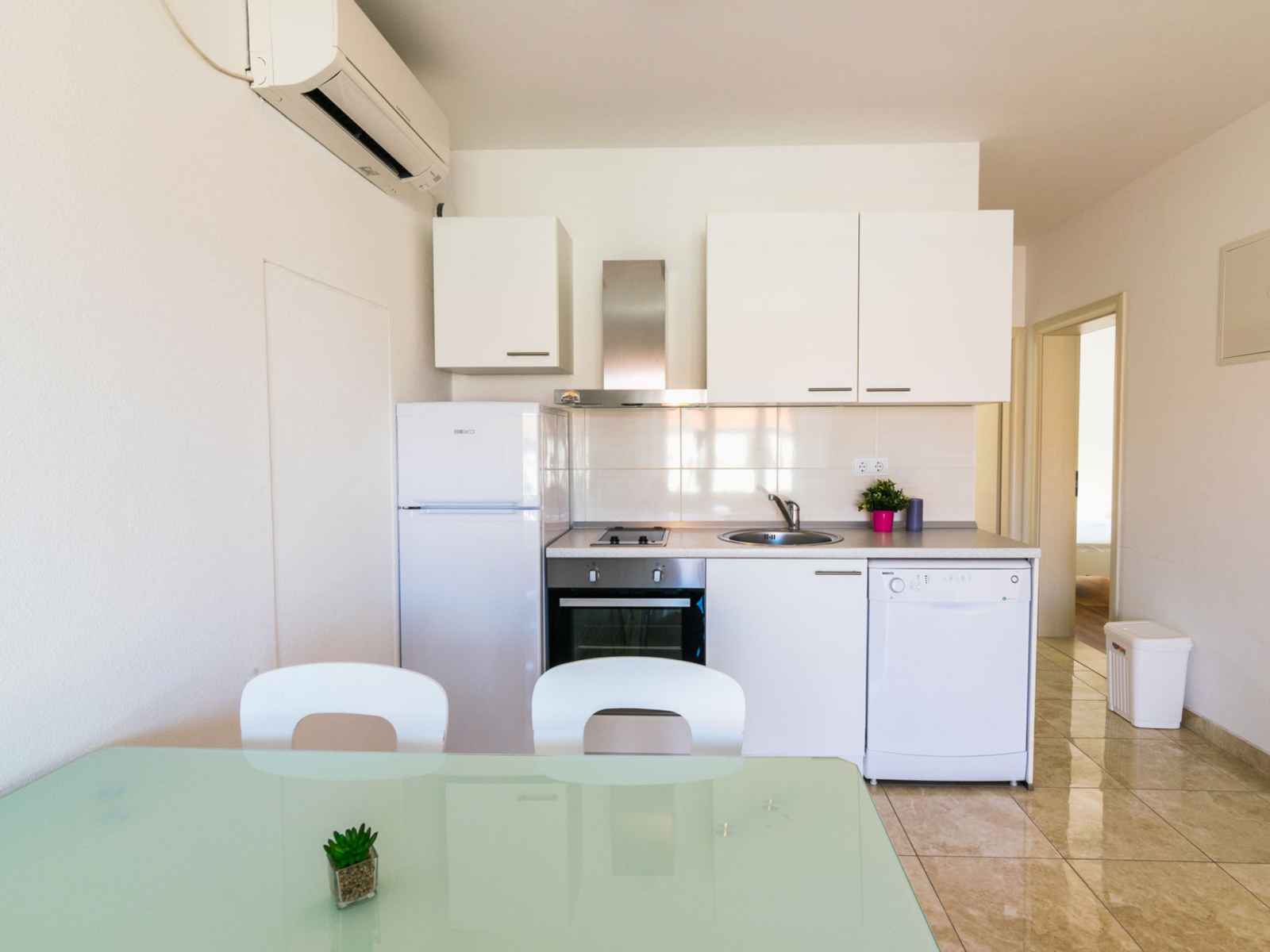 Apt 3 pièces 45 m2 au 1er étage, situation nord. séjour/salle à manger avec 1 divan-lit (130 cm, longueur 190 cm), tv (satellite) et air-conditionné. sortie sur le balcon. 1 chambre avec 1 lit double (2 x 80 cm, longueur 200 cm), douche/wc. 1 chambre avec 1 lit double (2 x 80 cm, longueur 200 cm). cuisine ouverte (four, lave-vaisselle, 2